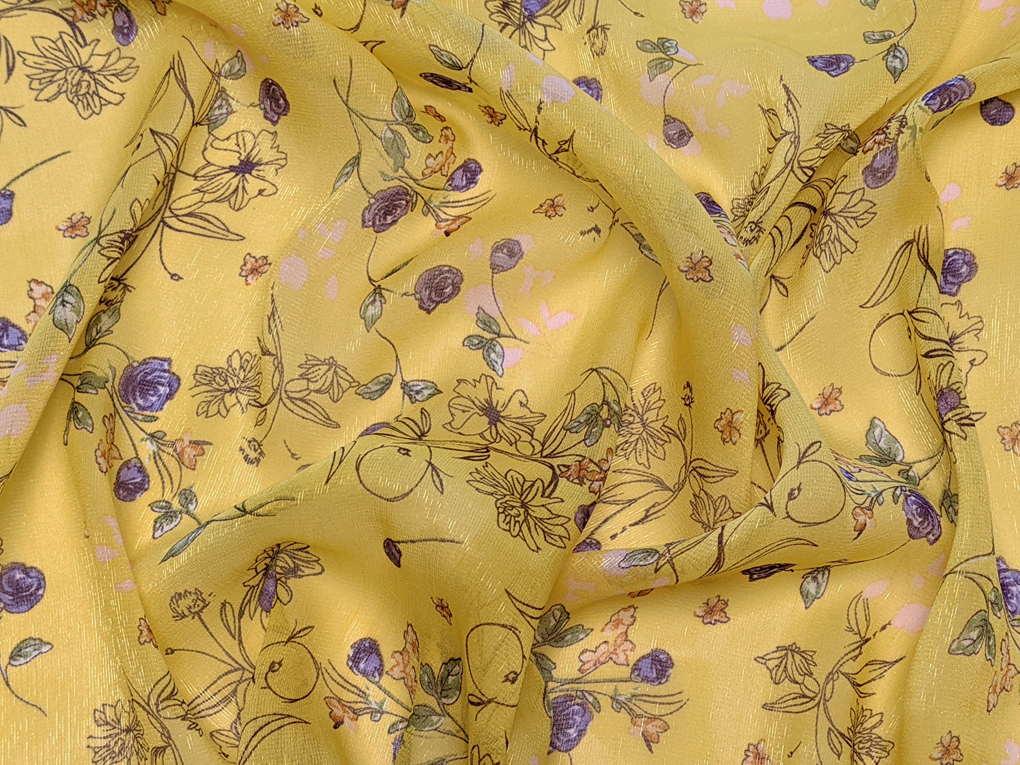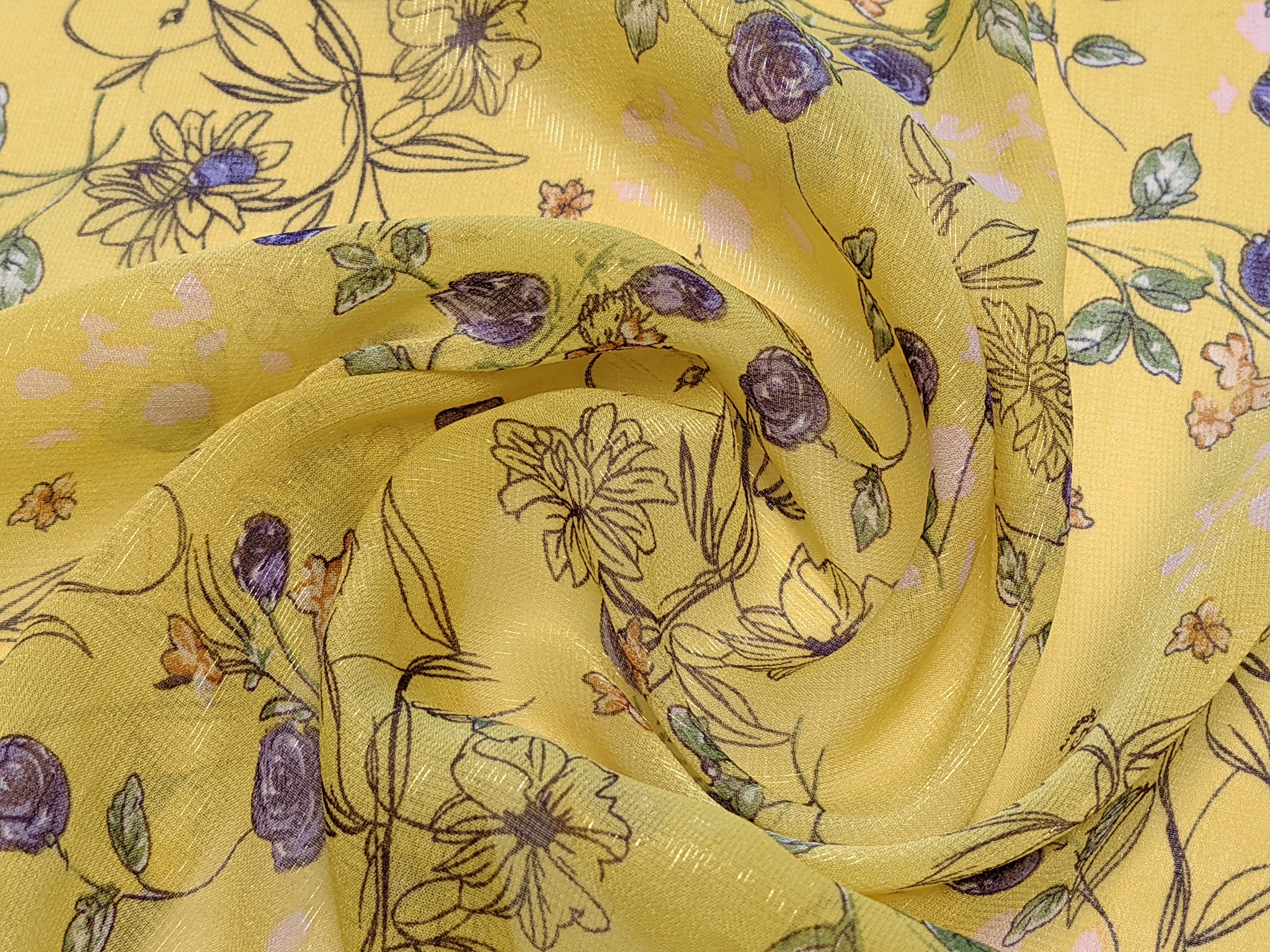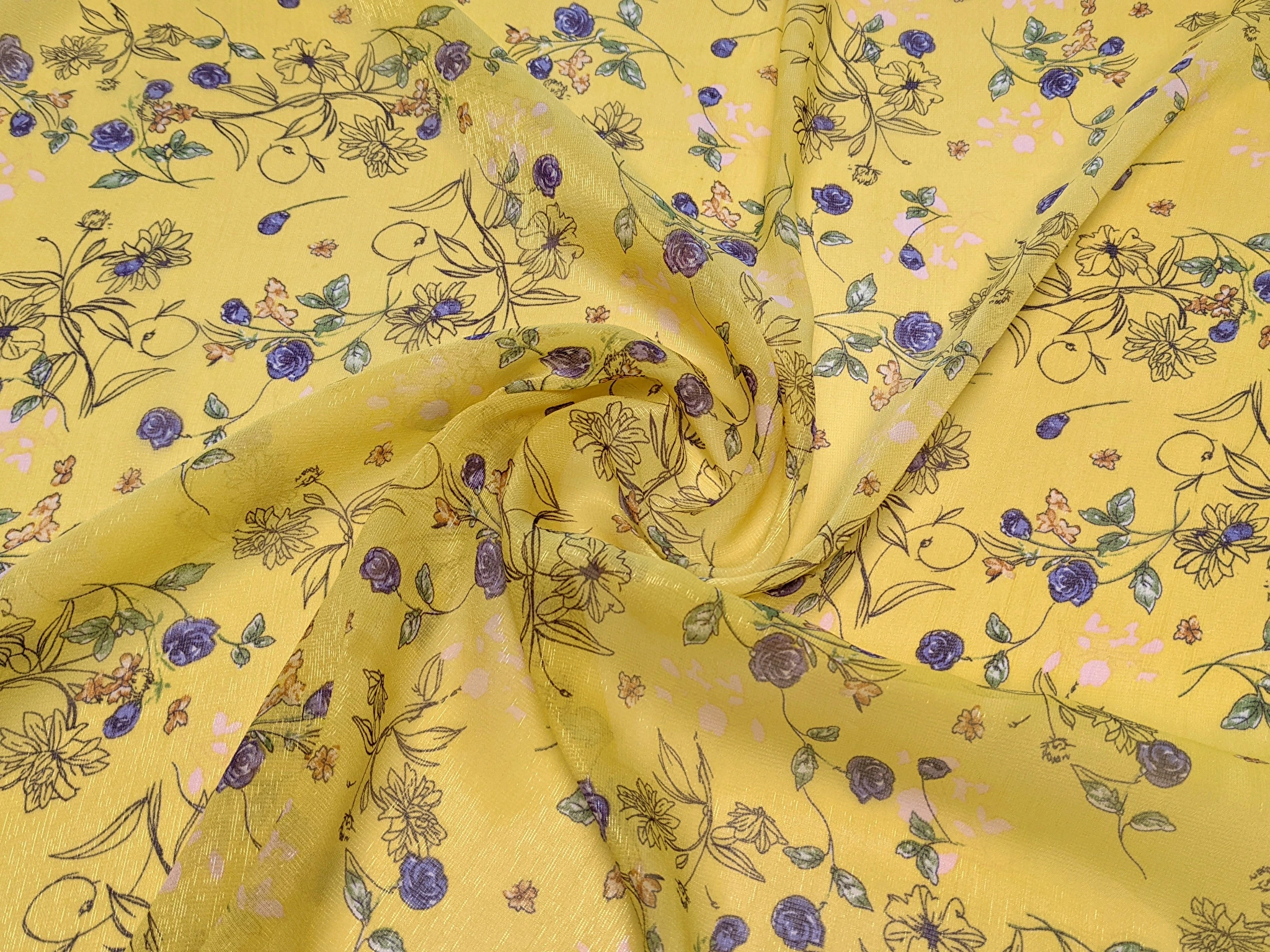 Легке шифонове полотно з блиском - це тканина, ідеальне втілення який ви знайдете при пошитті блузи або сукні. Ніжні квіткові принти додадуть вашому образу легкості, ніжності і романтичності.