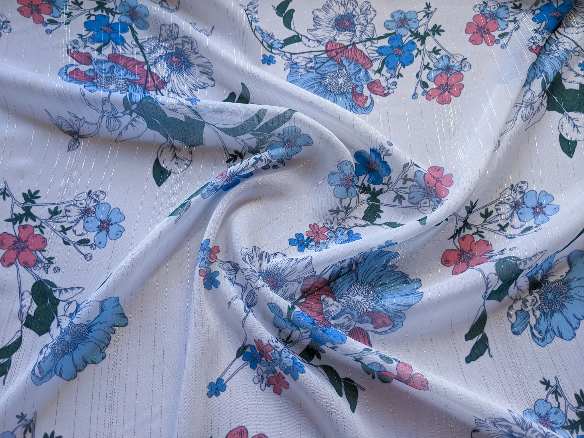 Шифон жакард з люрексовою ниткою травневий букет, блакитний на білому