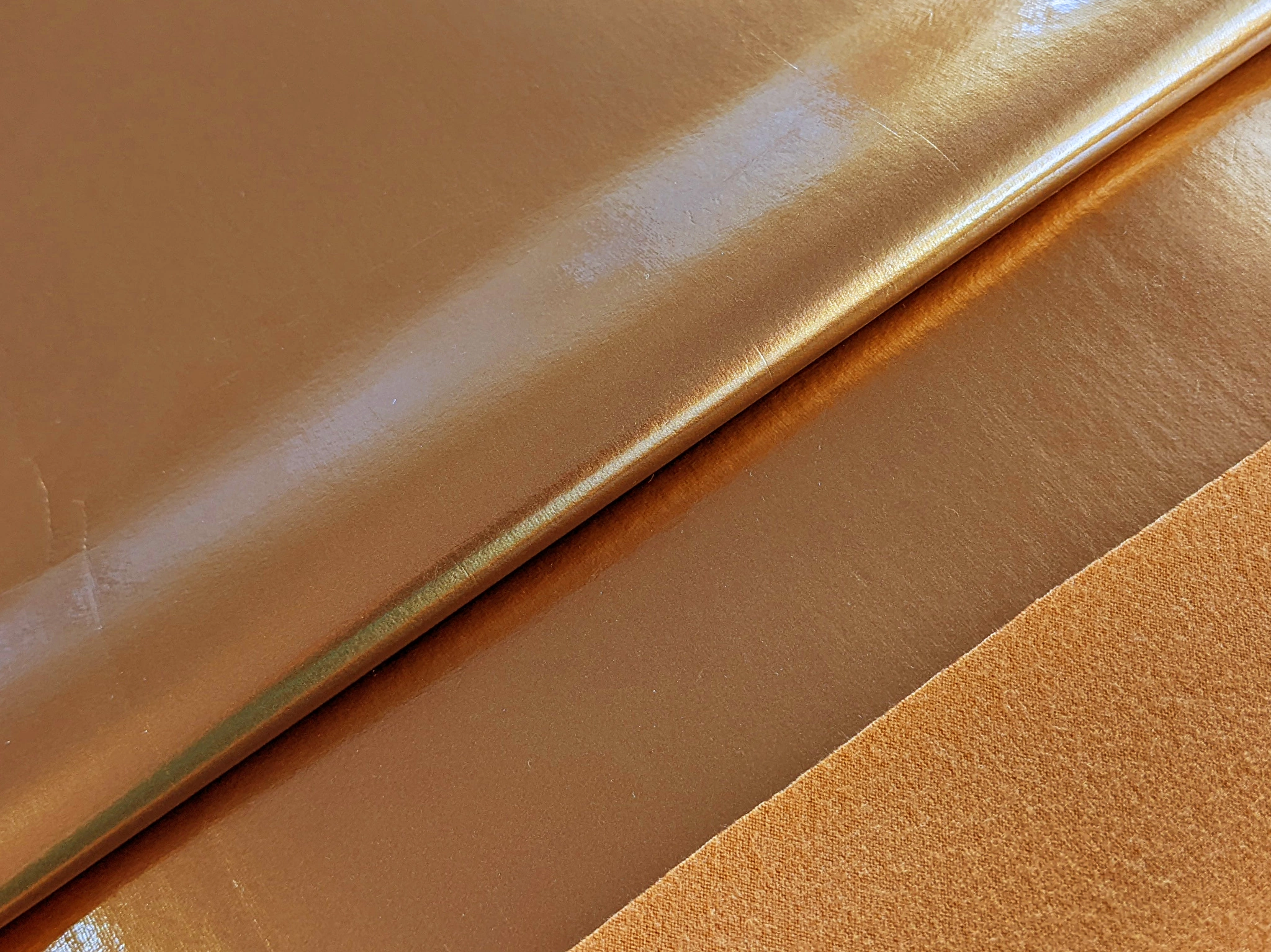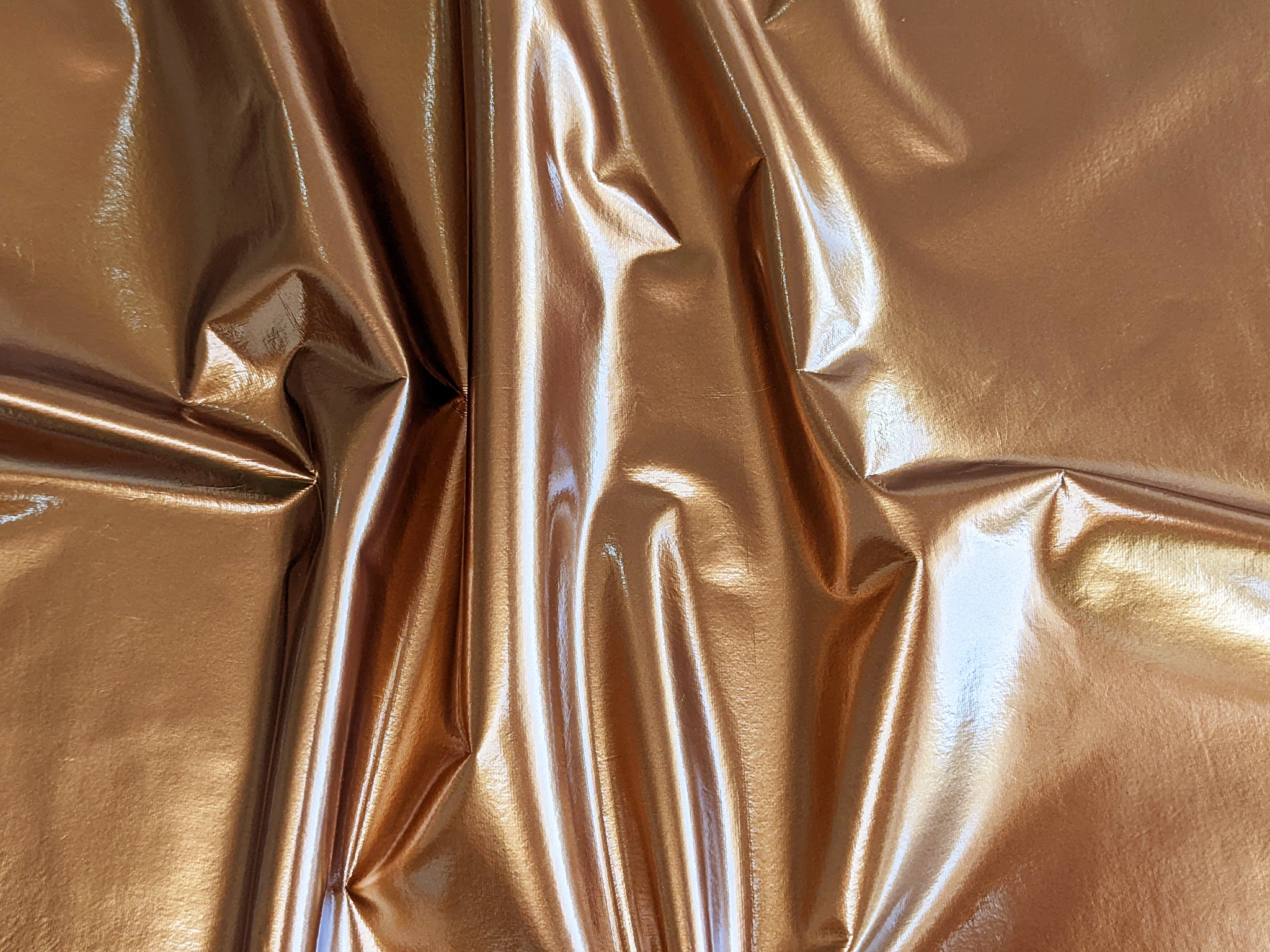 Шкіра латекс - це щільна штучна лакована шкіра, яка дуже приємна на дотик. Лицьова поверхня полотна гладка з яскравим лаковим блиском, що не шурудить, а виворіт з невеликим начосом. Тканина тягнеться в обидві сторони, після розтягування приймає колишній вигляд, без ризику появи тріщин і деформації. Полотно трохи зминається, не примхлива у догляді, має високу міцність і зносостійкість.