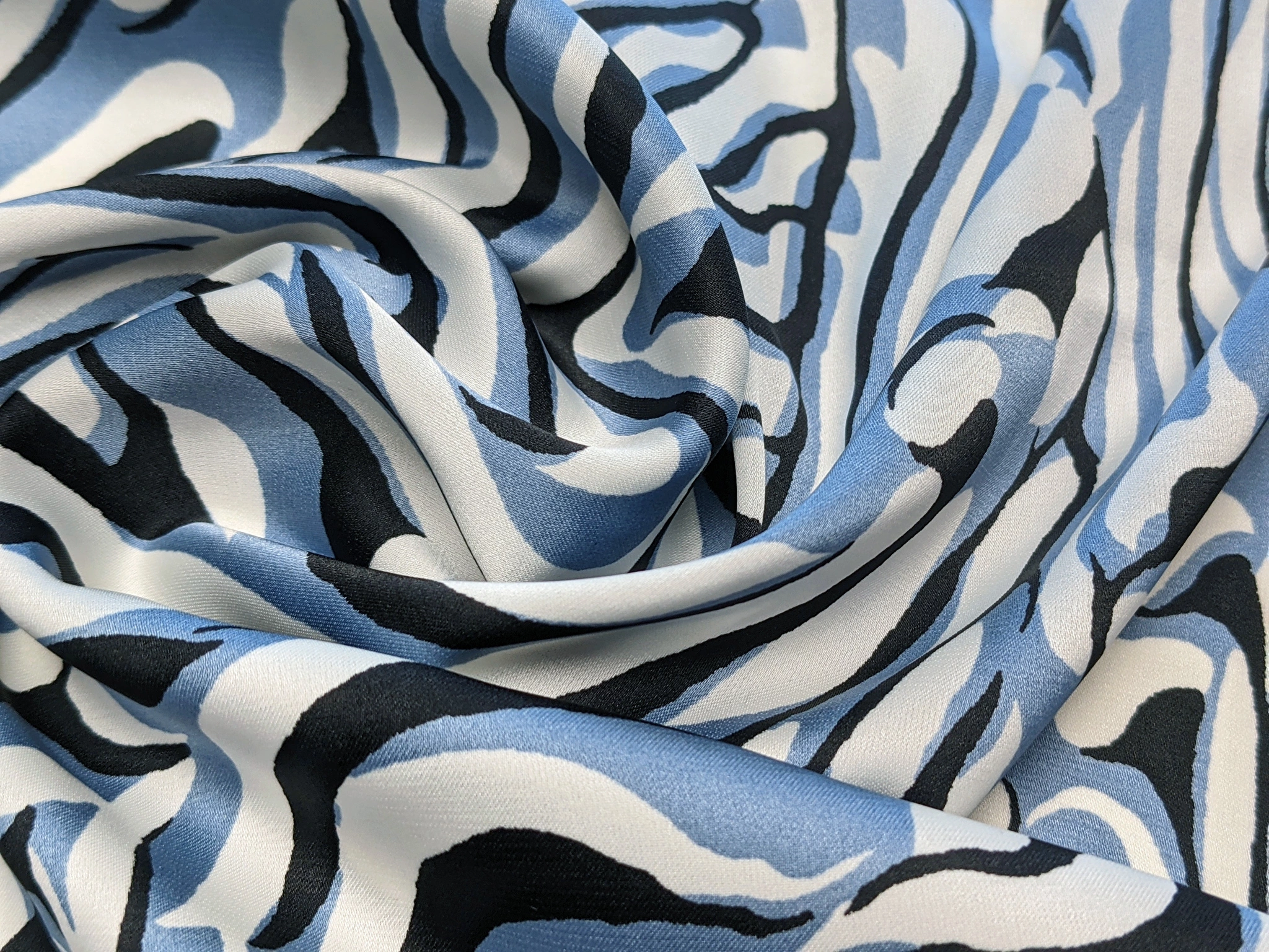 Шовк Армані акварель абстракції, блакитний с чорним