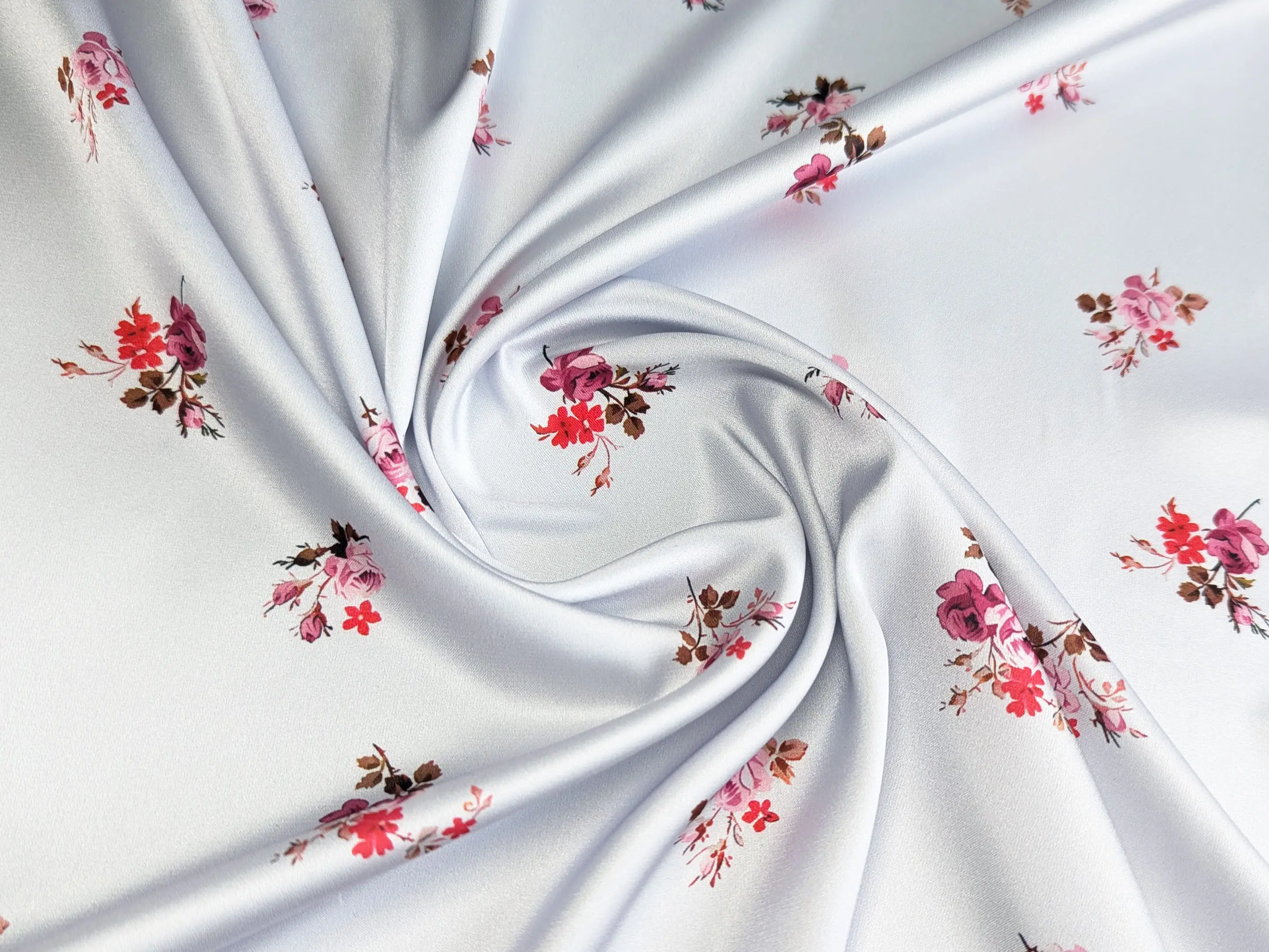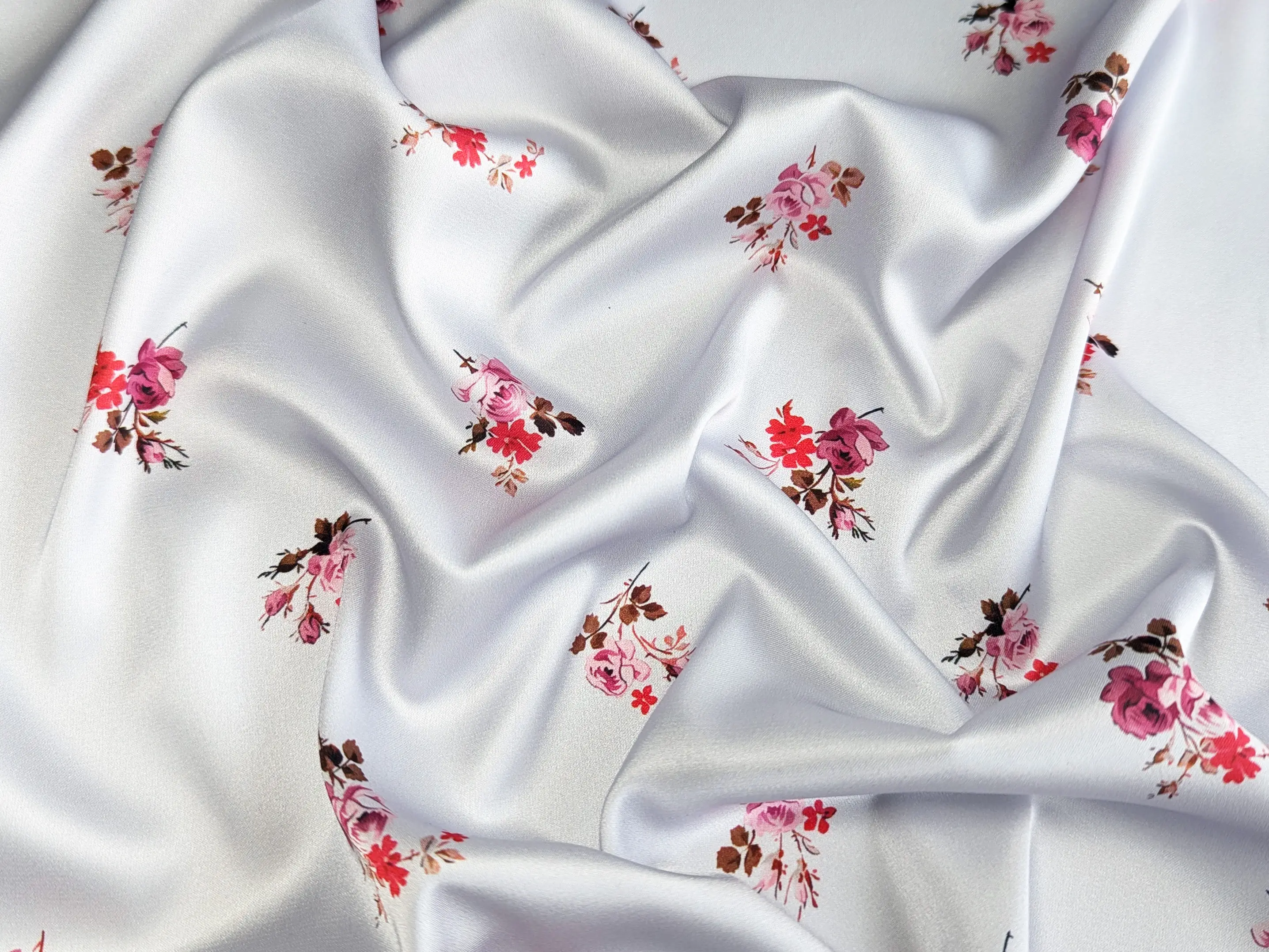 Шовк сати - це легке полотно, гладке як атлас, але значно тонше й приємніше на дотик. Друга назва тканини - шовк Армані. Полотно красиво струмує, легке та летюче, не мнеться. Вимагає делікатного догляду. Застосовується для пошиття блуз, суконь, костюмів та накидок. У виробі тканина виглядає дорого, ошатно і вишукано.