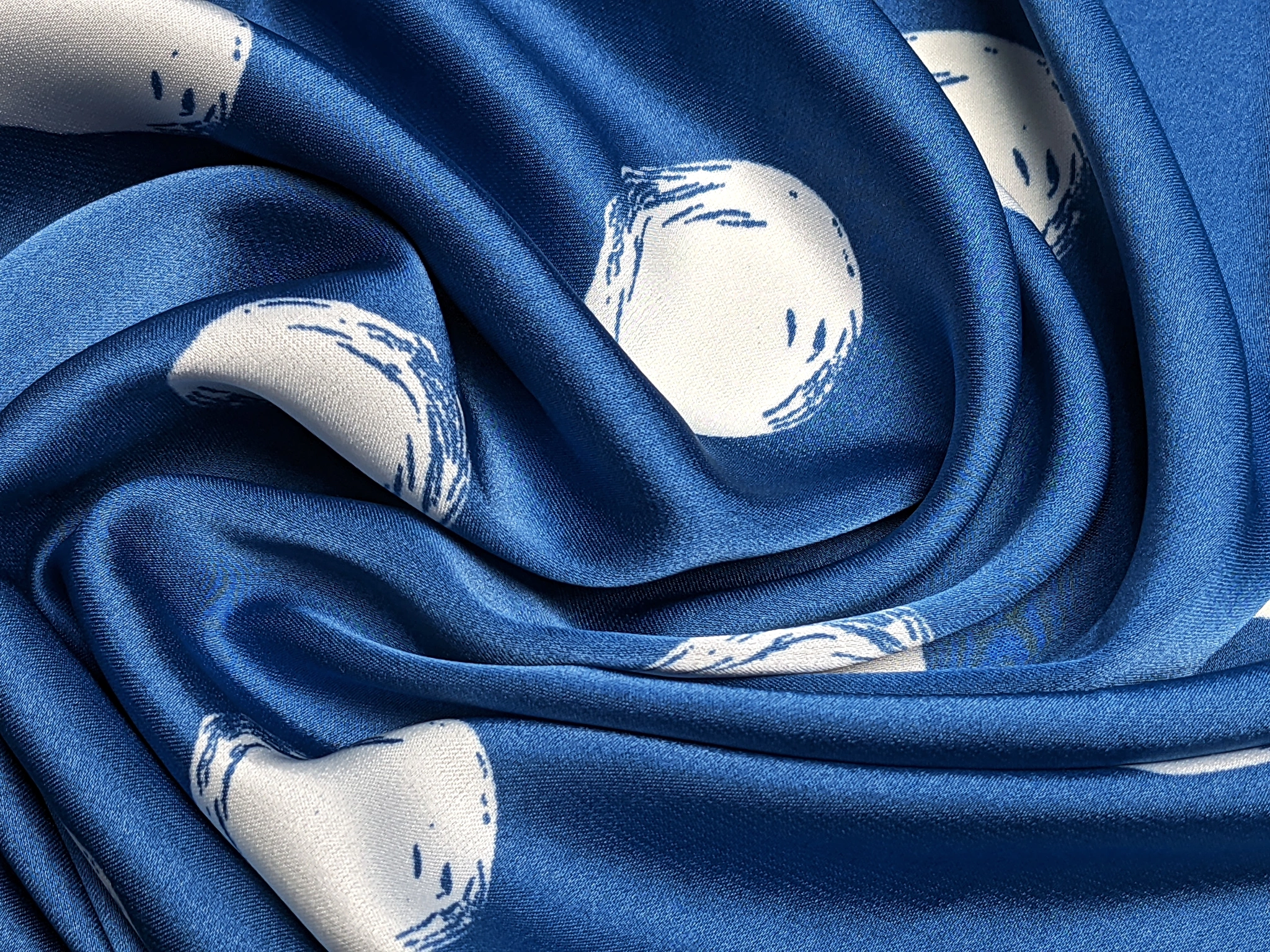 Шовк сати - це легке полотно, гладке як атлас, але значно тонше й приємніше на дотик. Друга назва тканини - шовк Армані. Полотно красиво струмує, легке та летюче, не мнеться. Вимагає делікатного догляду. Застосовується для пошиття блуз, суконь, костюмів та накидок. У виробі тканина виглядає дорого, ошатно і вишукано.