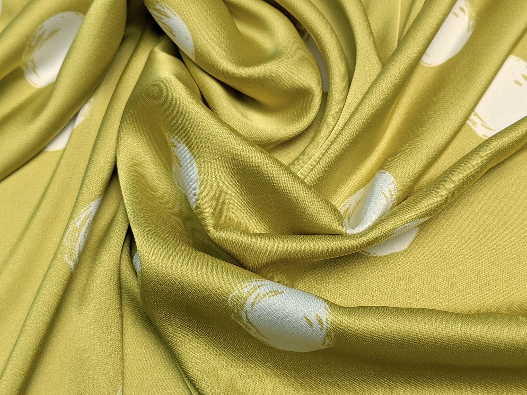 Шовк сати - це легке полотно, гладке як атлас, але значно тонше й приємніше на дотик. Друга назва тканини - шовк Армані. Полотно красиво струмує, легке та летюче, не мнеться. Вимагає делікатного догляду. Застосовується для пошиття блуз, суконь, костюмів та накидок. У виробі тканина виглядає дорого, ошатно і вишукано.