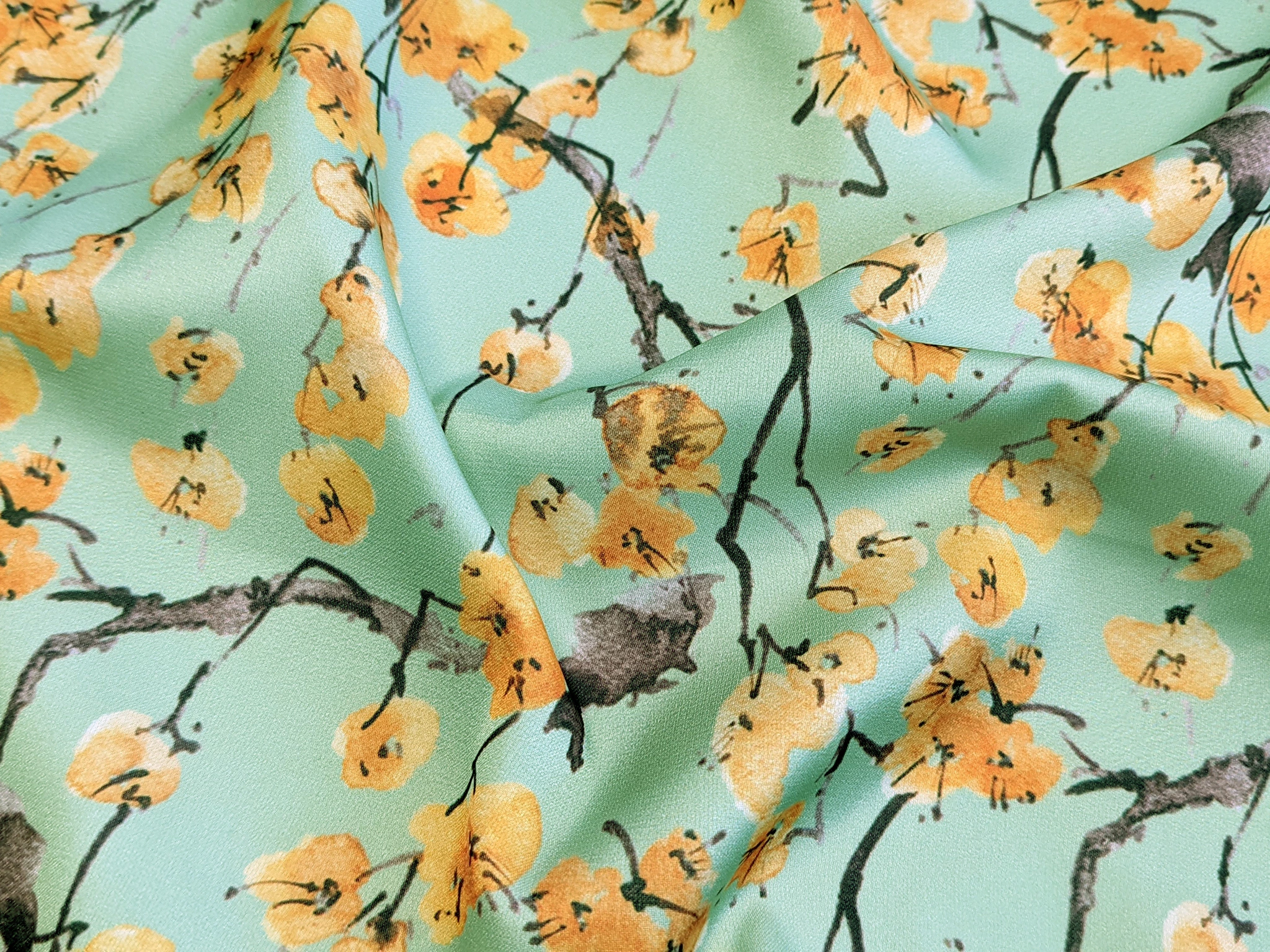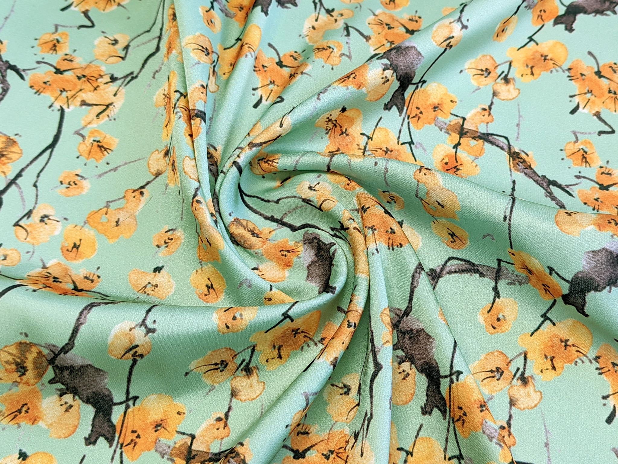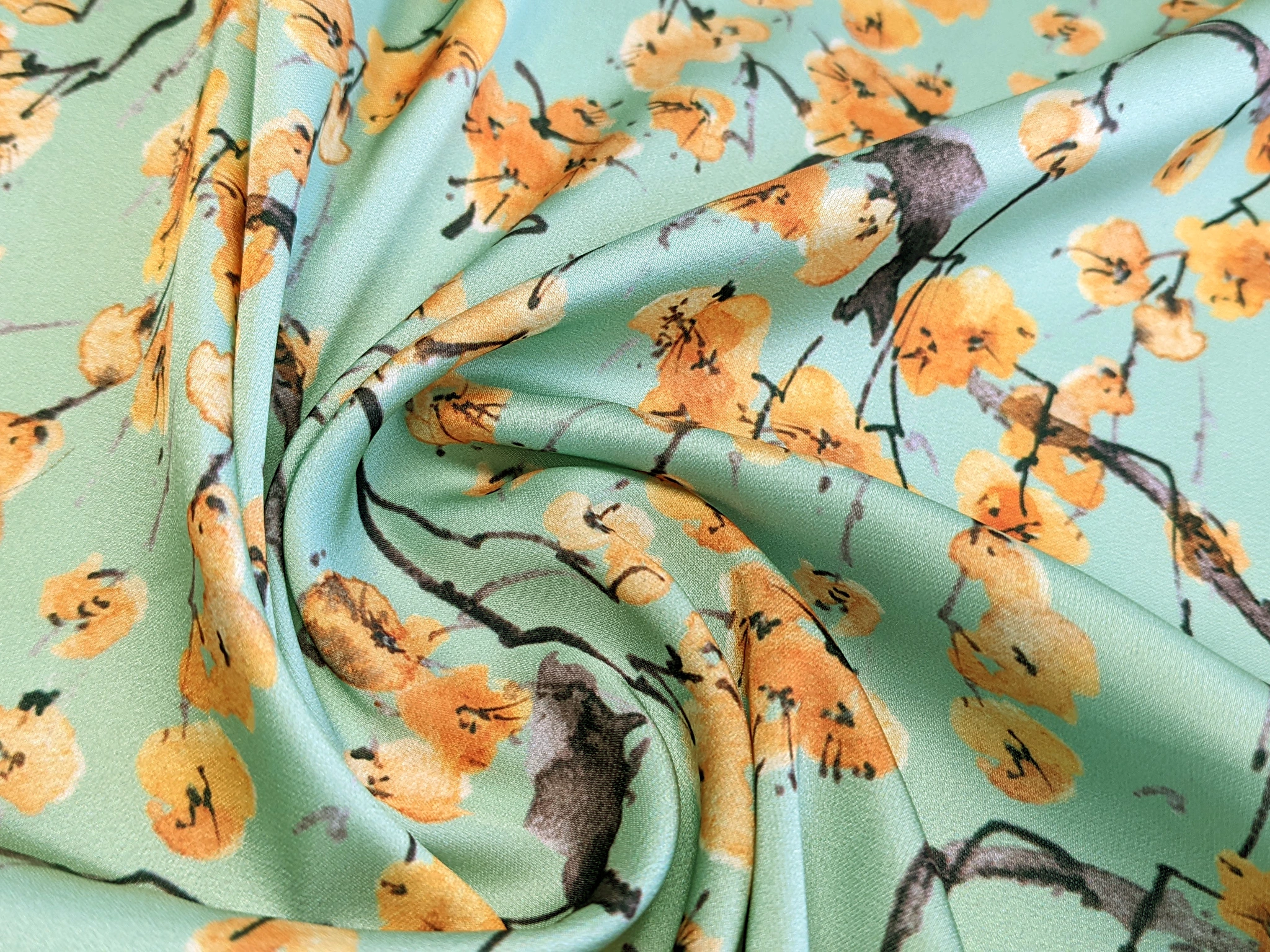Шовк сати - це легке полотно, гладке як атлас, але значно тонше й приємніше на дотик. Друга назва тканини - шовк Армані. Полотно красиво струмує, легке та летюче, не мнеться. Вимагає делікатного догляду. Застосовується для пошиття блуз, суконь, костюмів та накидок. У виробі тканина виглядає дорого, ошатно і вишукано.