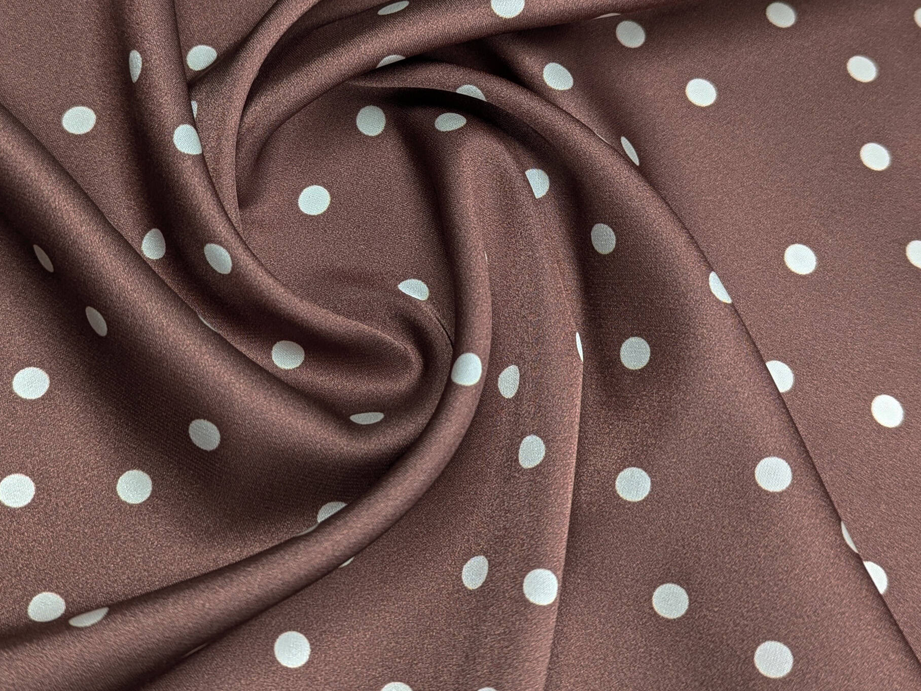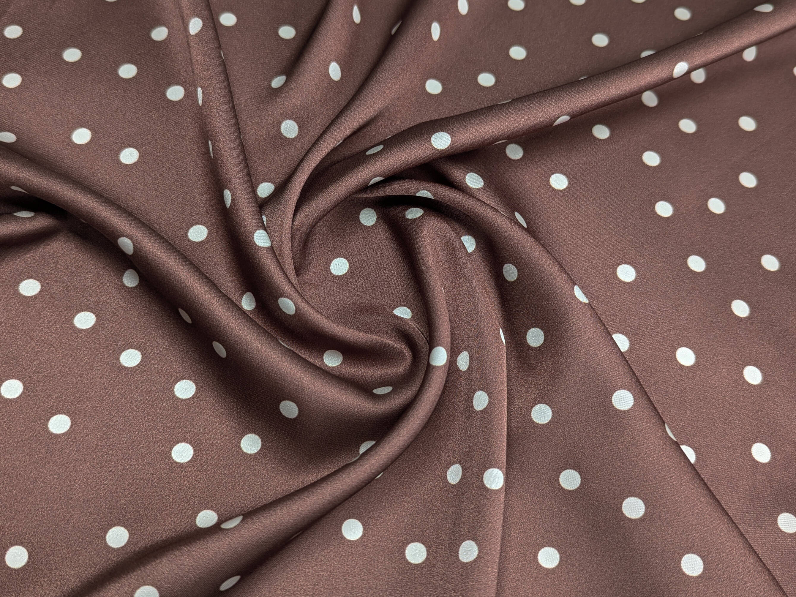 Шовк Армані горошки 4 мм, коричневий з молочним (відріз 1 м) (а35, 2509100C, д2 цв2)