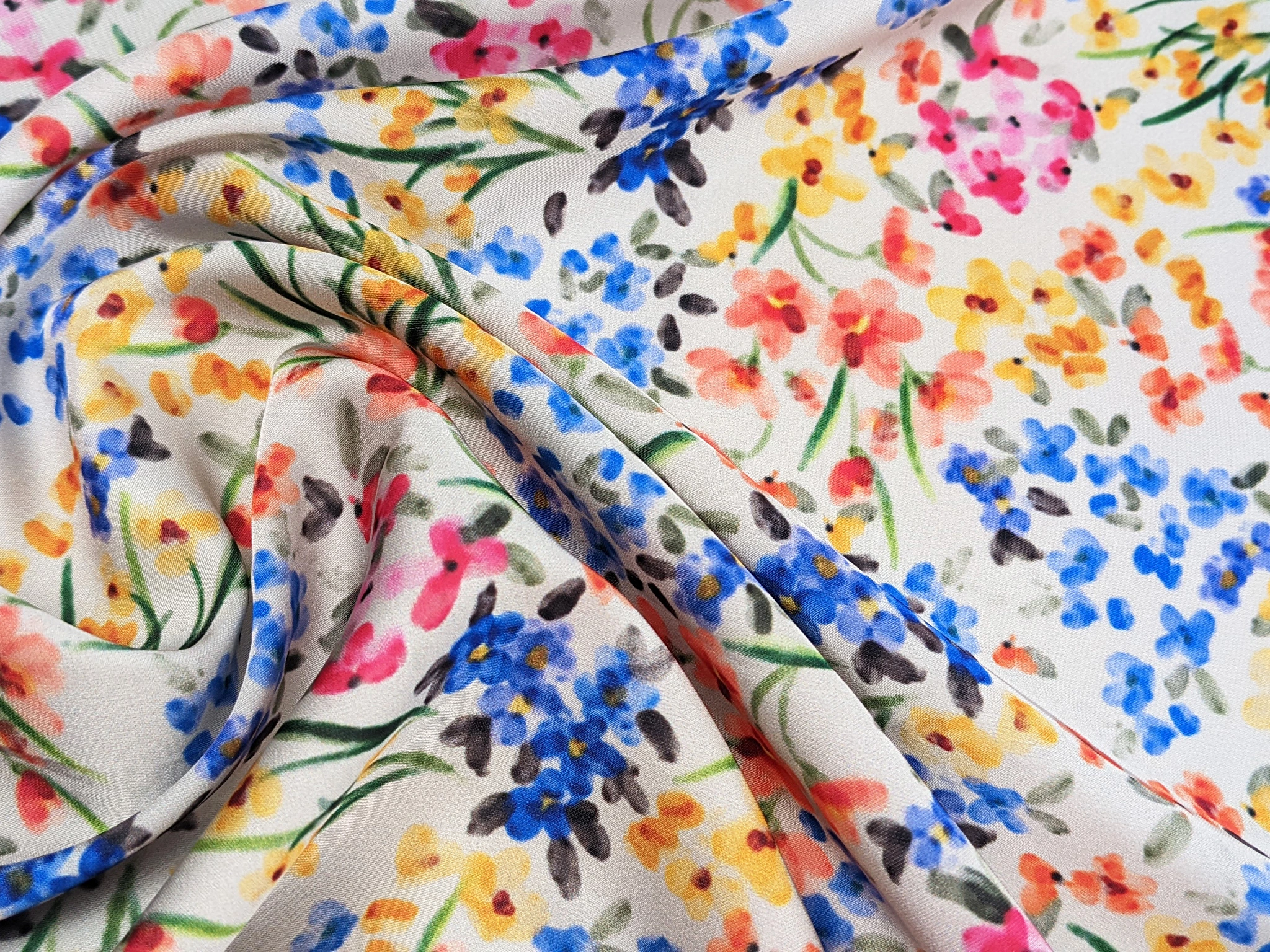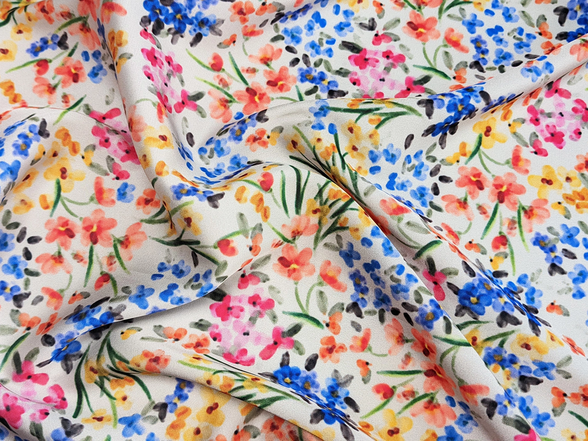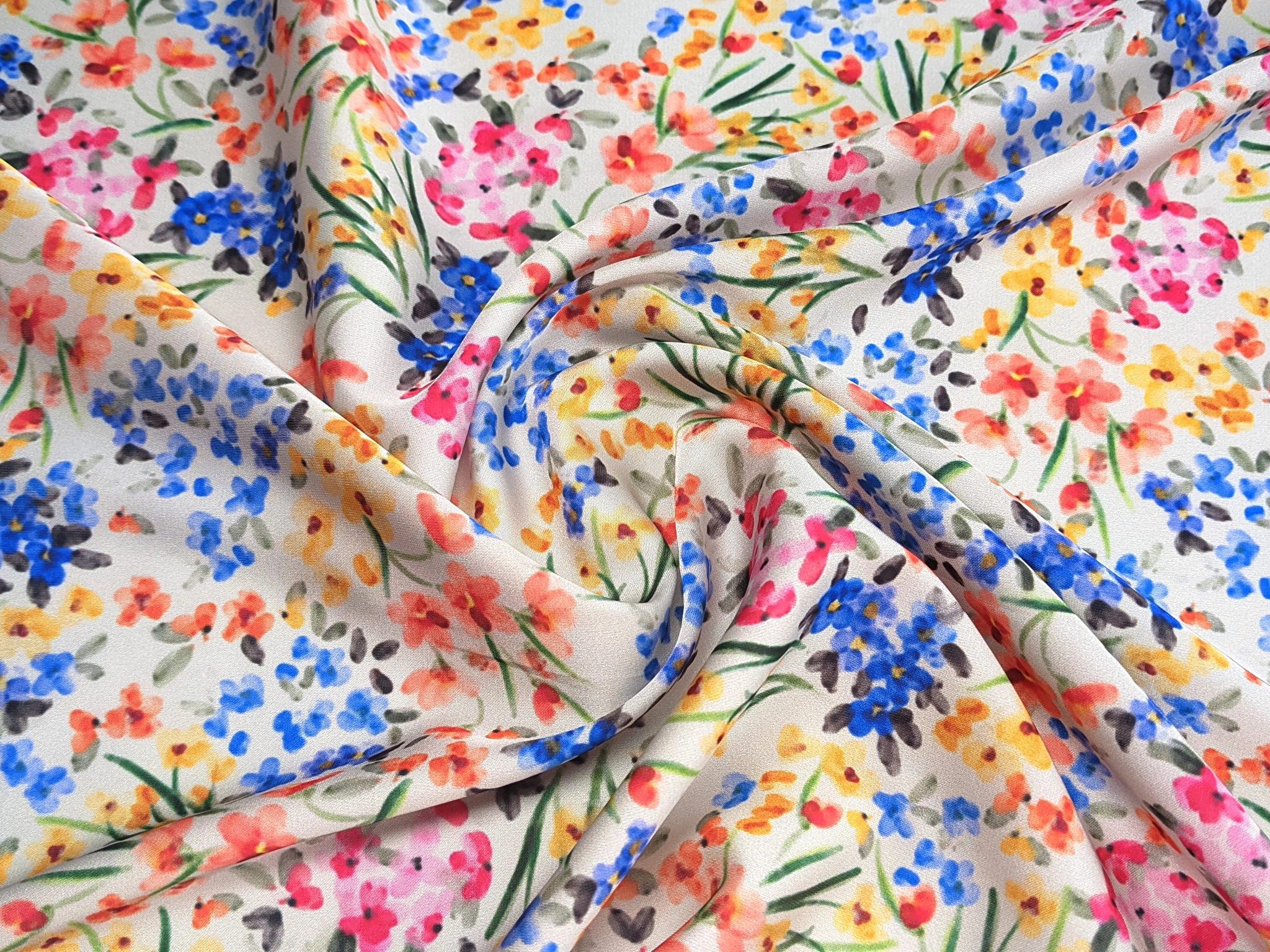 Шовк Армані квіткова акварель, червоно-синій
