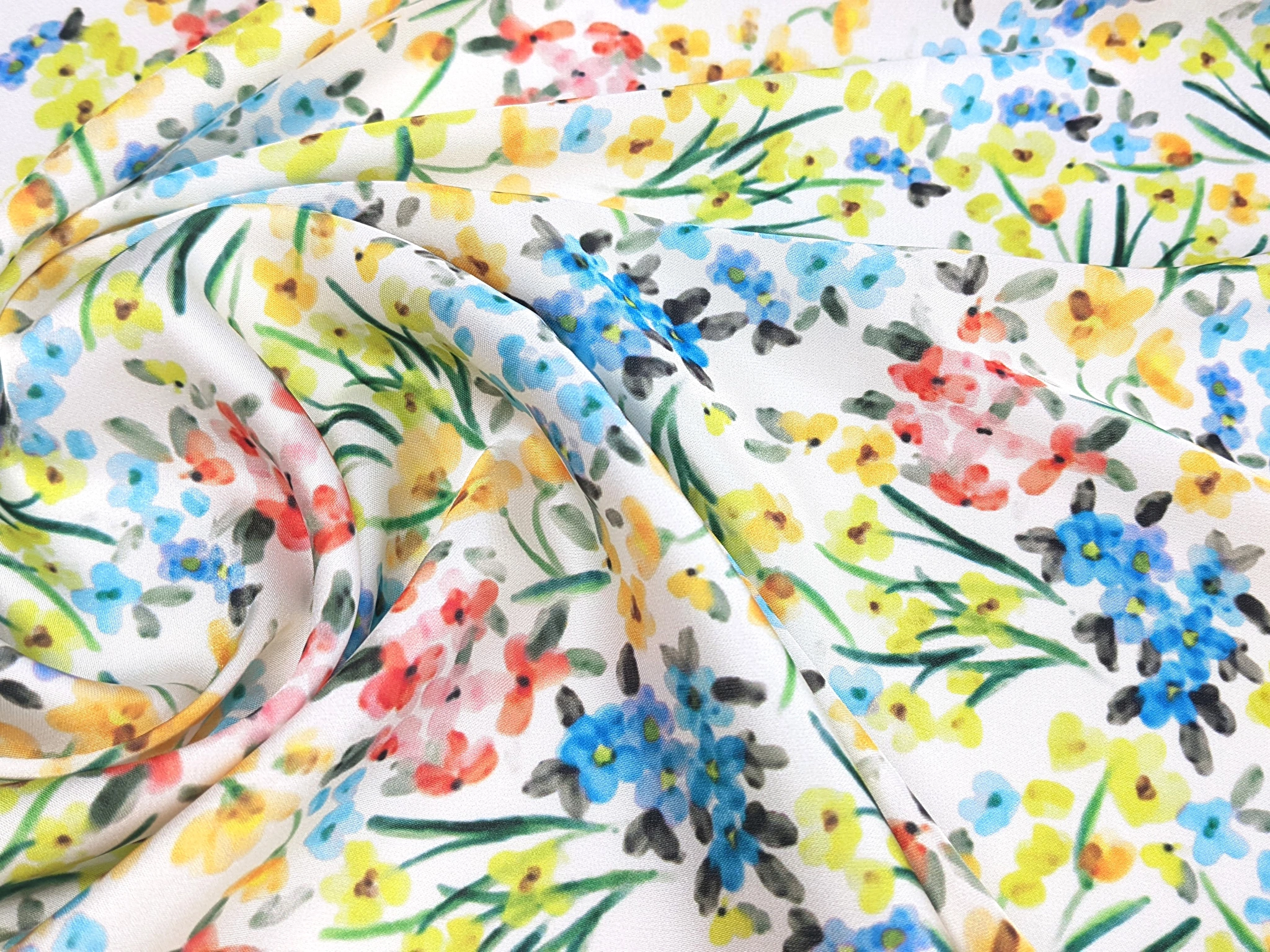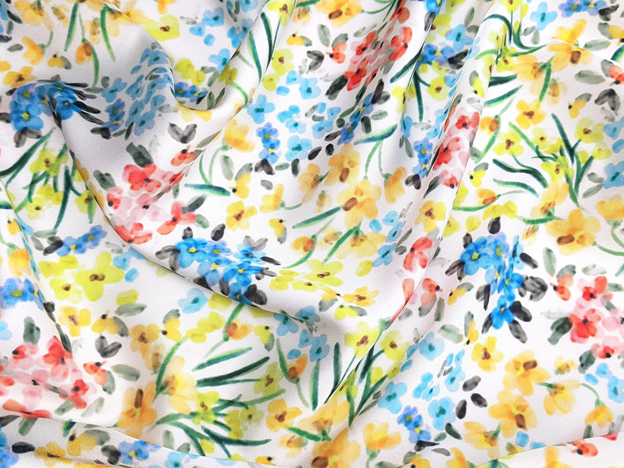 Шовк Армані квіткова акварель, жовто-блакитний
