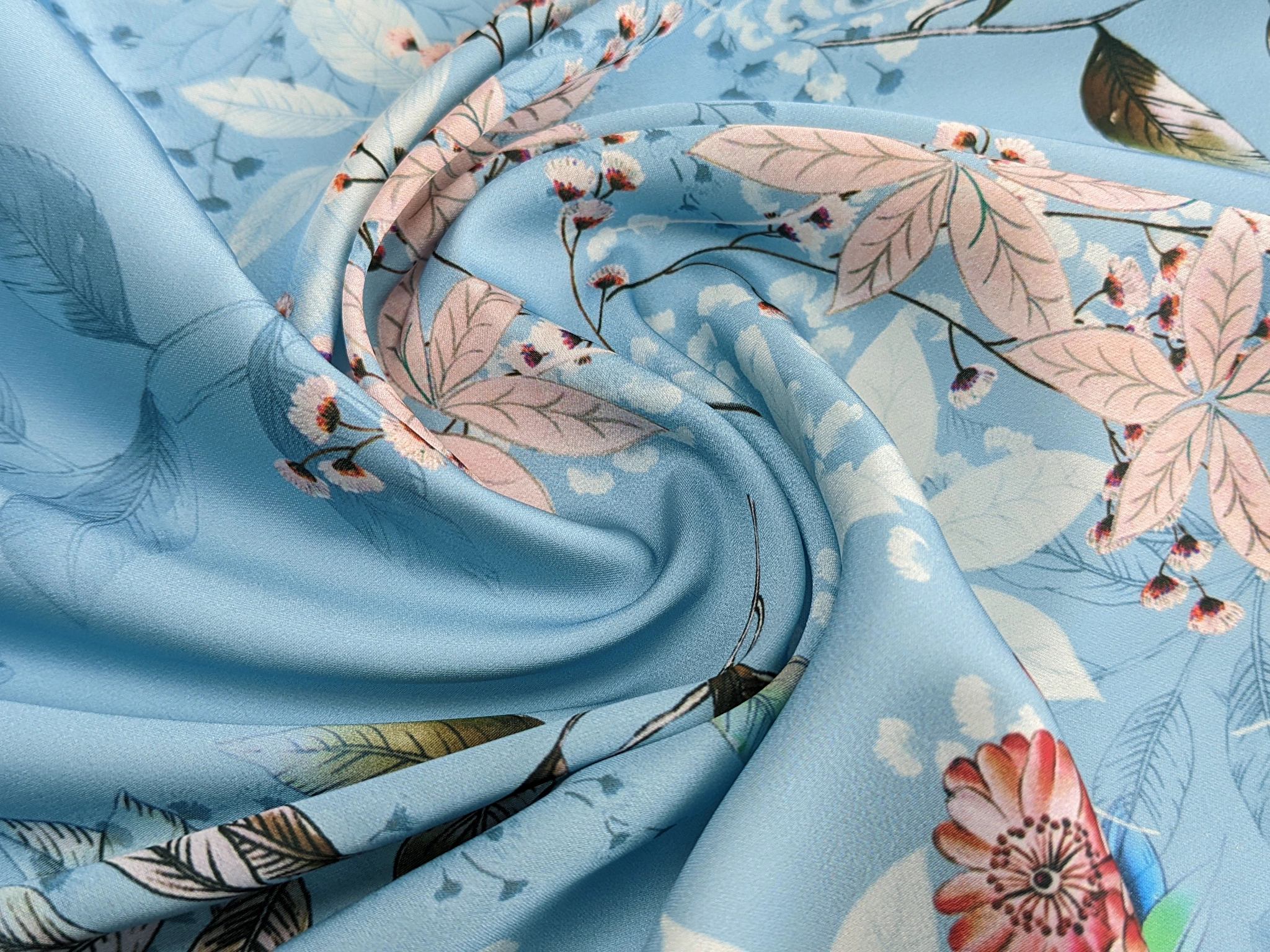 Шовк сати - це легке полотно, гладке як атлас, але значно тонше й приємніше на дотик. Друга назва тканини - шовк Армані. Полотно красиво струмує, легке та летюче, не мнеться. Вимагає делікатного догляду. Застосовується для пошиття блуз, суконь, костюмів та накидок. У виробі тканина виглядає дорого, ошатно і вишукано.