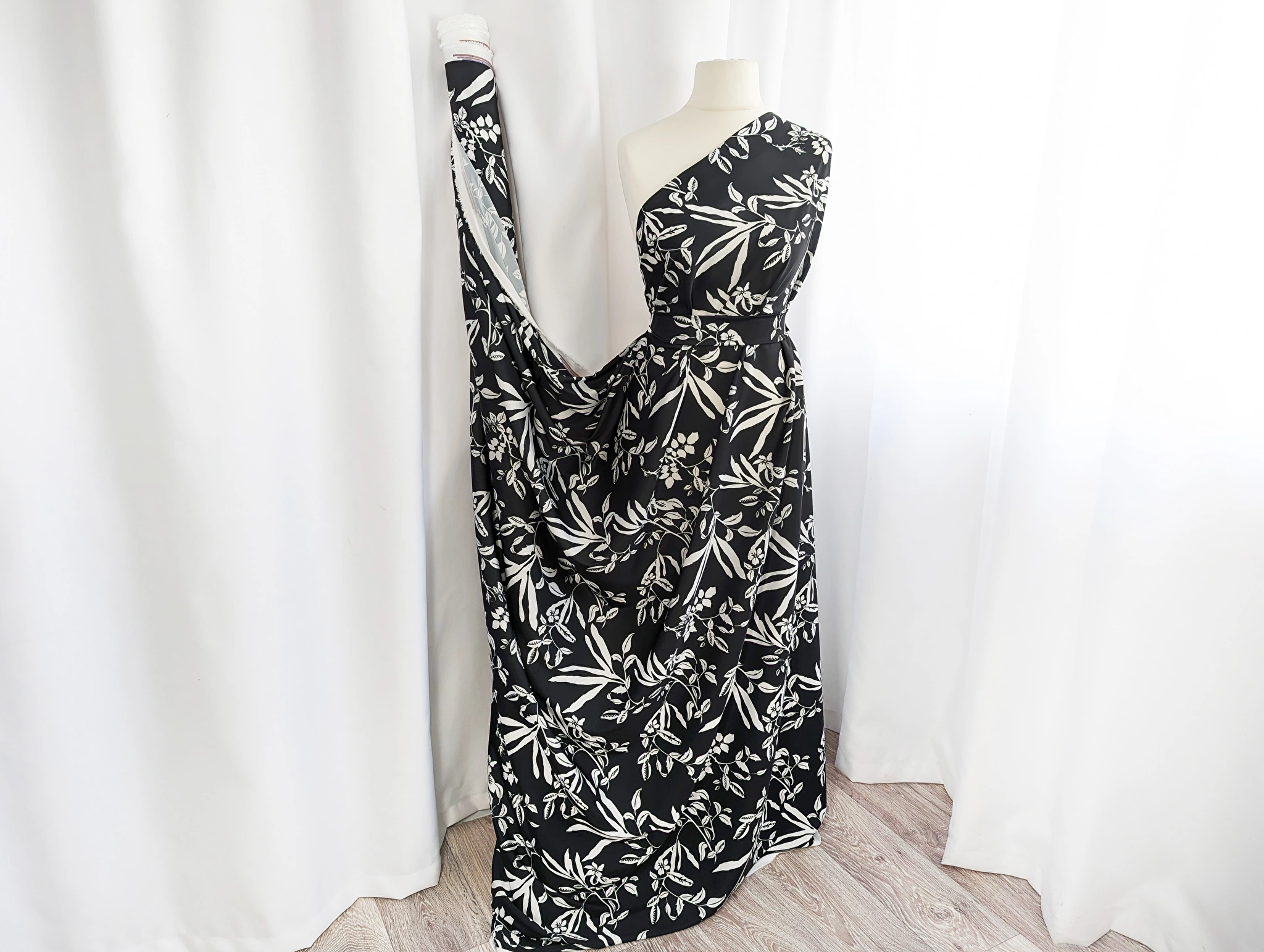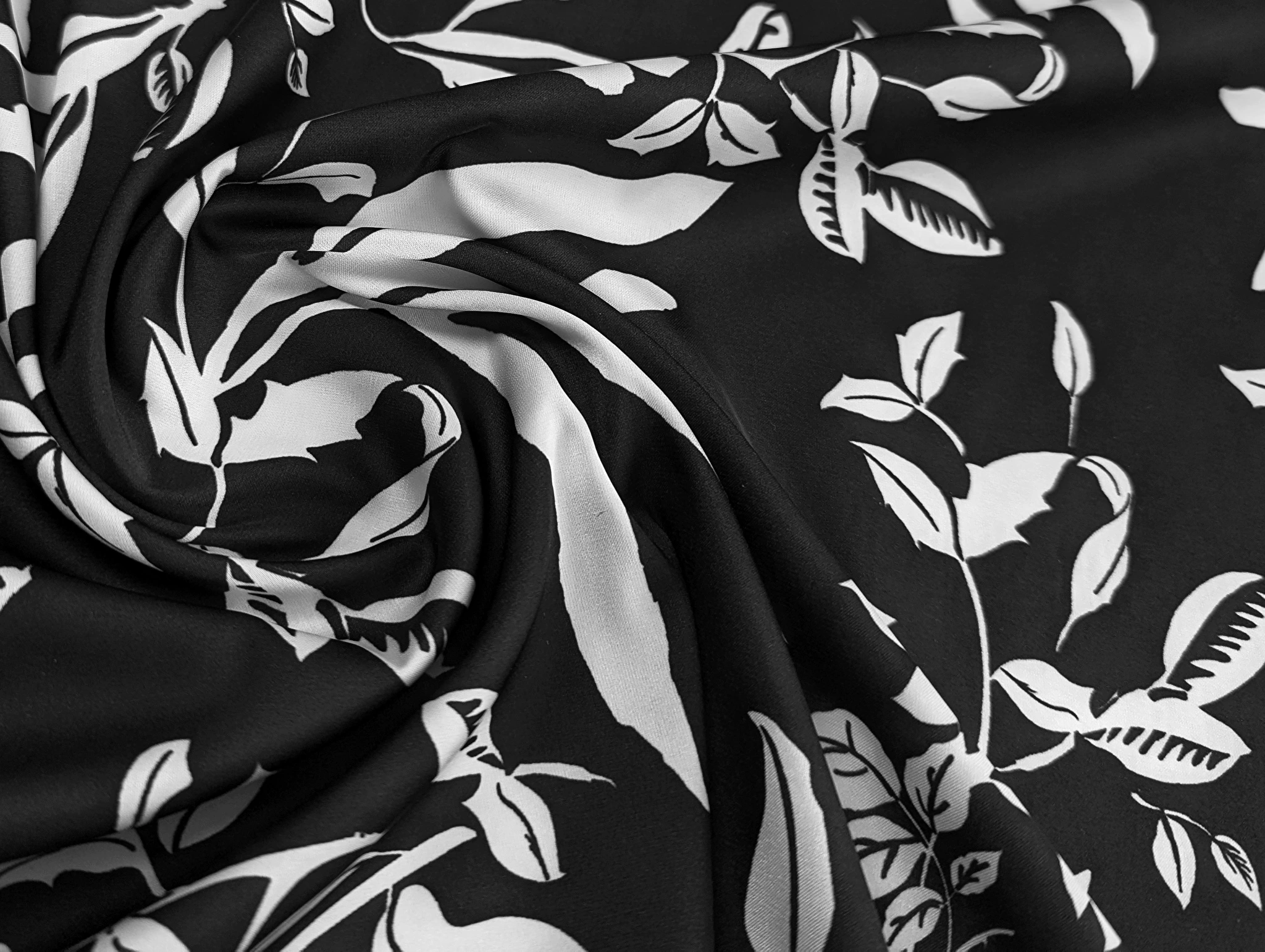 Шовк Армані квітковий вальс, чорно-білий