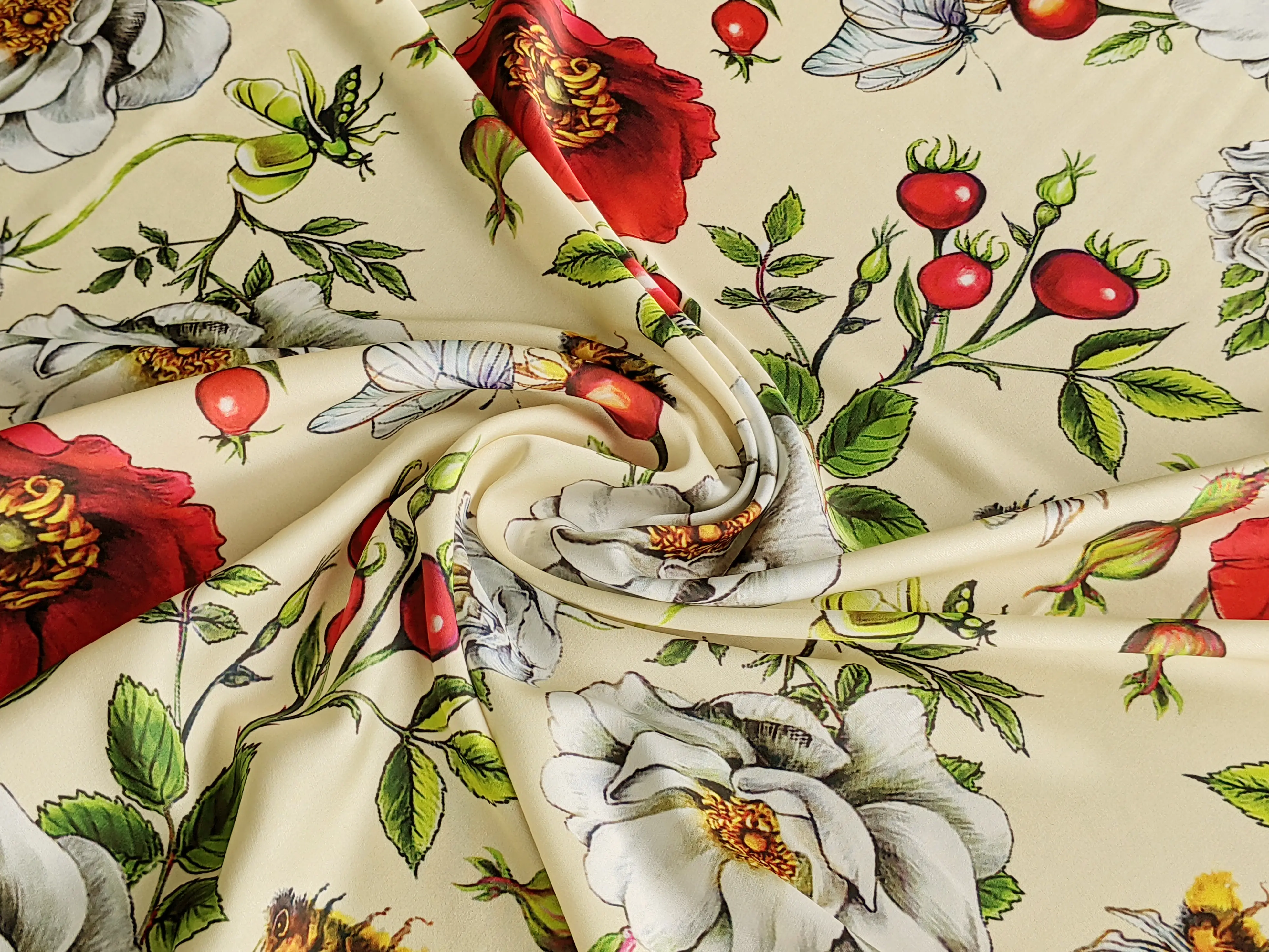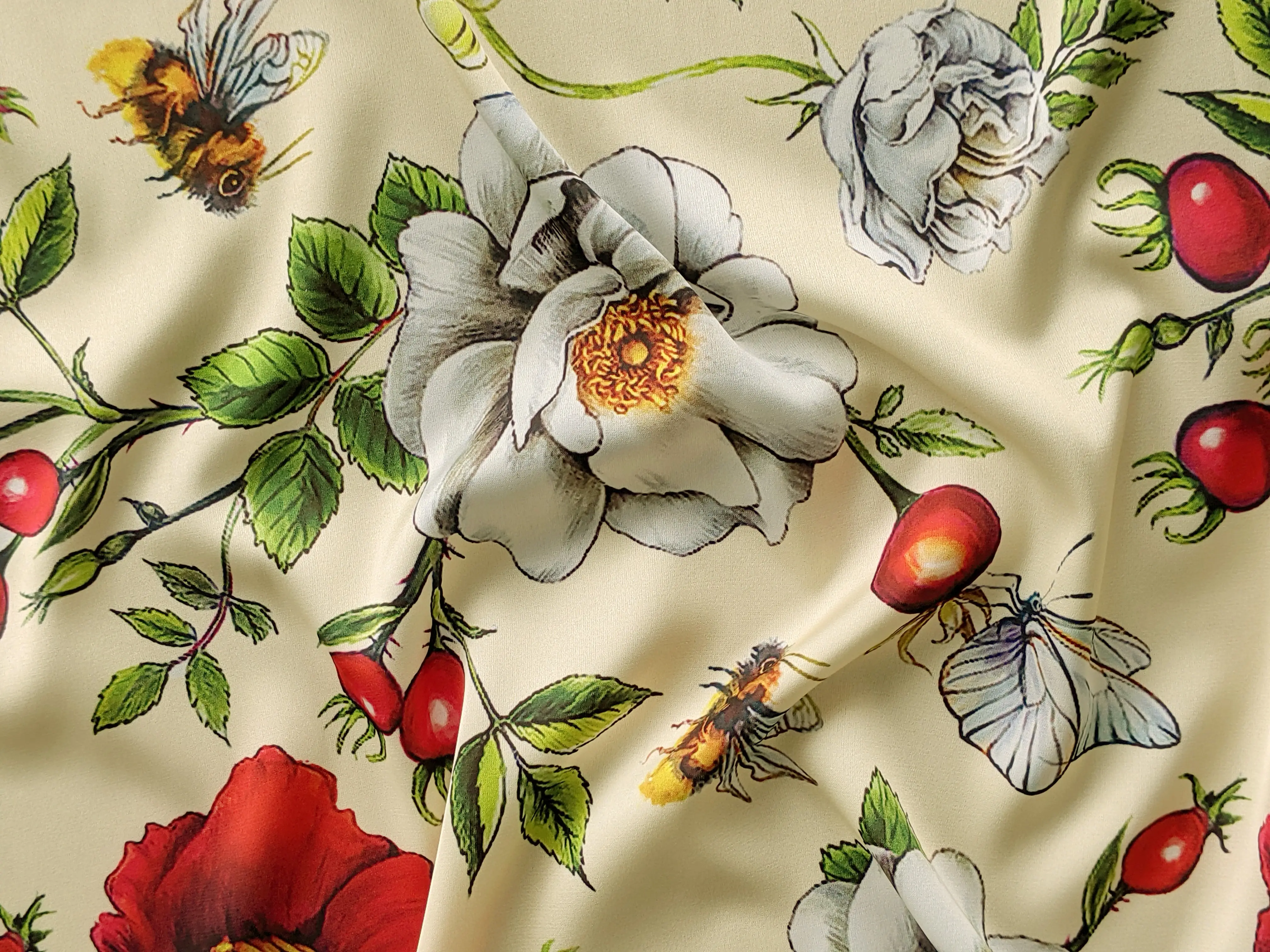 Шовк сати - це легке полотно, гладке як атлас, але значно тонше й приємніше на дотик. Друга назва тканини - шовк Армані. Полотно красиво струмує, легке та летюче, не мнеться. Вимагає делікатного догляду. Застосовується для пошиття блуз, суконь, костюмів та накидок. У виробі тканина виглядає дорого, ошатно і вишукано.
