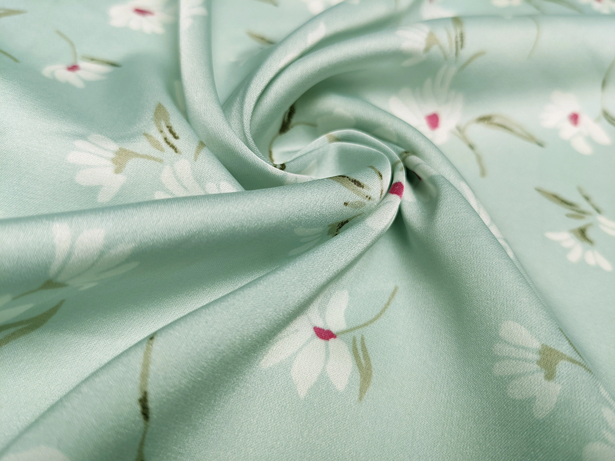 Шовк сати - це легке полотно, гладке як атлас, але значно тонше й приємніше на дотик. Друга назва тканини - шовк Армані. Полотно красиво струмує, легке та летюче, не мнеться. Вимагає делікатного догляду. Застосовується для пошиття блуз, суконь, костюмів та накидок. У виробі тканина виглядає дорого, ошатно і вишукано.