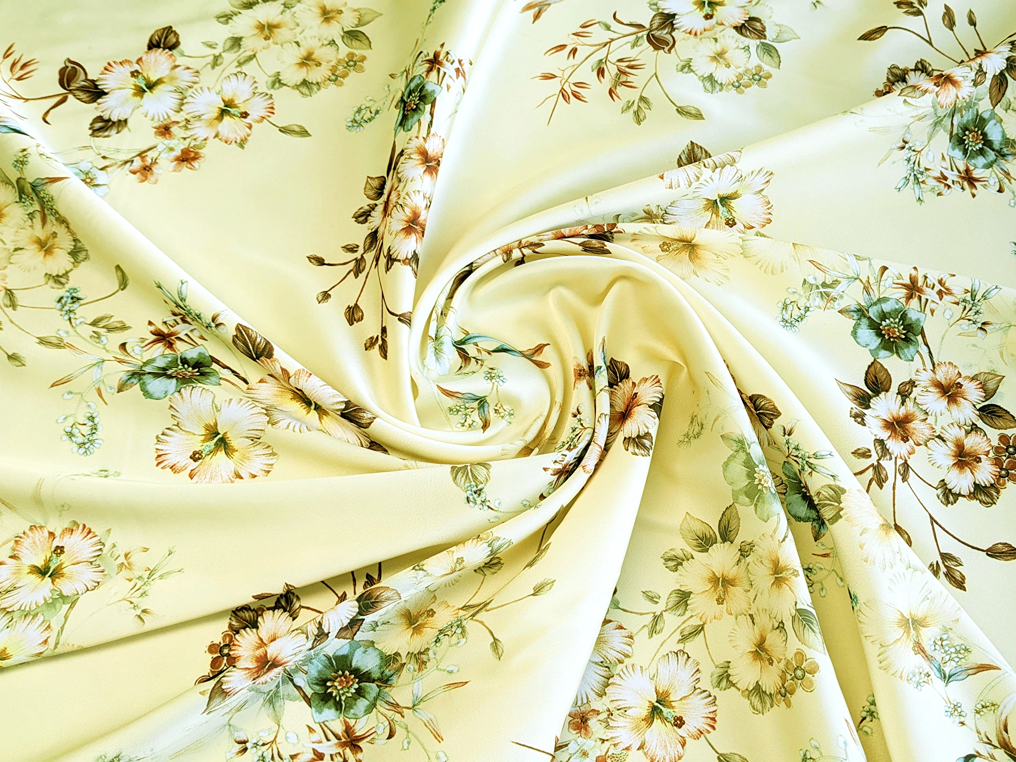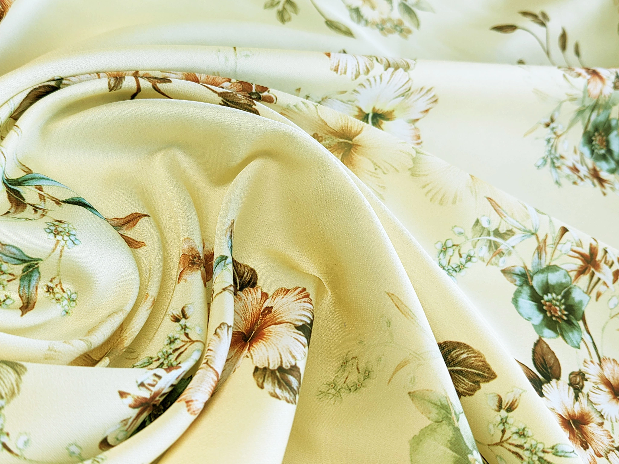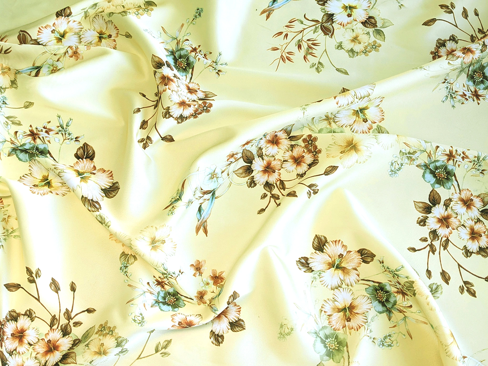 Шовк сати - це легке полотно, гладке як атлас, але значно тонше й приємніше на дотик. Друга назва тканини - шовк Армані. Полотно красиво струмує, легке та летюче, не мнеться. Вимагає делікатного догляду. Застосовується для пошиття блуз, суконь, костюмів та накидок. У виробі тканина виглядає дорого, ошатно і вишукано.