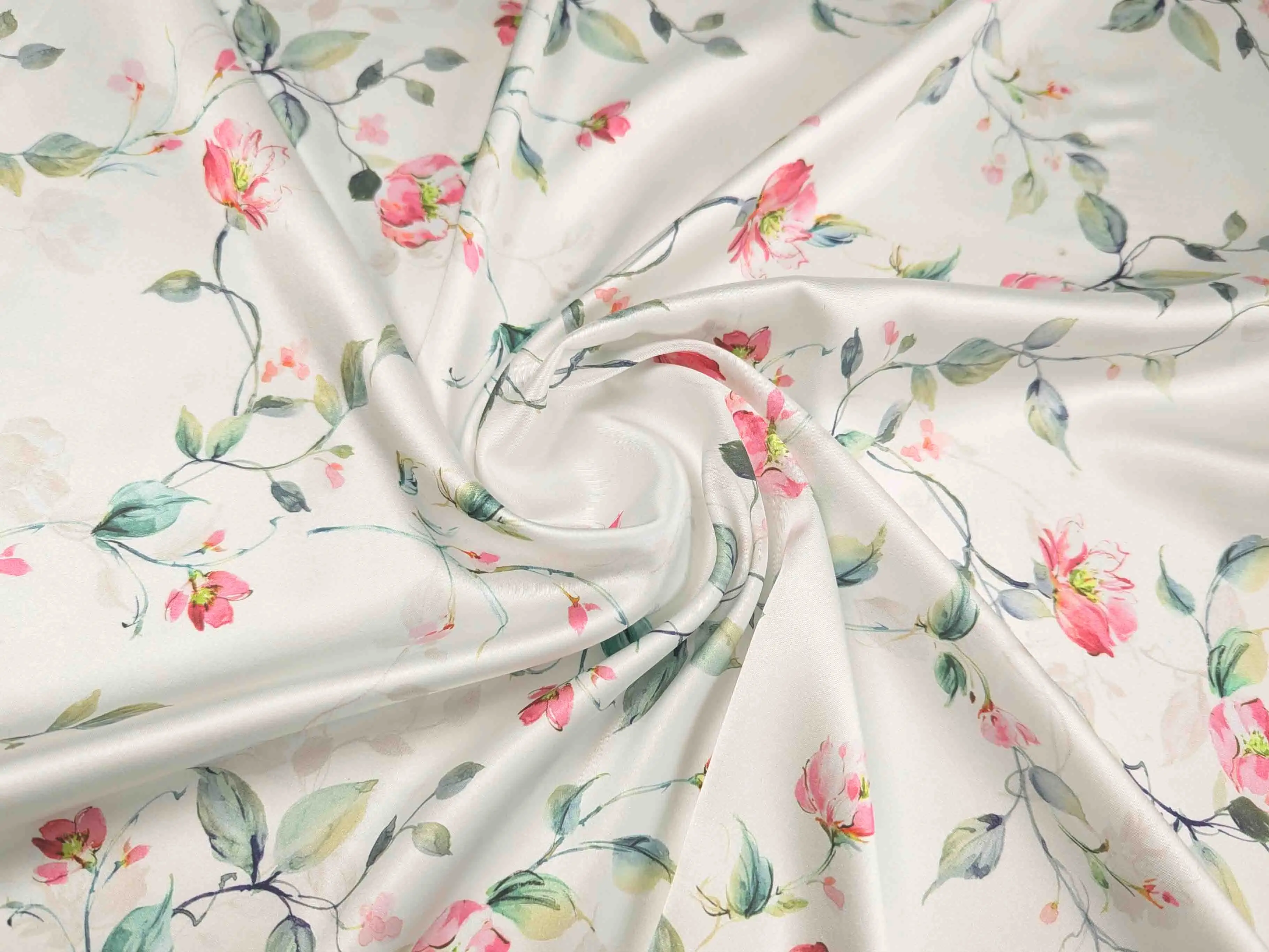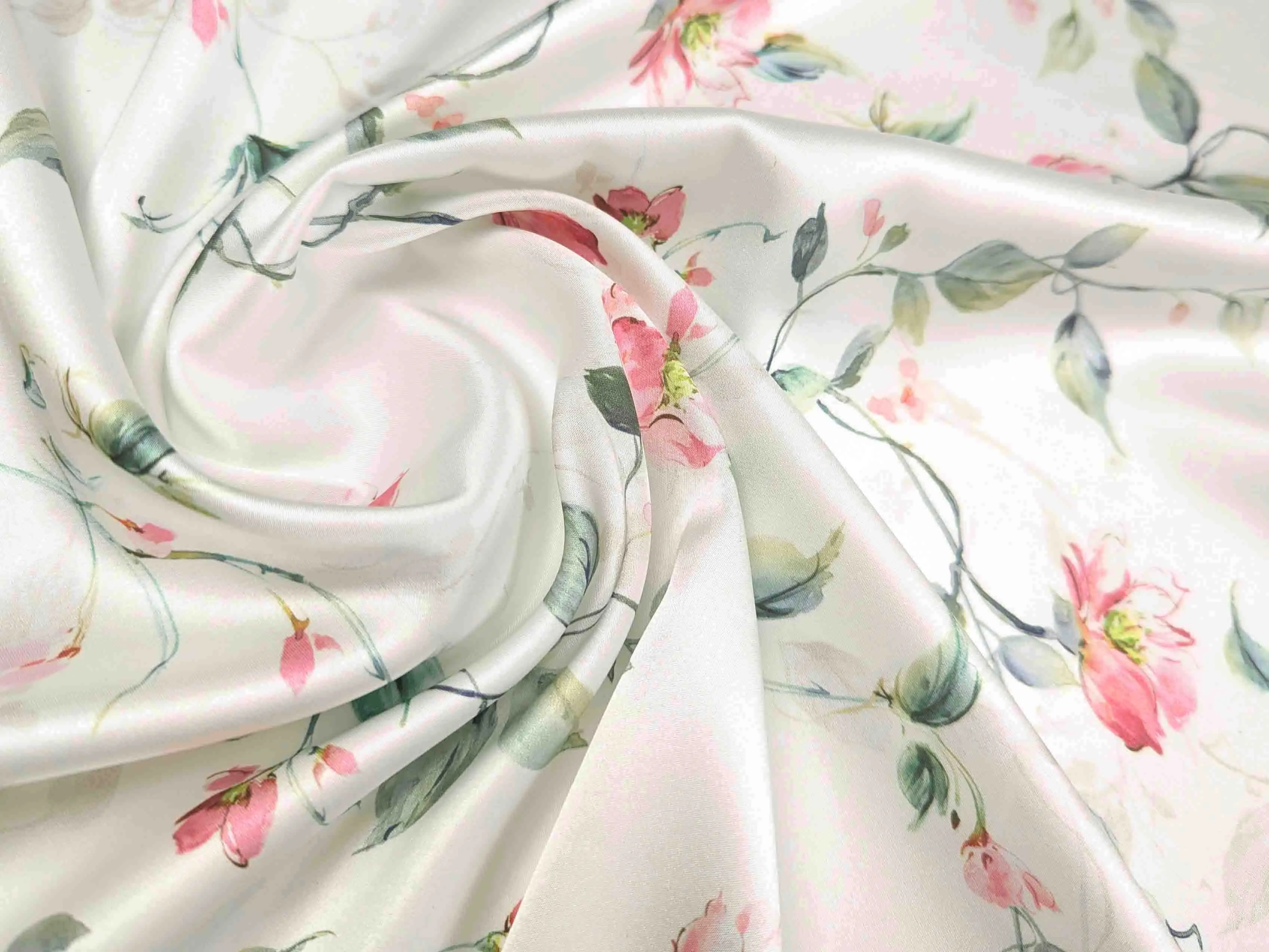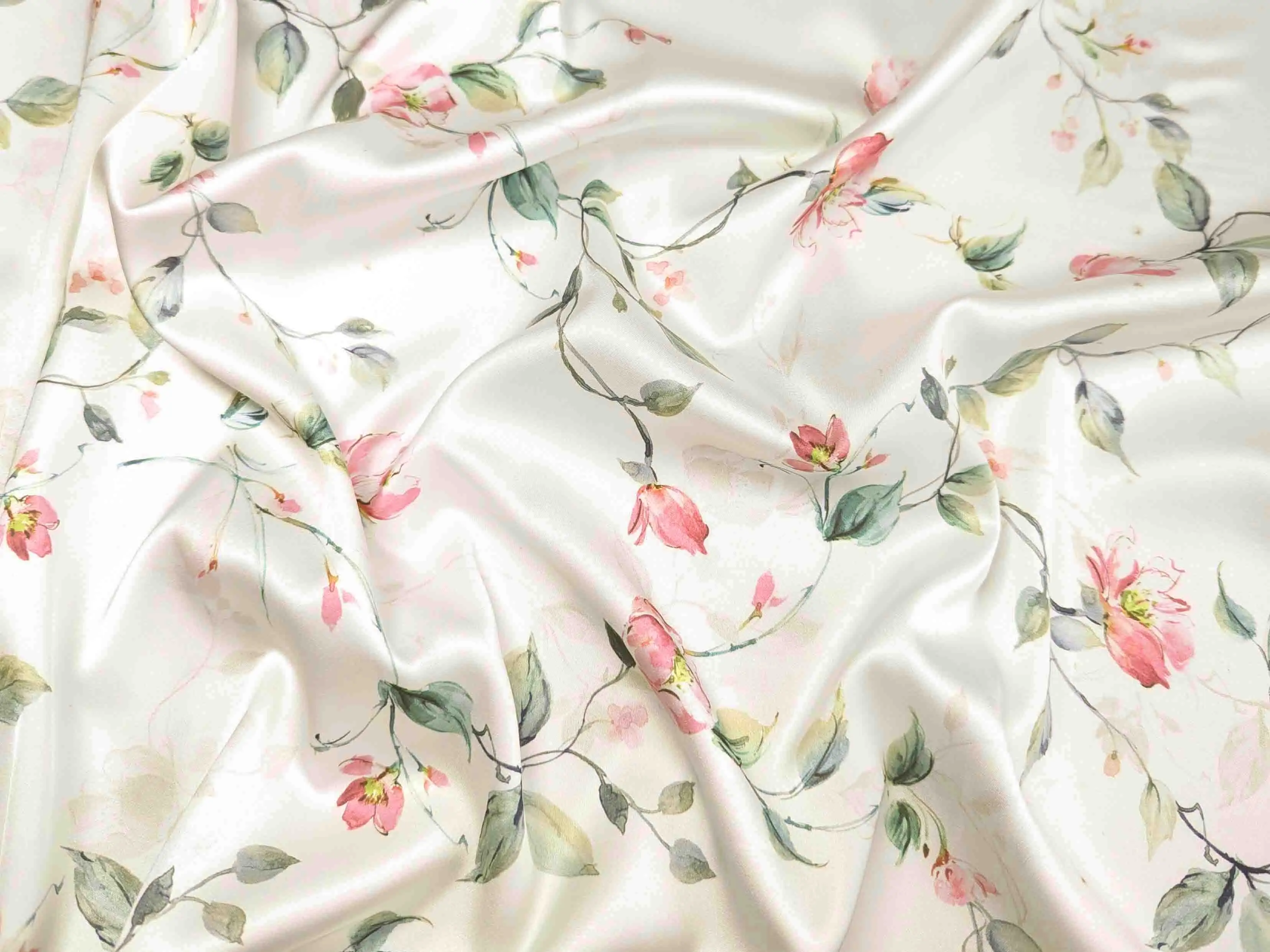 Шовк сати - це легке полотно, гладке як атлас, але значно тонше й приємніше на дотик. Друга назва тканини - шовк Армані. Полотно красиво струмує, легке та летюче, не мнеться. Вимагає делікатного догляду. Застосовується для пошиття блуз, суконь, костюмів та накидок. У виробі тканина виглядає дорого, ошатно і вишукано.