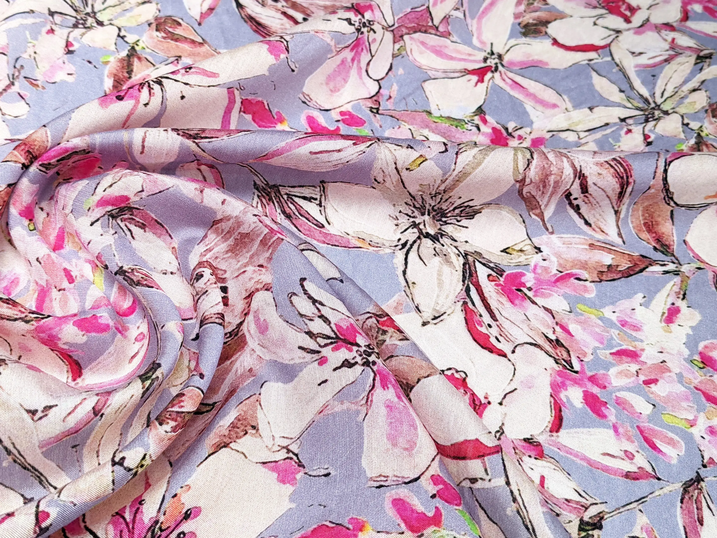 Шовк віскоза іриси, сіро-ліловий з малиновим