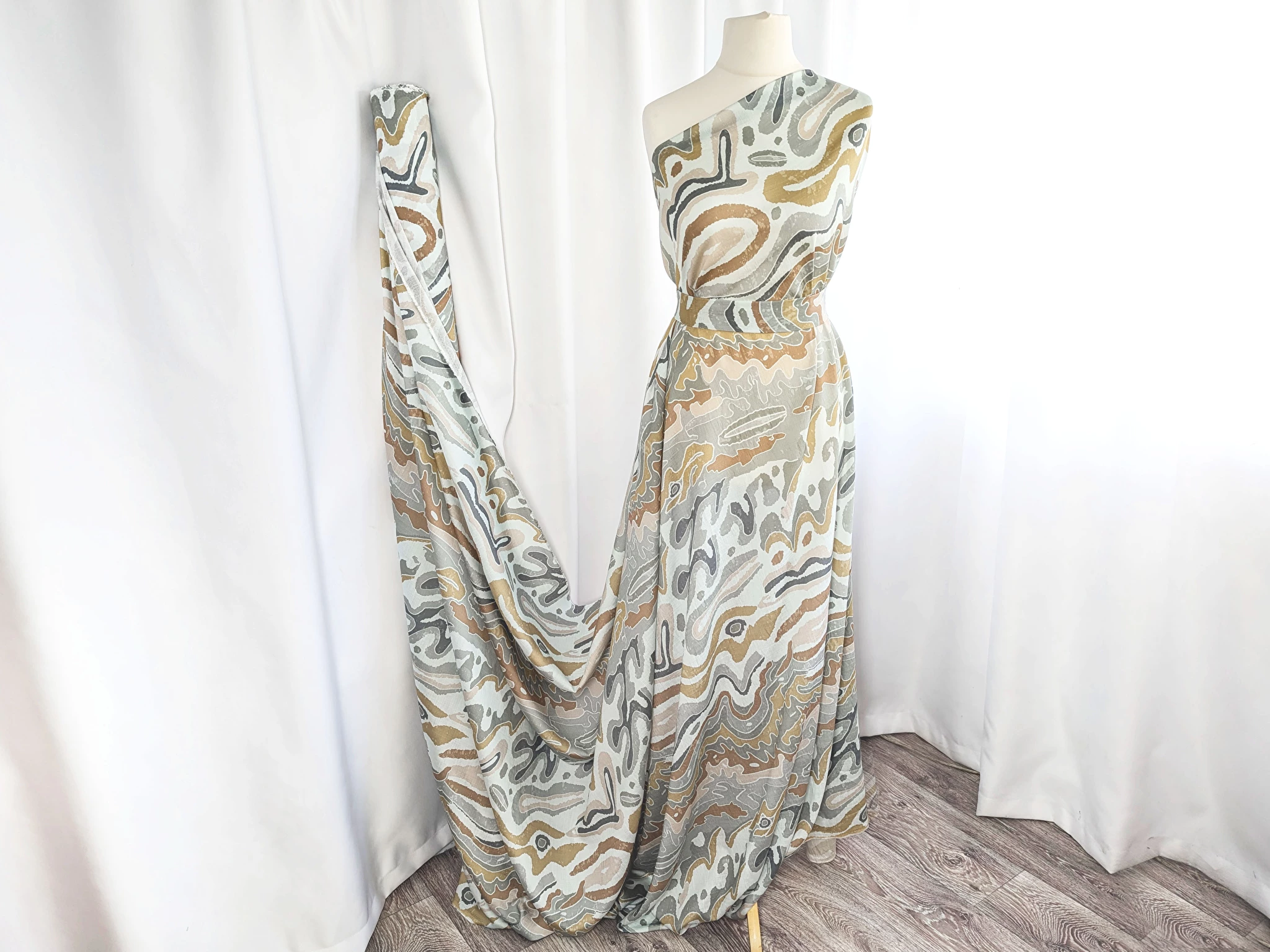 Шовк віскоза хвилясте плетіння, оливковий з бежевим