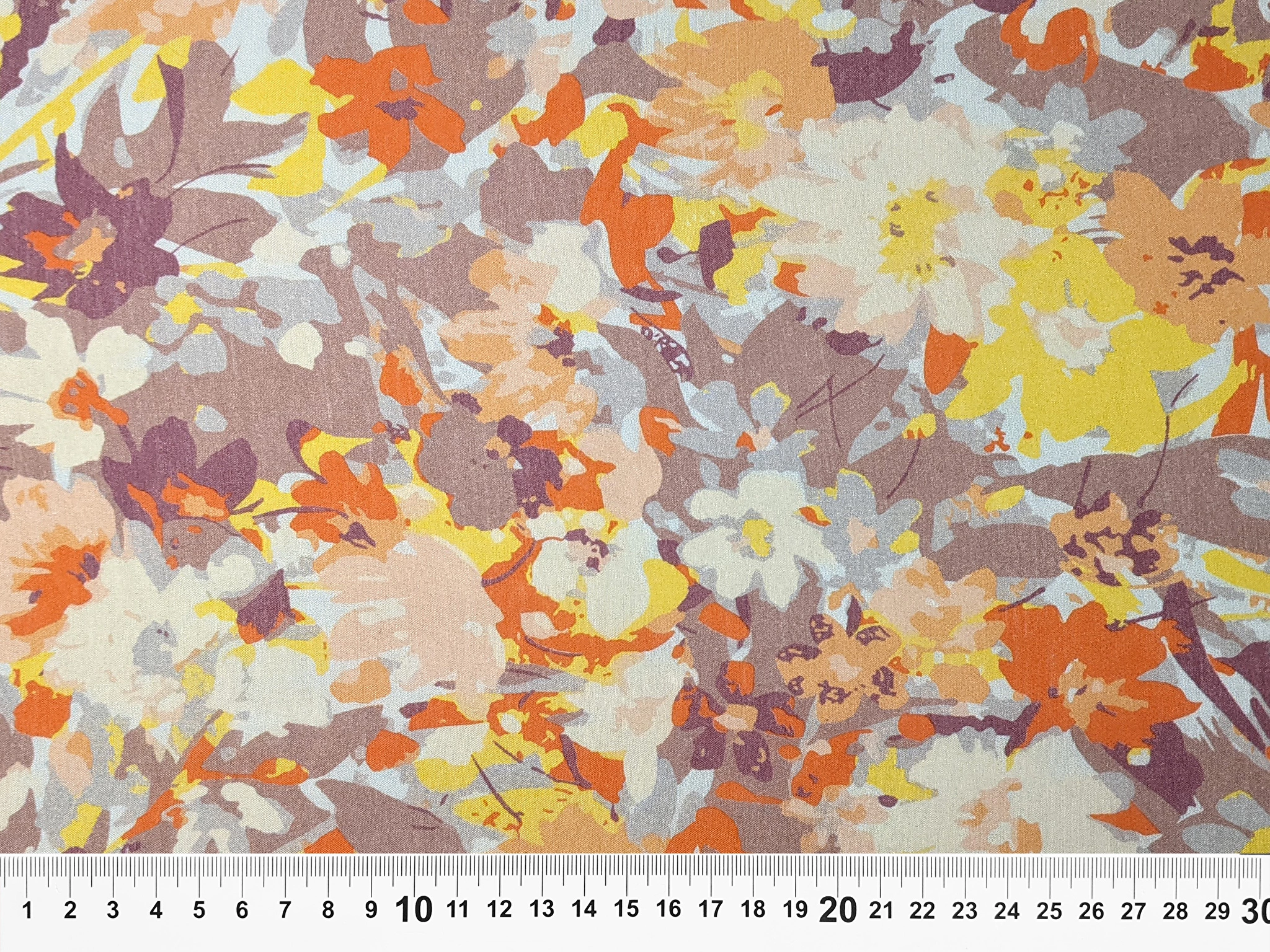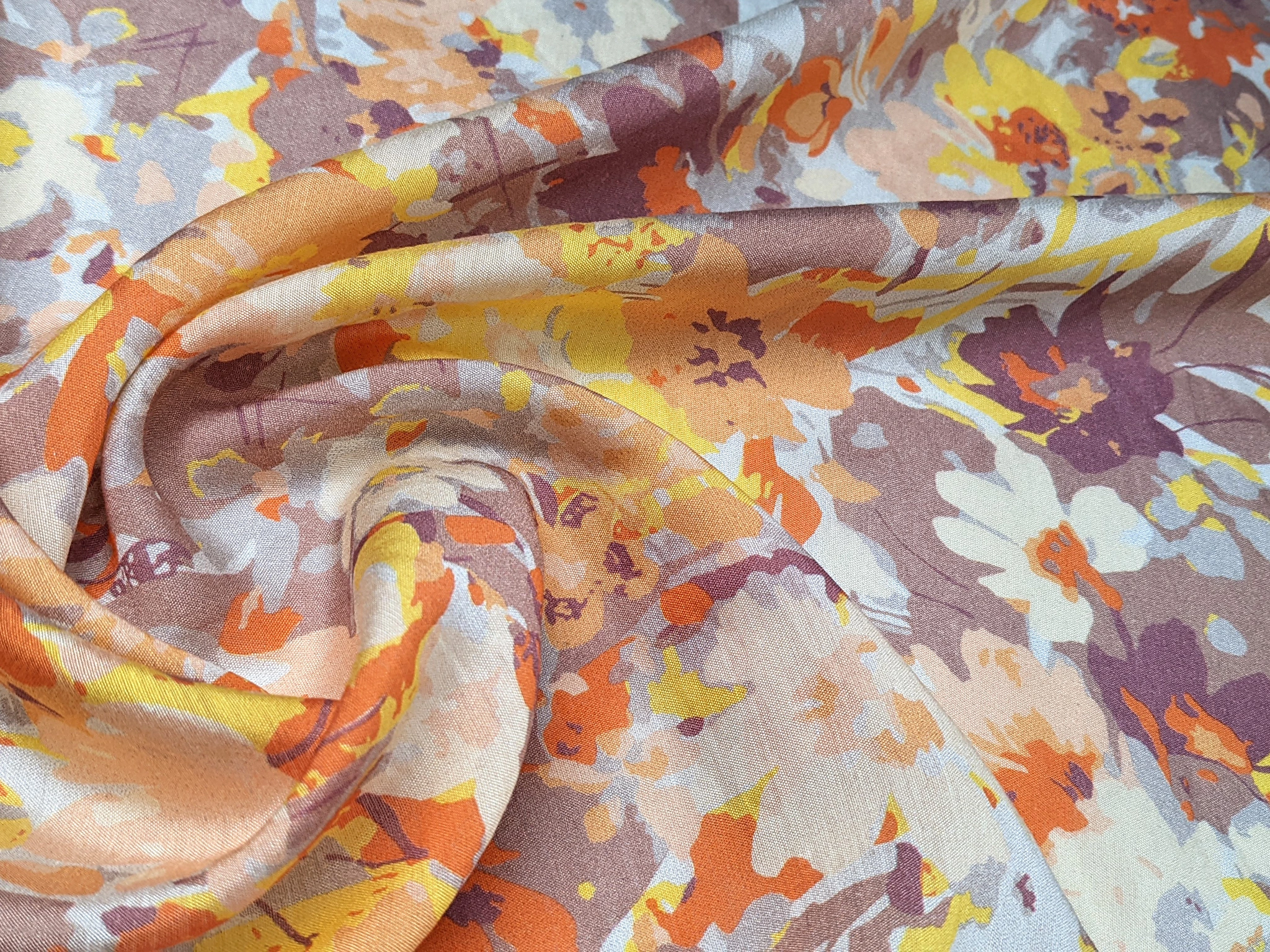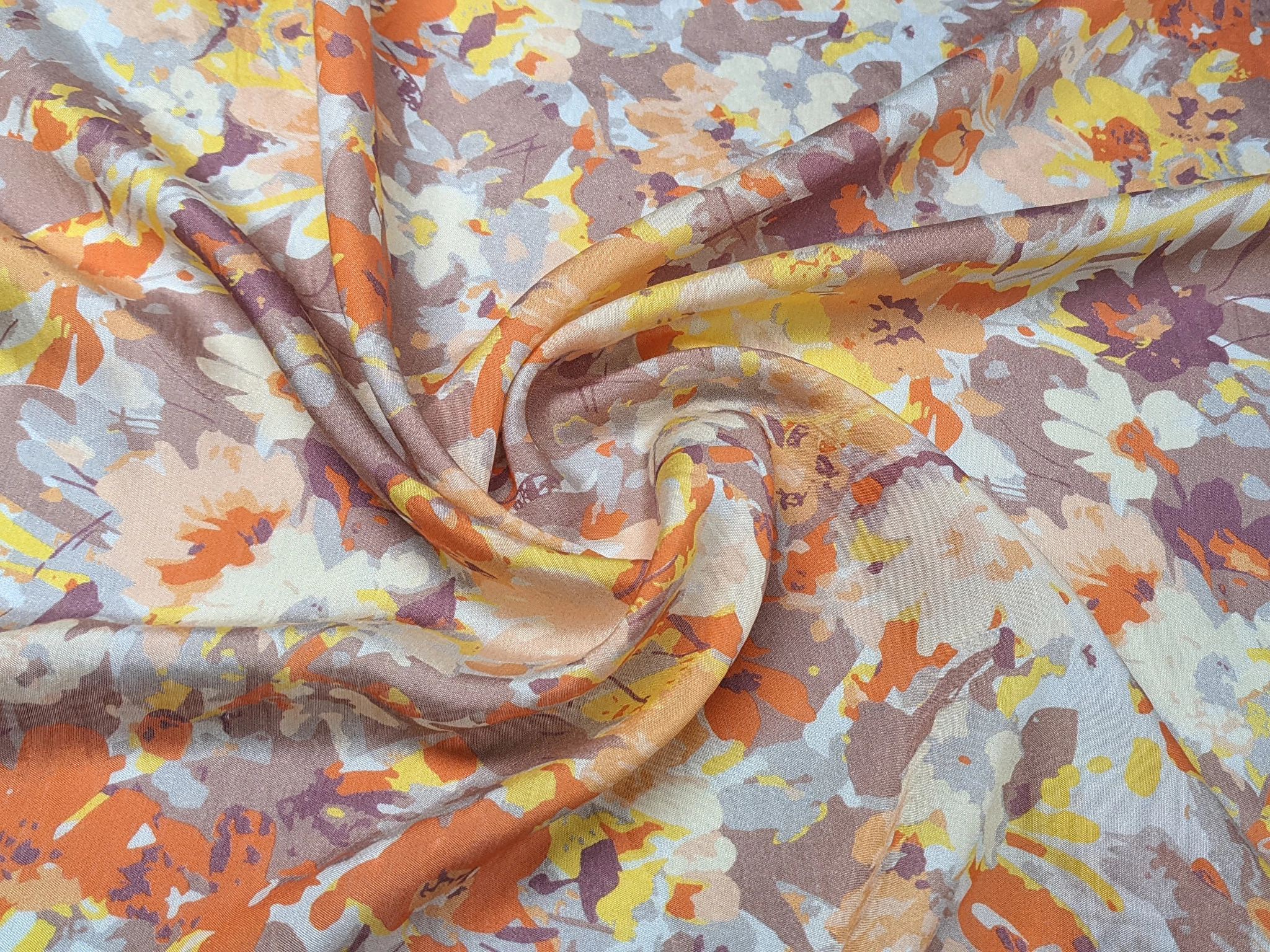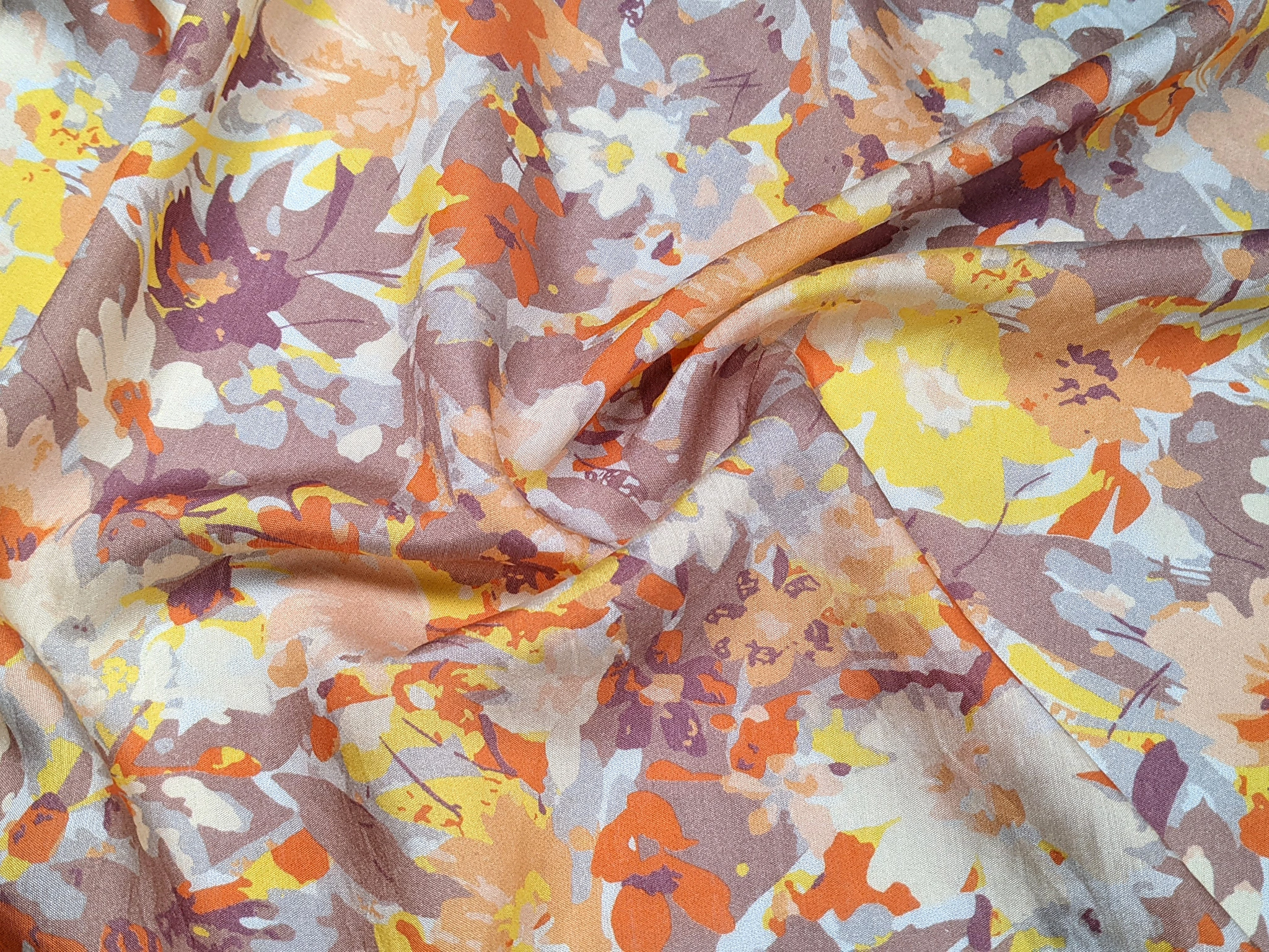 Шовк віскоза квіткова акварель, коричнево-оранжевий