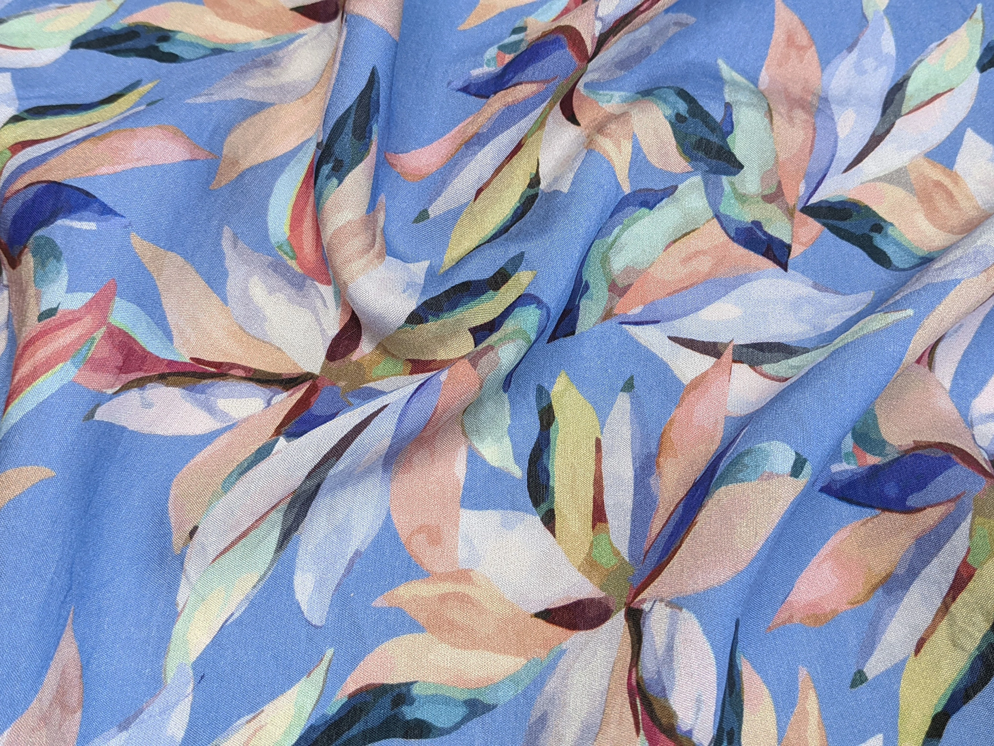 Шовк віскоза квіткова фантазія, блакитний джинсовий