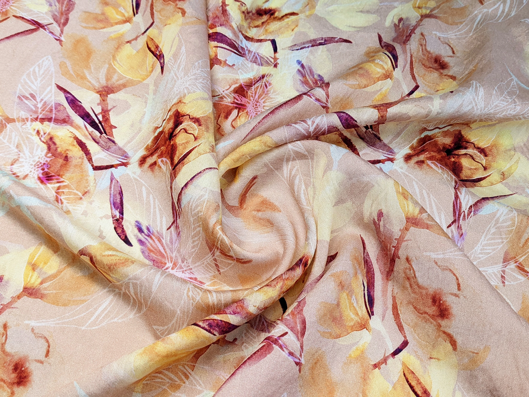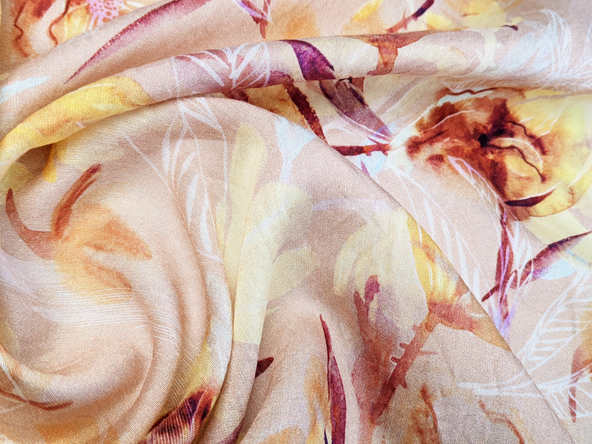 Шовк віскоза квіткові мрії, жовто-коричневий