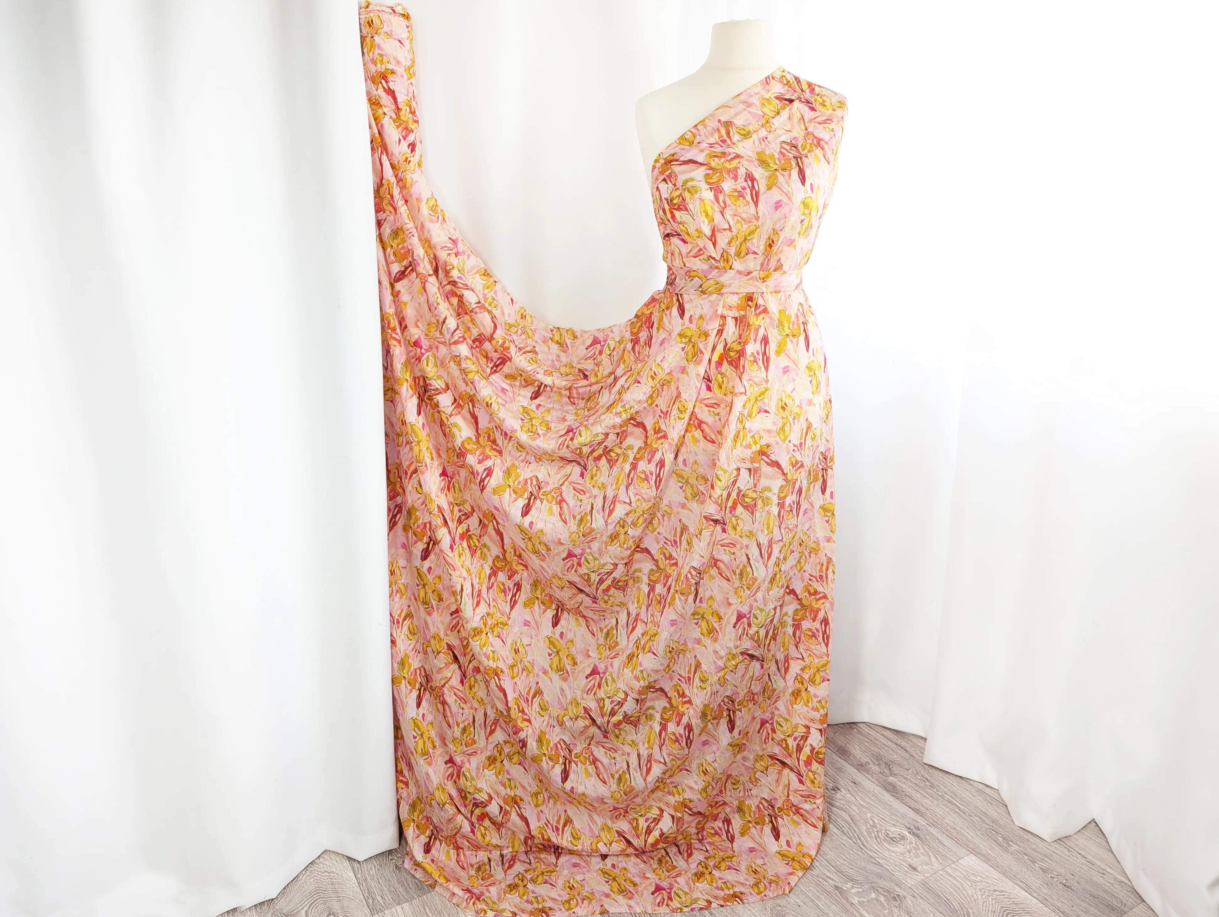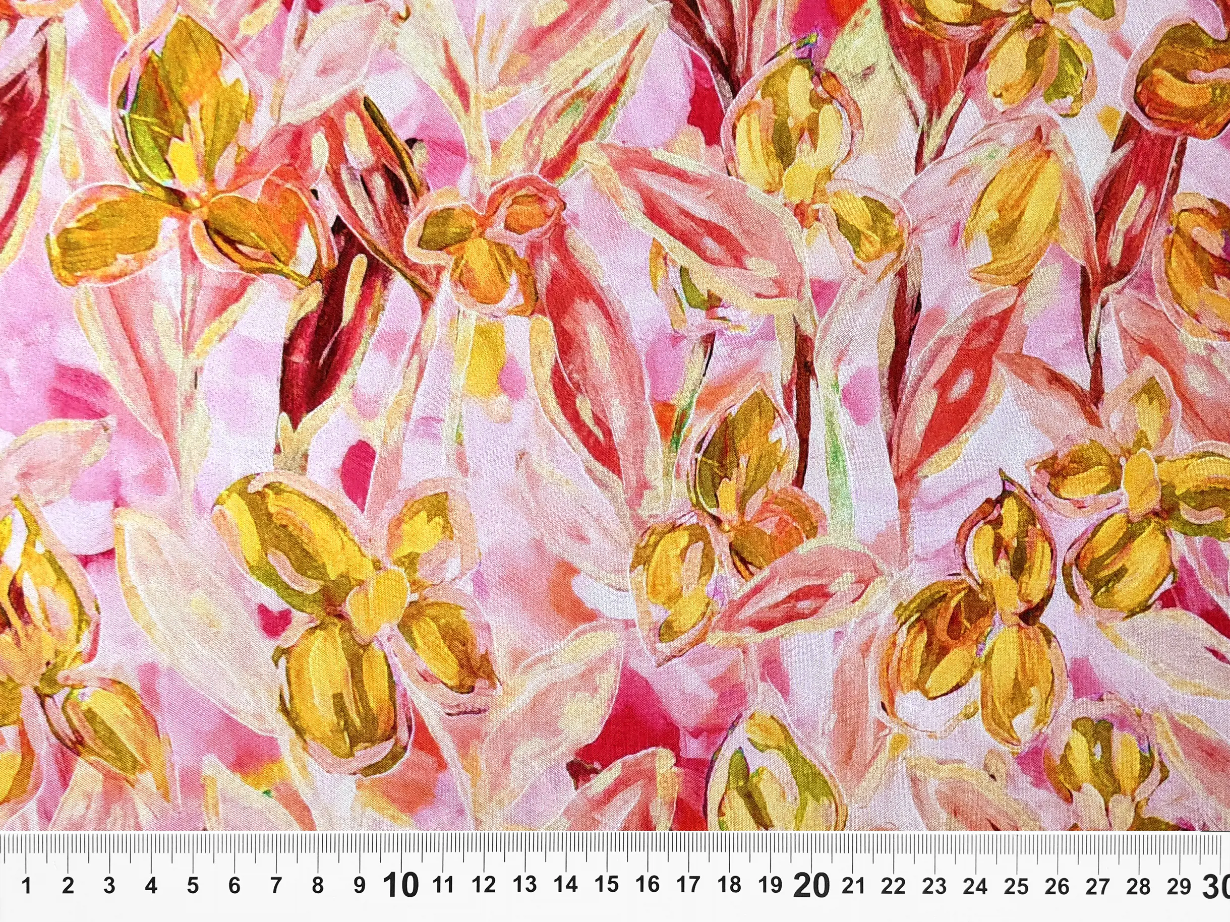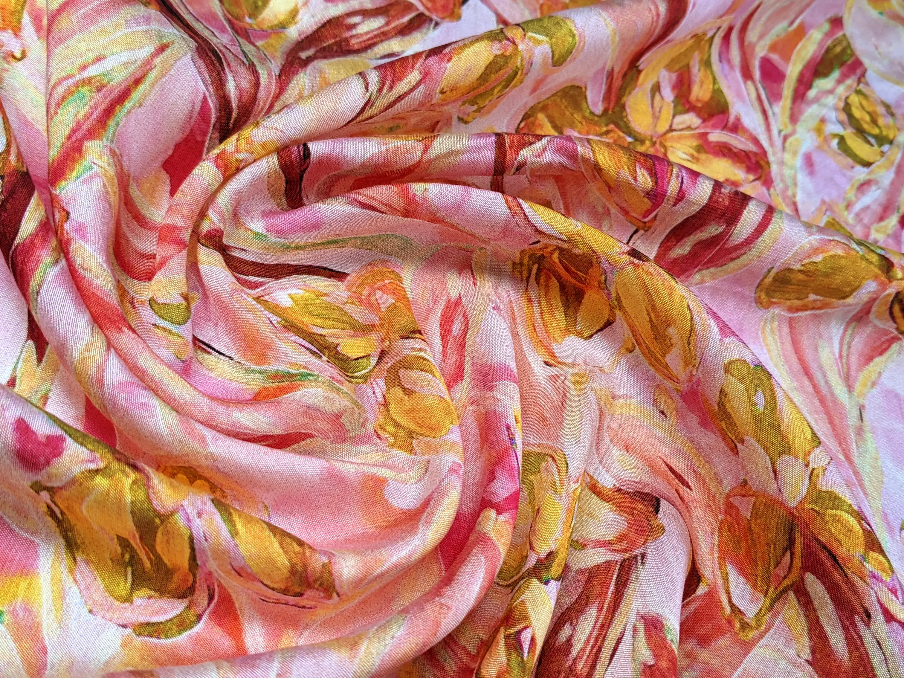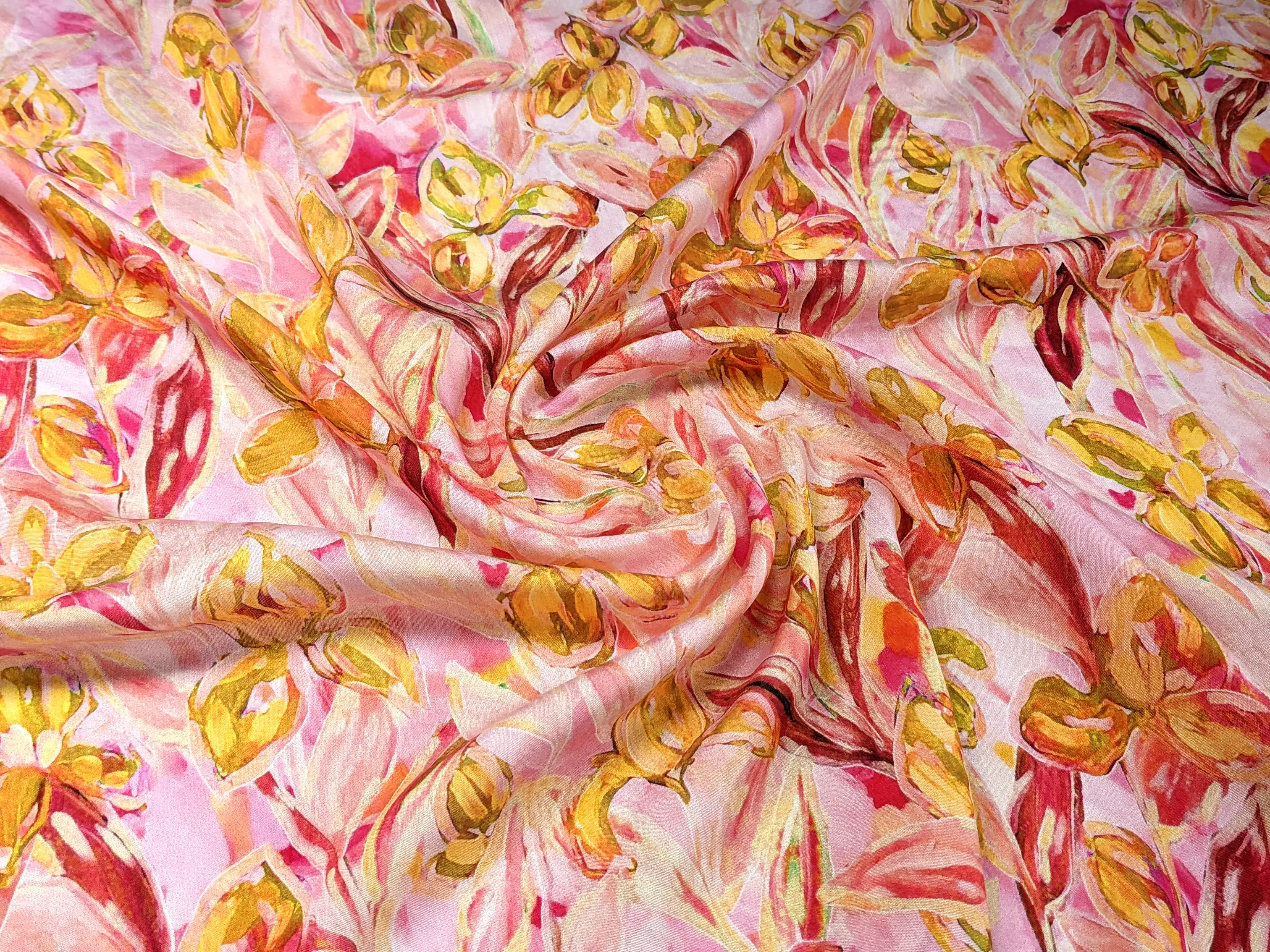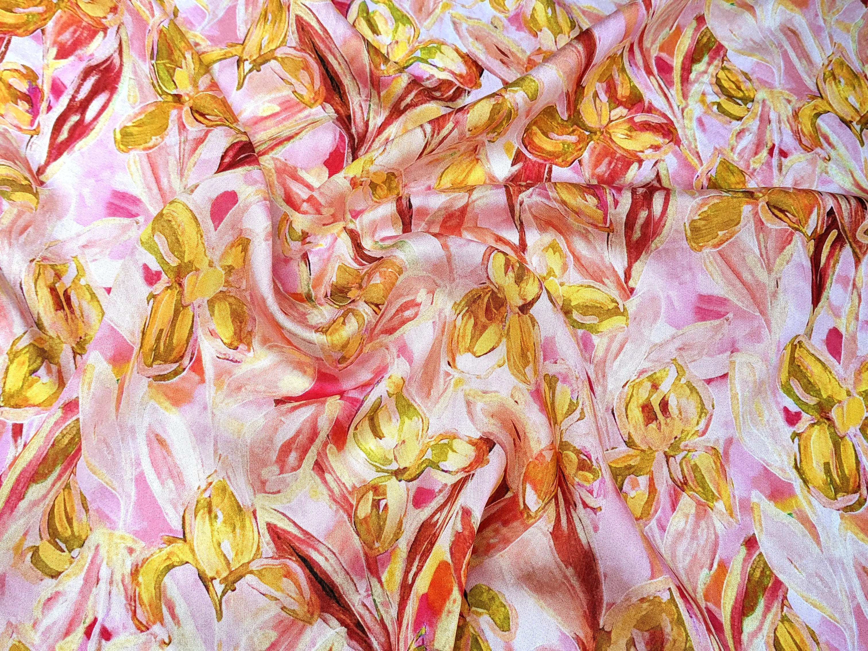 Шовк віскоза квіткові візерунки, жовто-кораловий