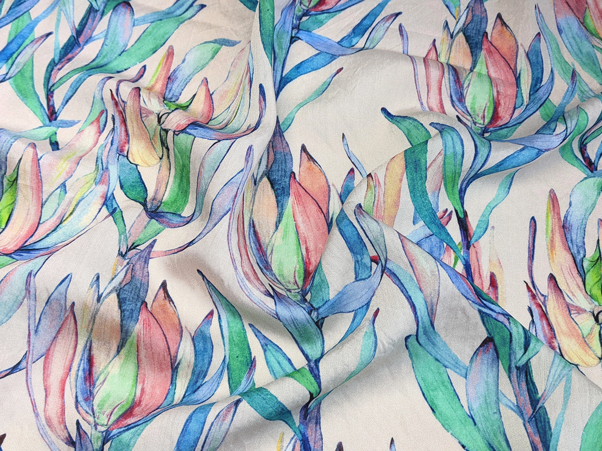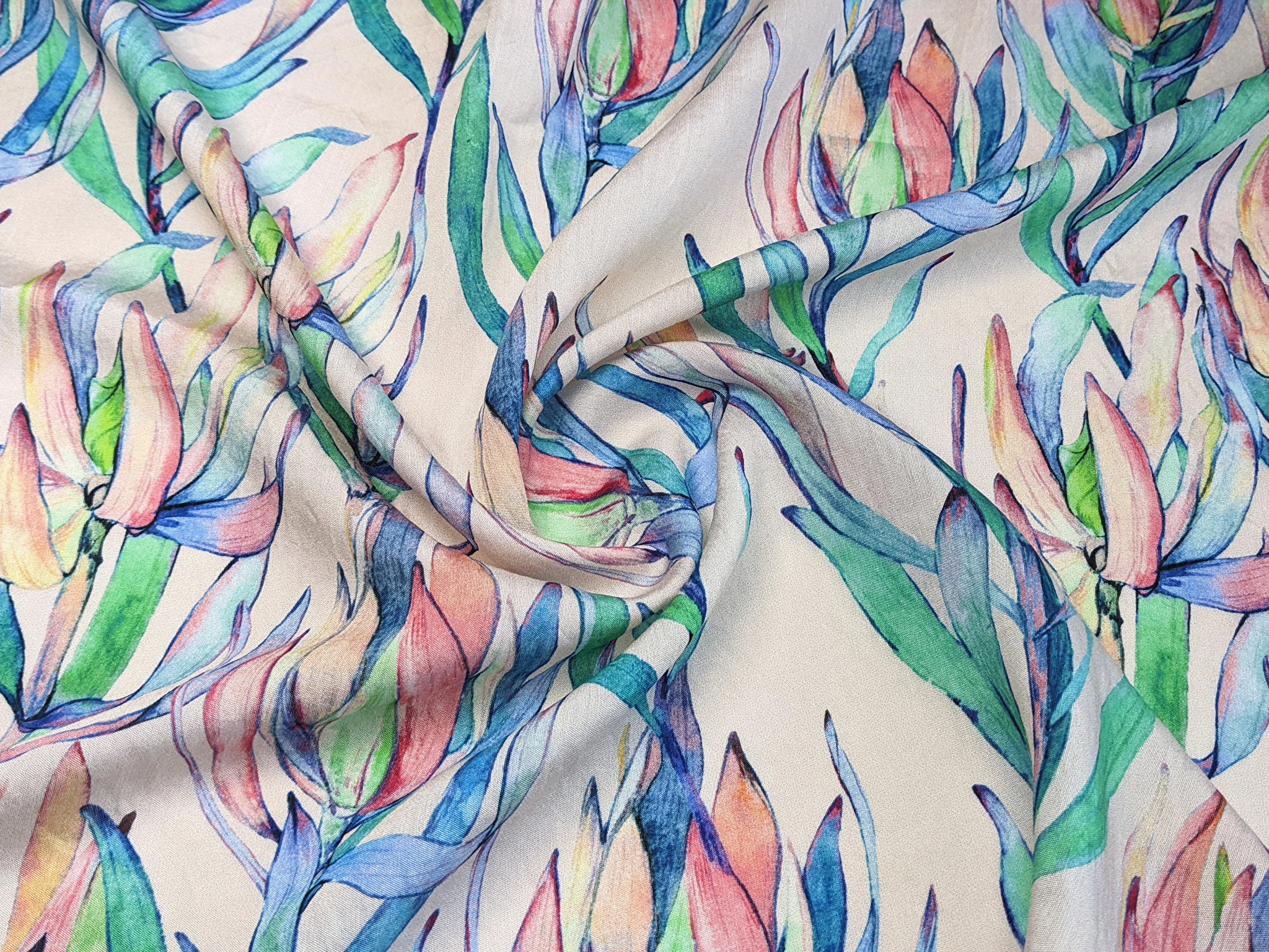 Шовк віскоза квітуча гілка, бірюзово-блакитний