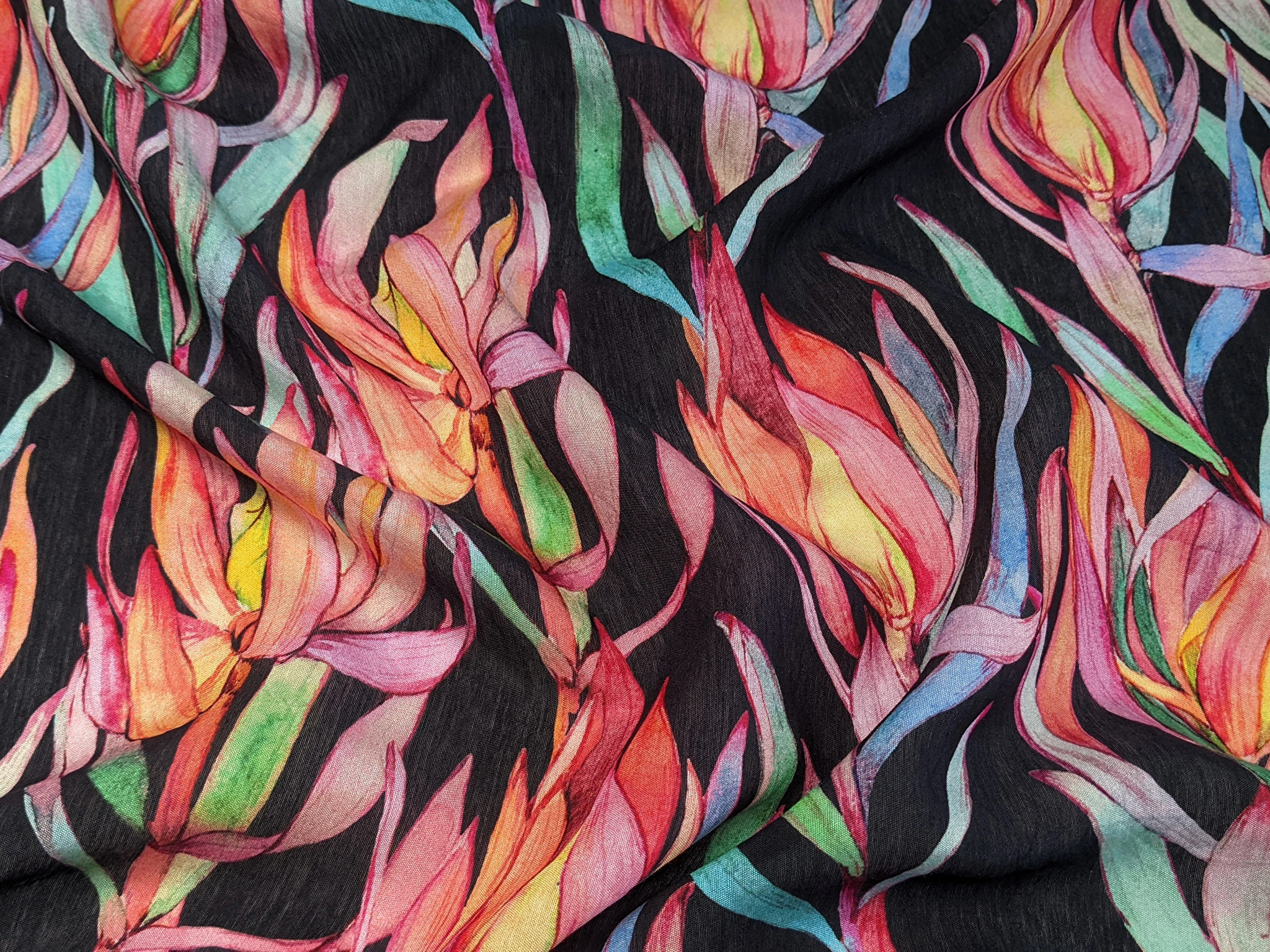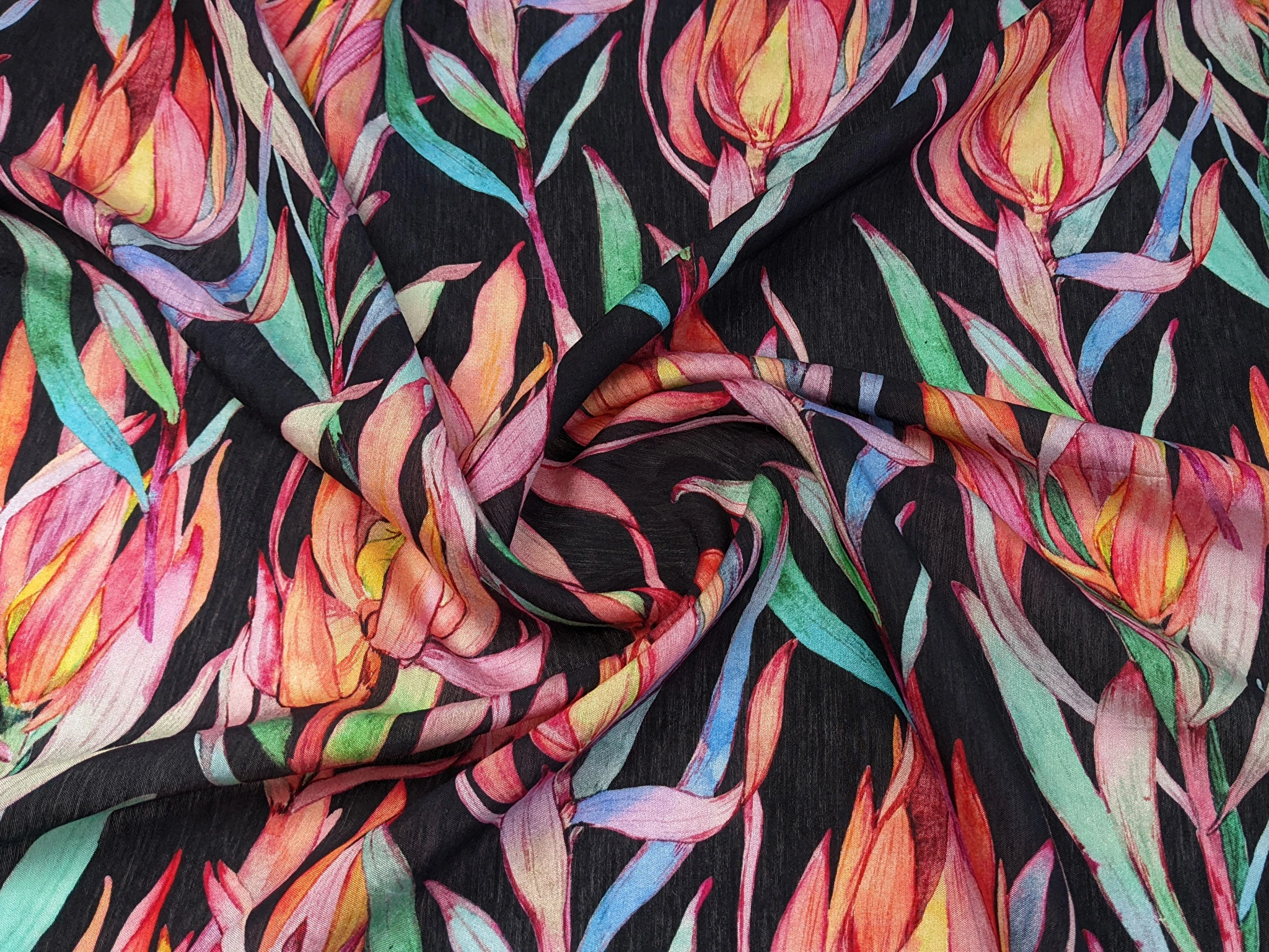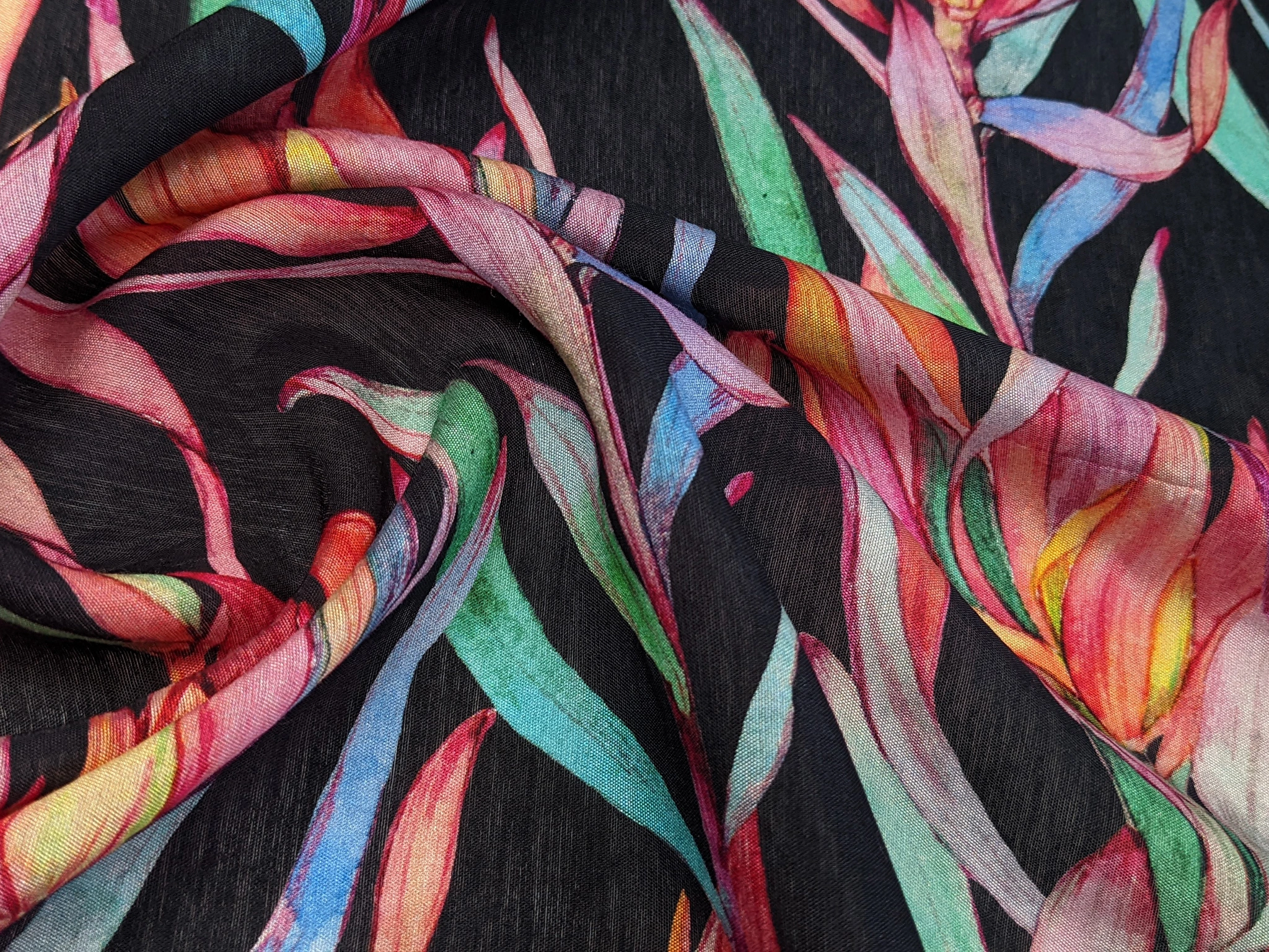 Шовк віскоза квітуча гілка, чорний