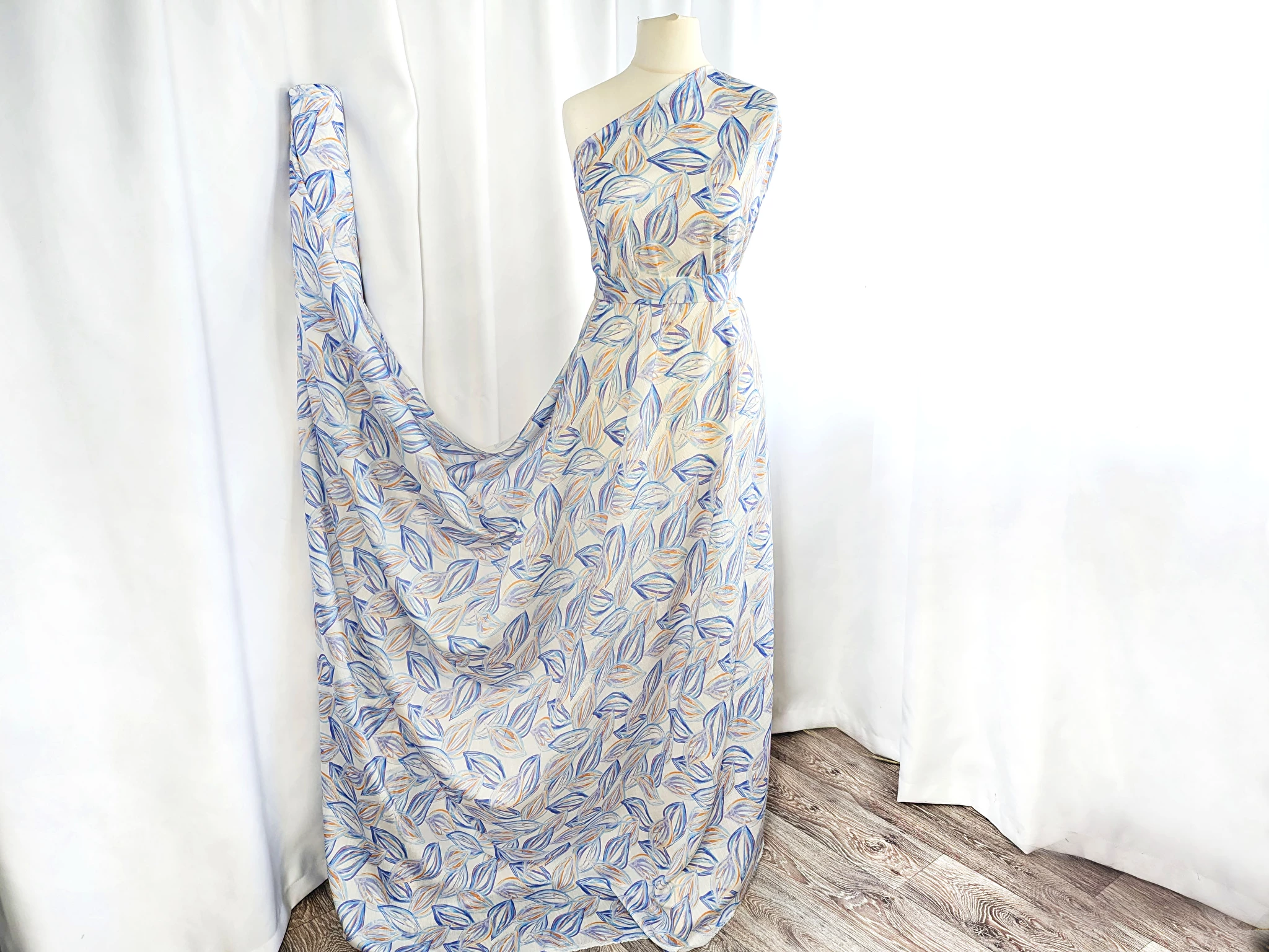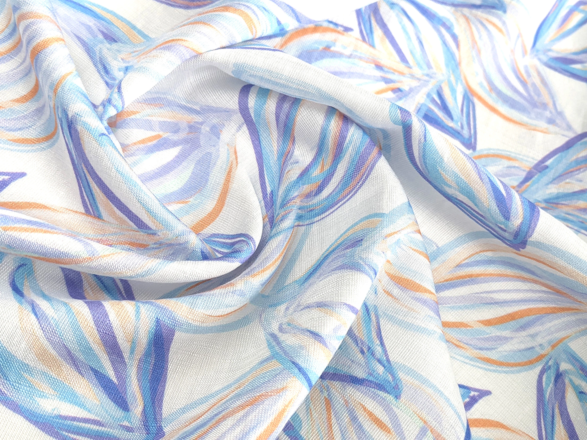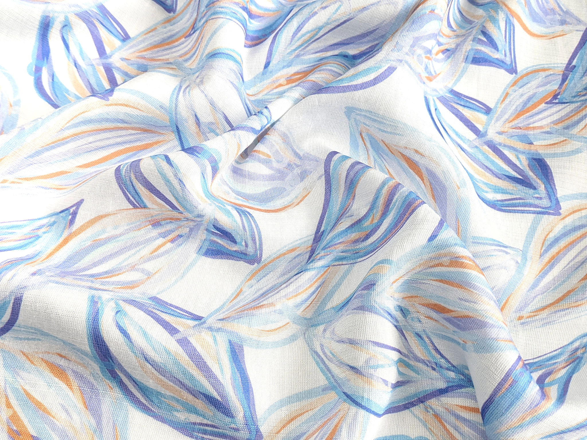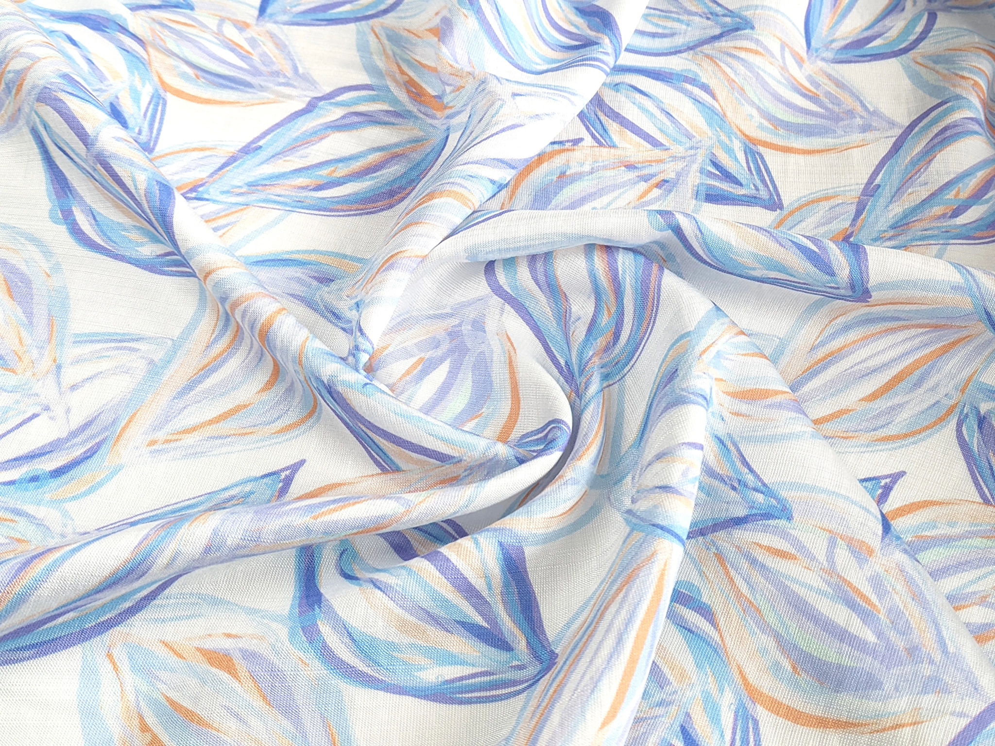 Шовк віскоза листяна казка, блакитний з бузковим