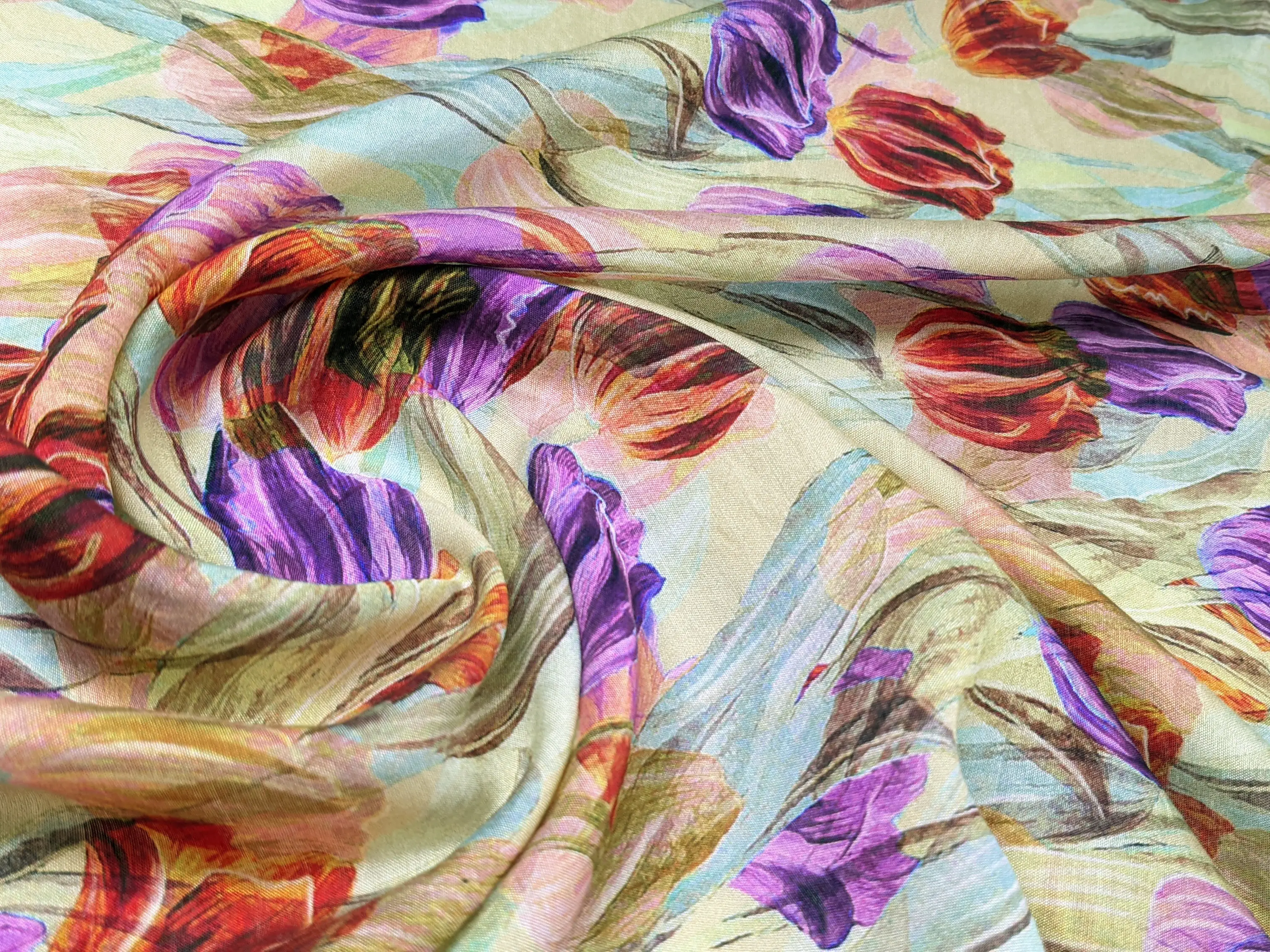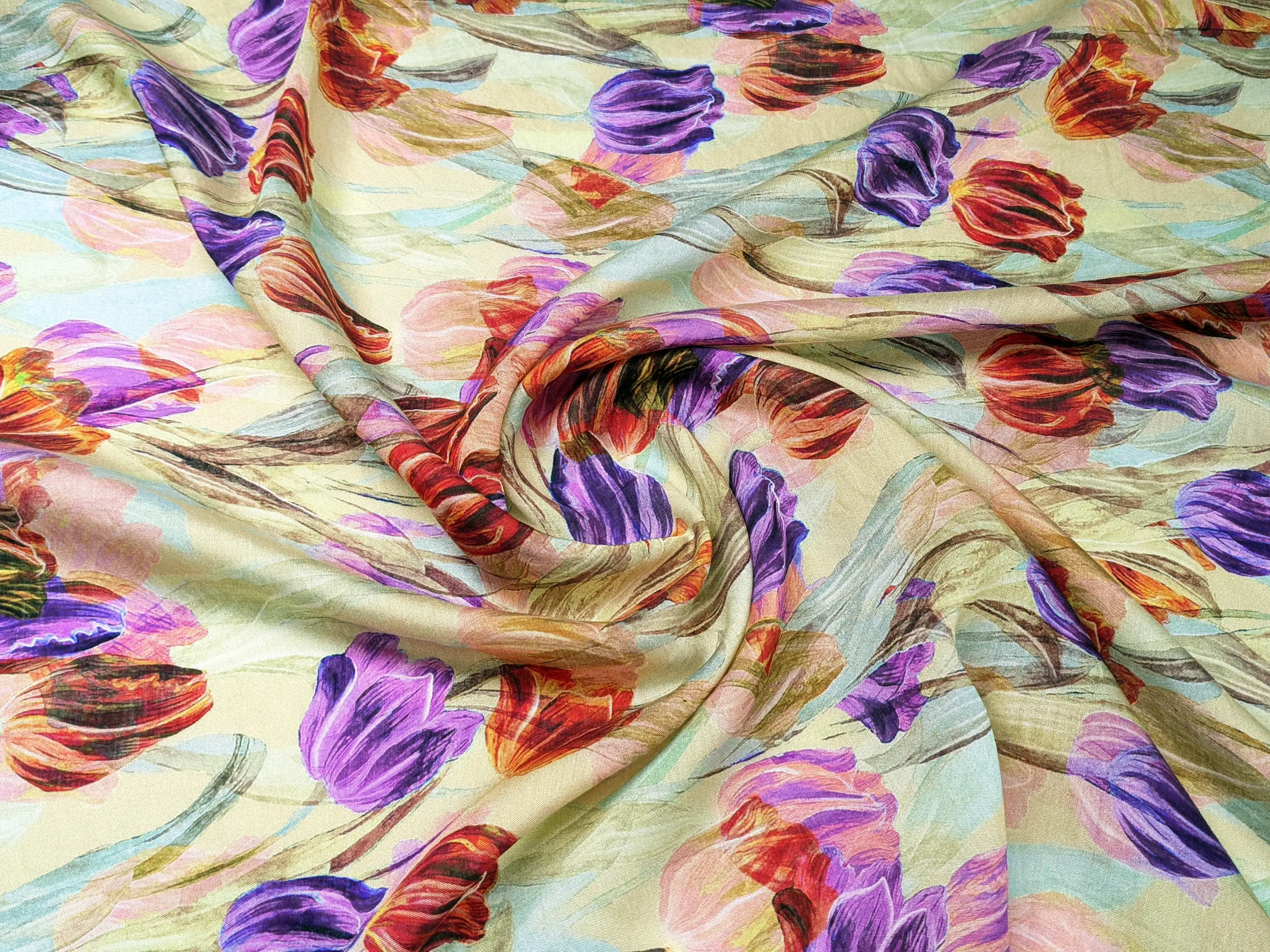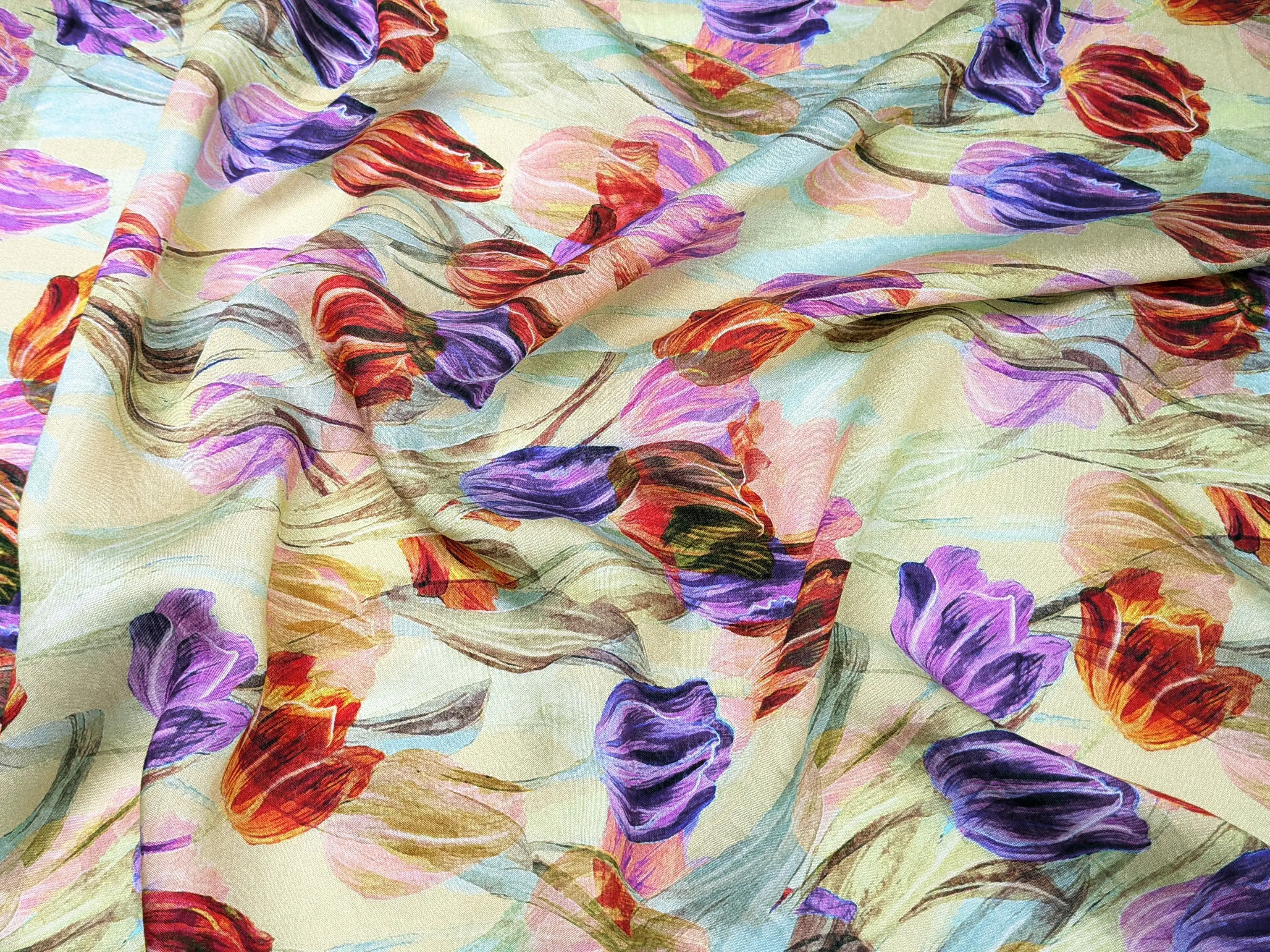 Шовк віскоза тюльпани, блідо-салатовий