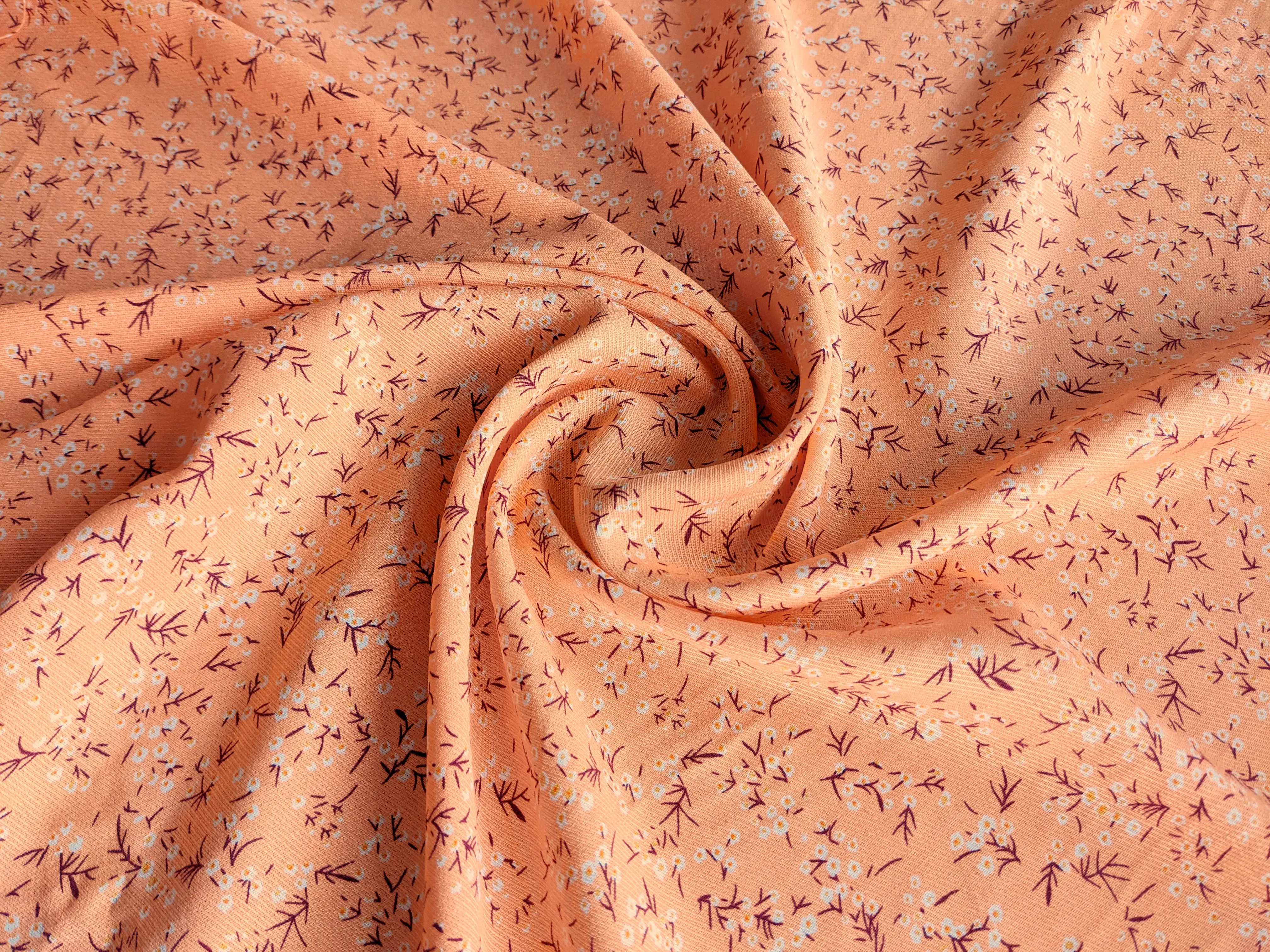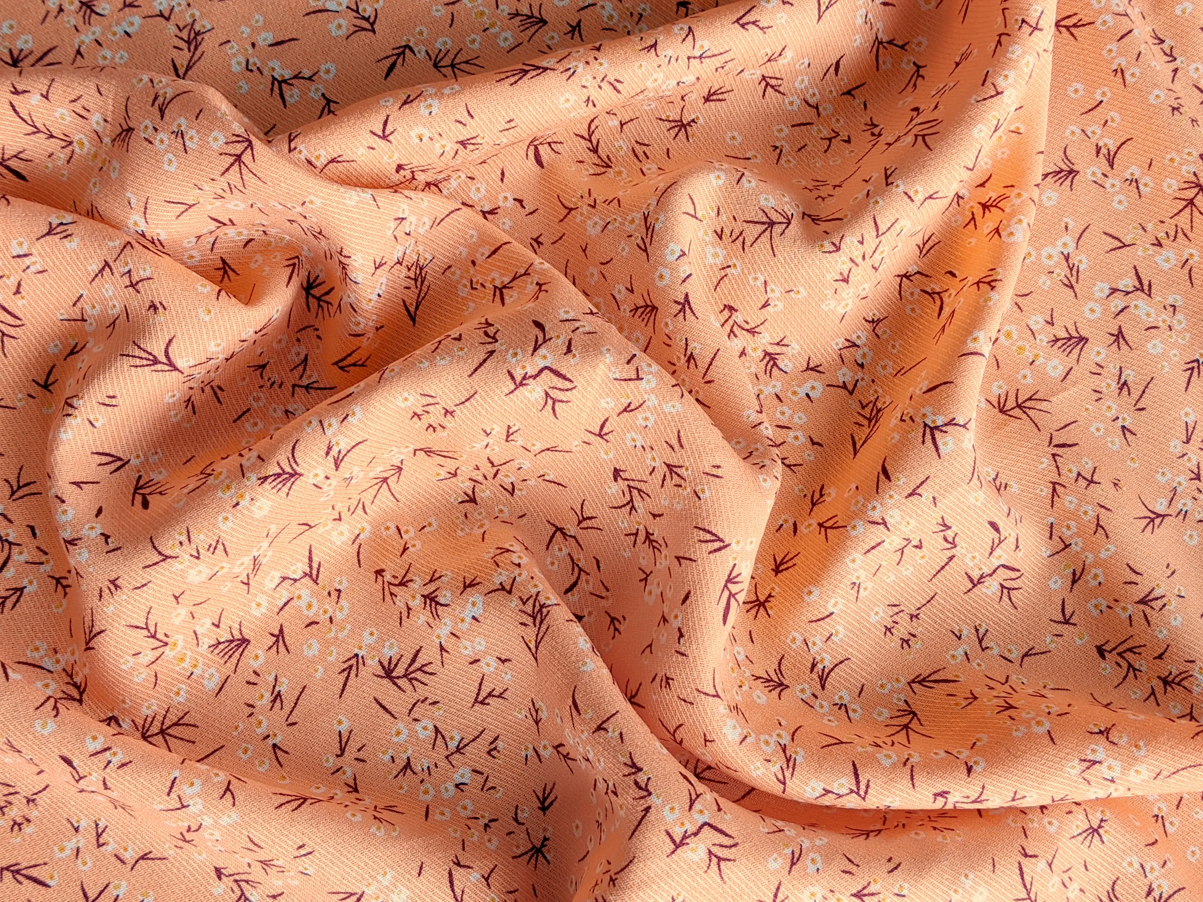 Штапель Бельмондо дрібні квіточки, абрикосовий (відріз 1,5 м)