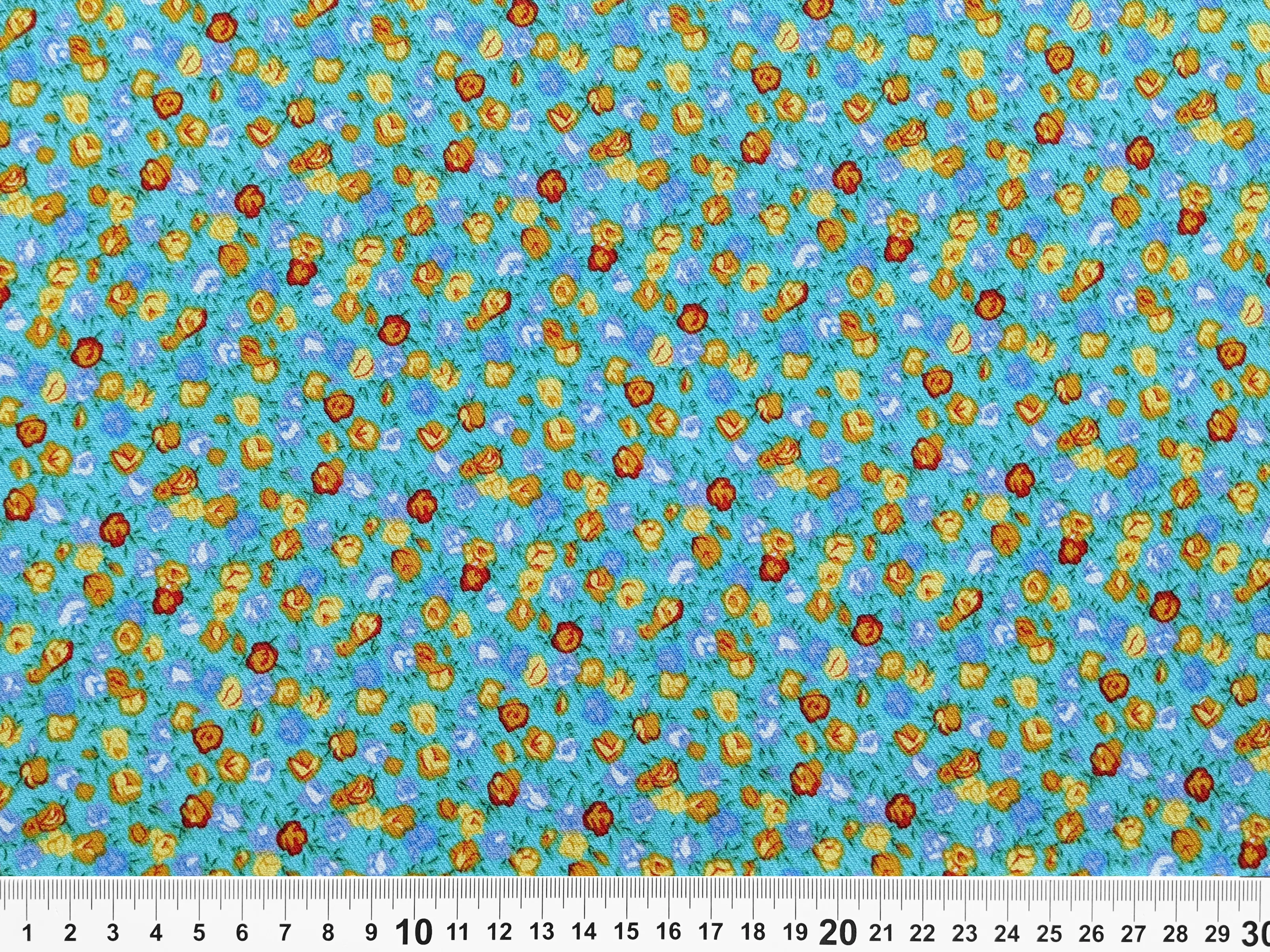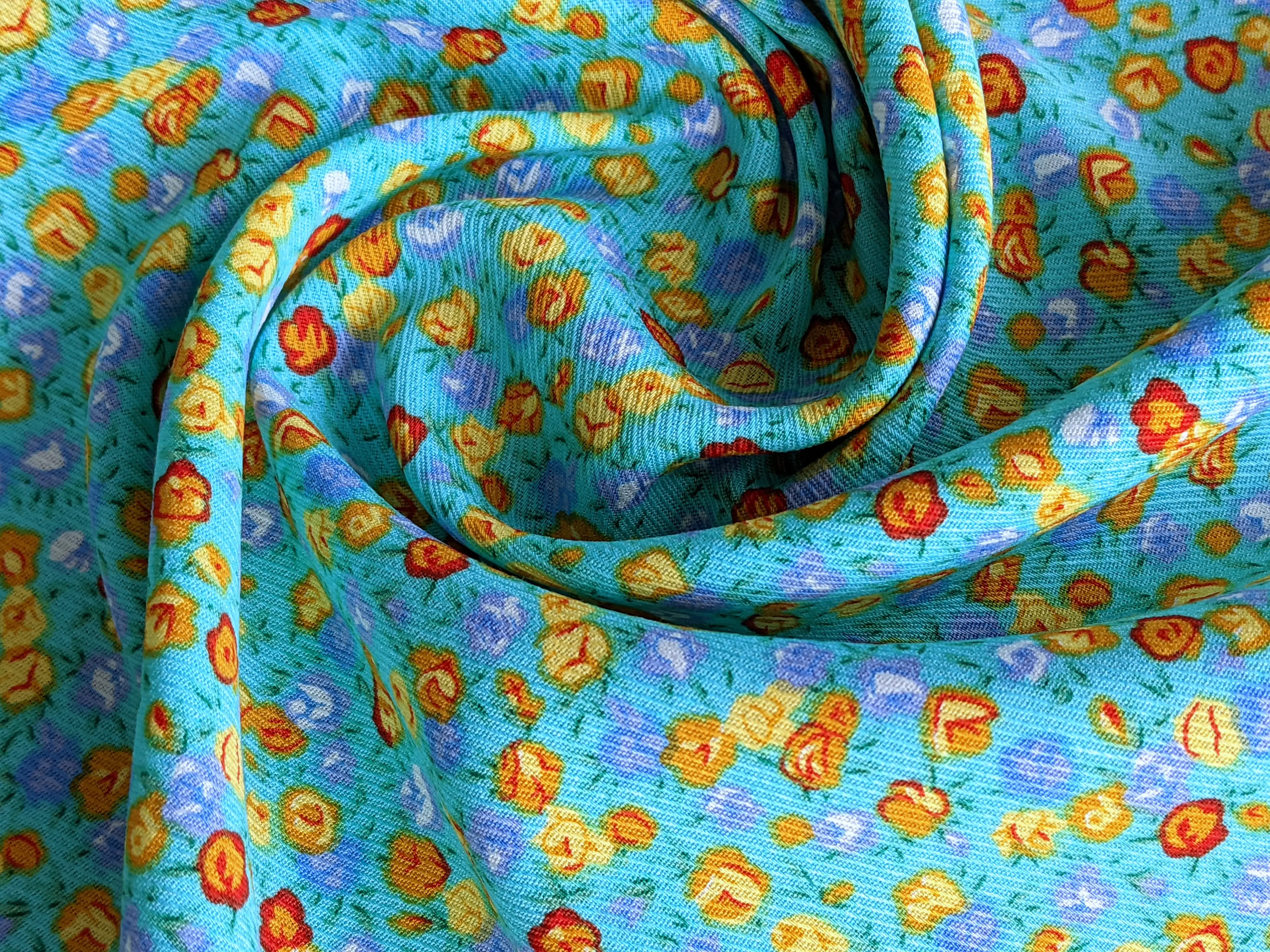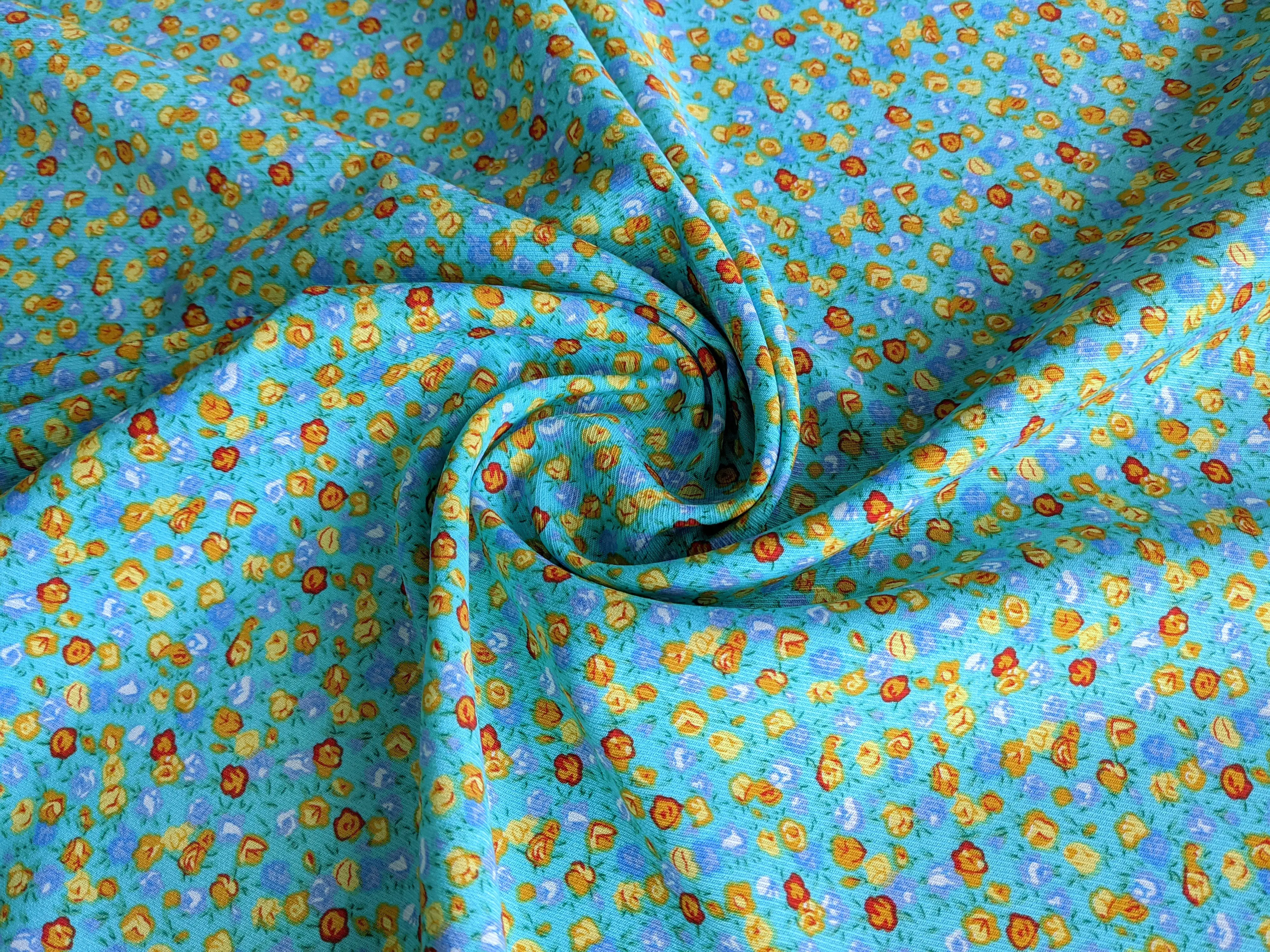 Штапель Бельмондо дрібні троянди, бірюзовий (відріз 0,7 м)