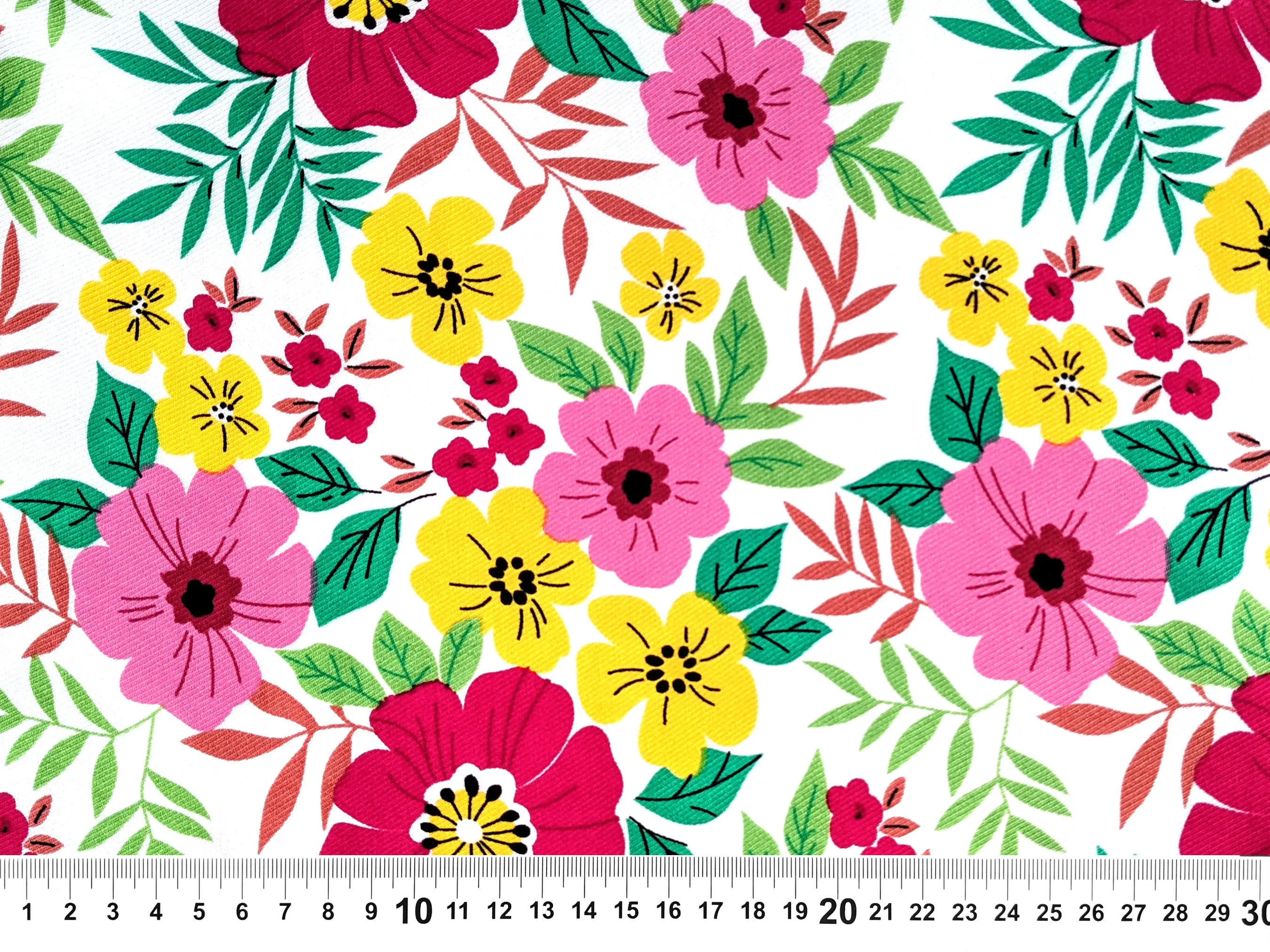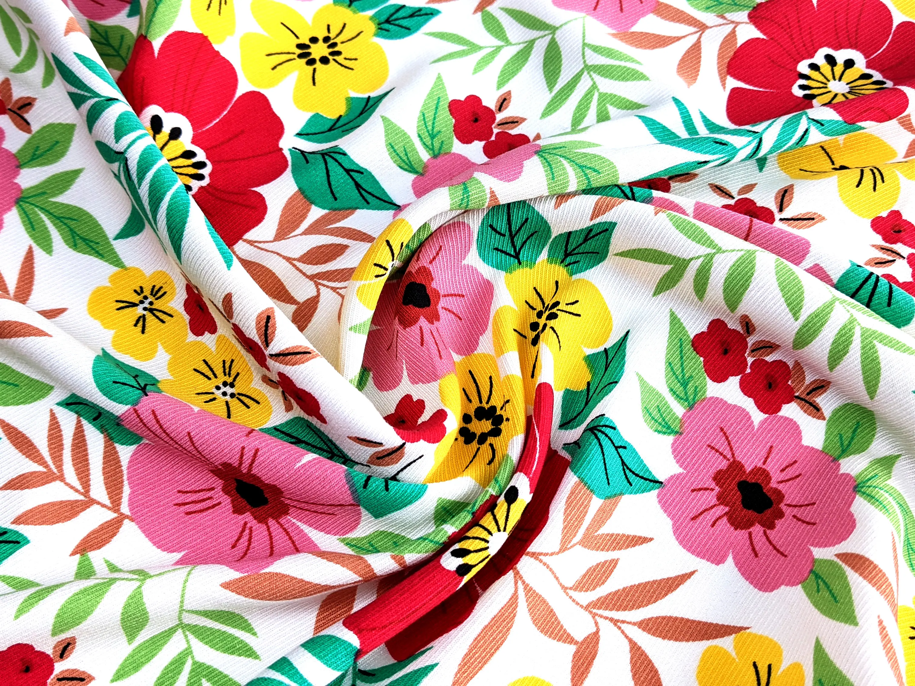 Штапель Бельмондо яскраві квіти, молочний (відріз 1 м)