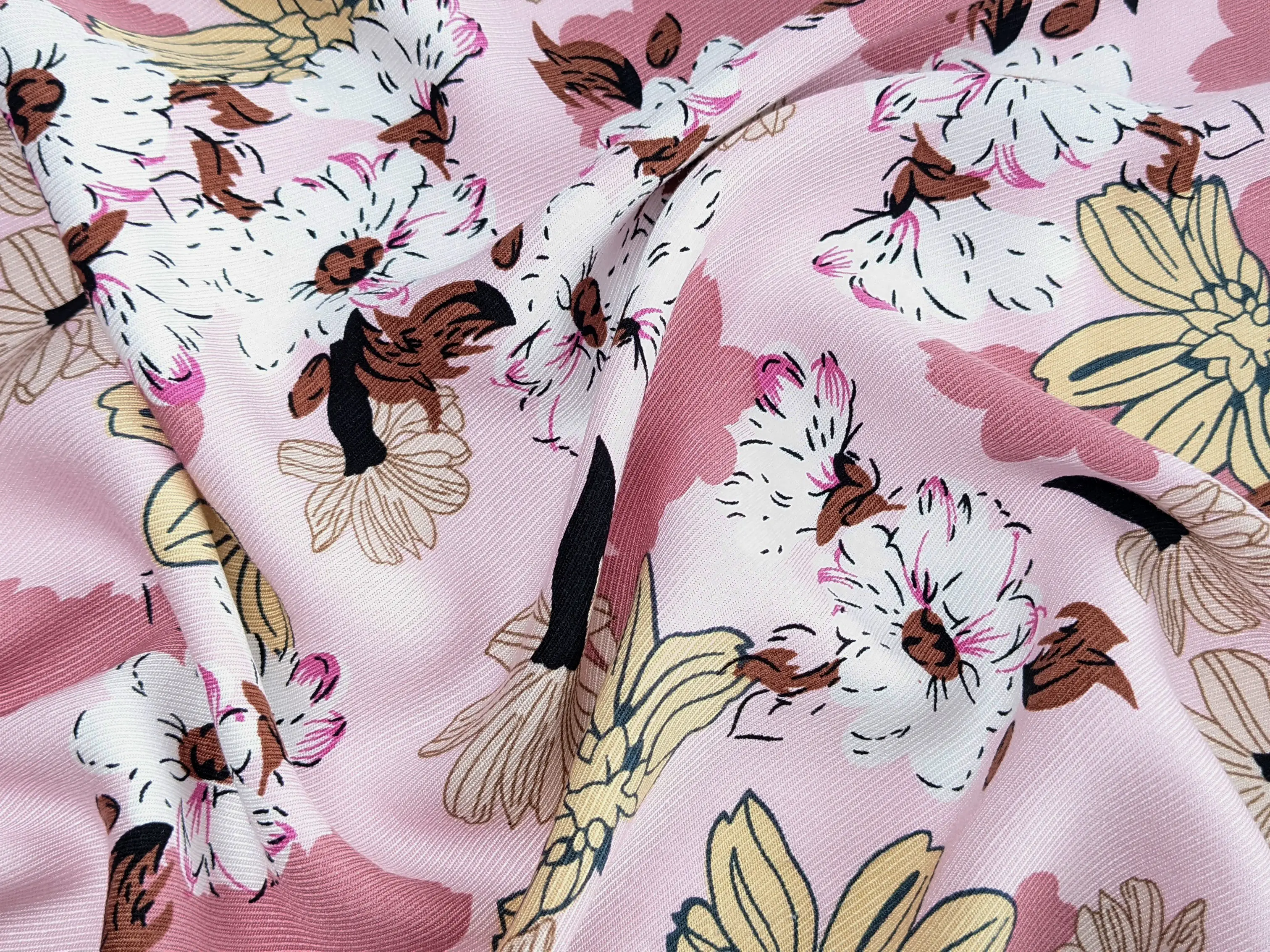 Штапель Бельмондо квіткова казка, блідо-рожевий (відріз 0,8 м)