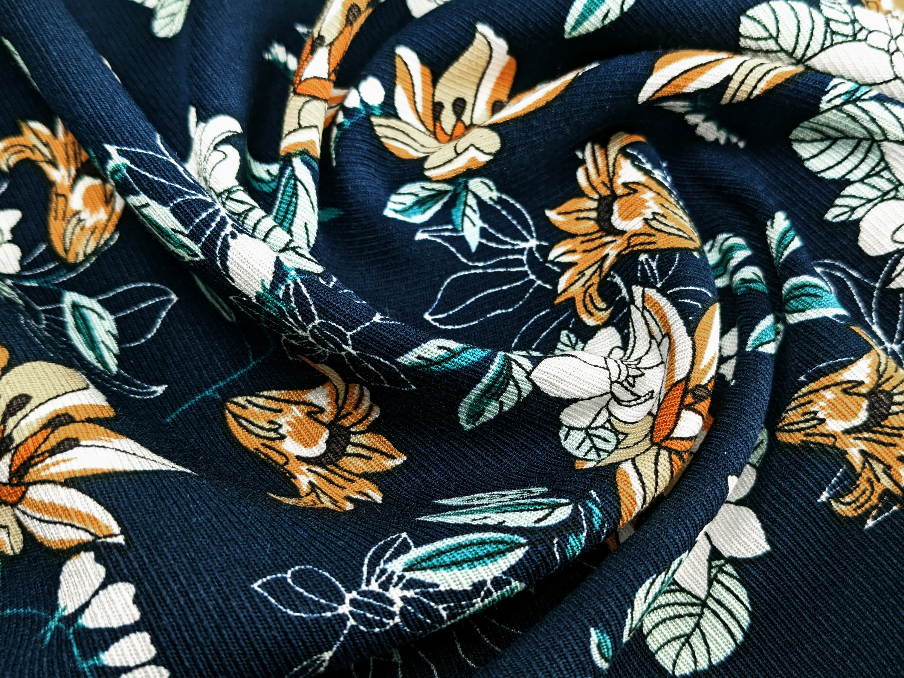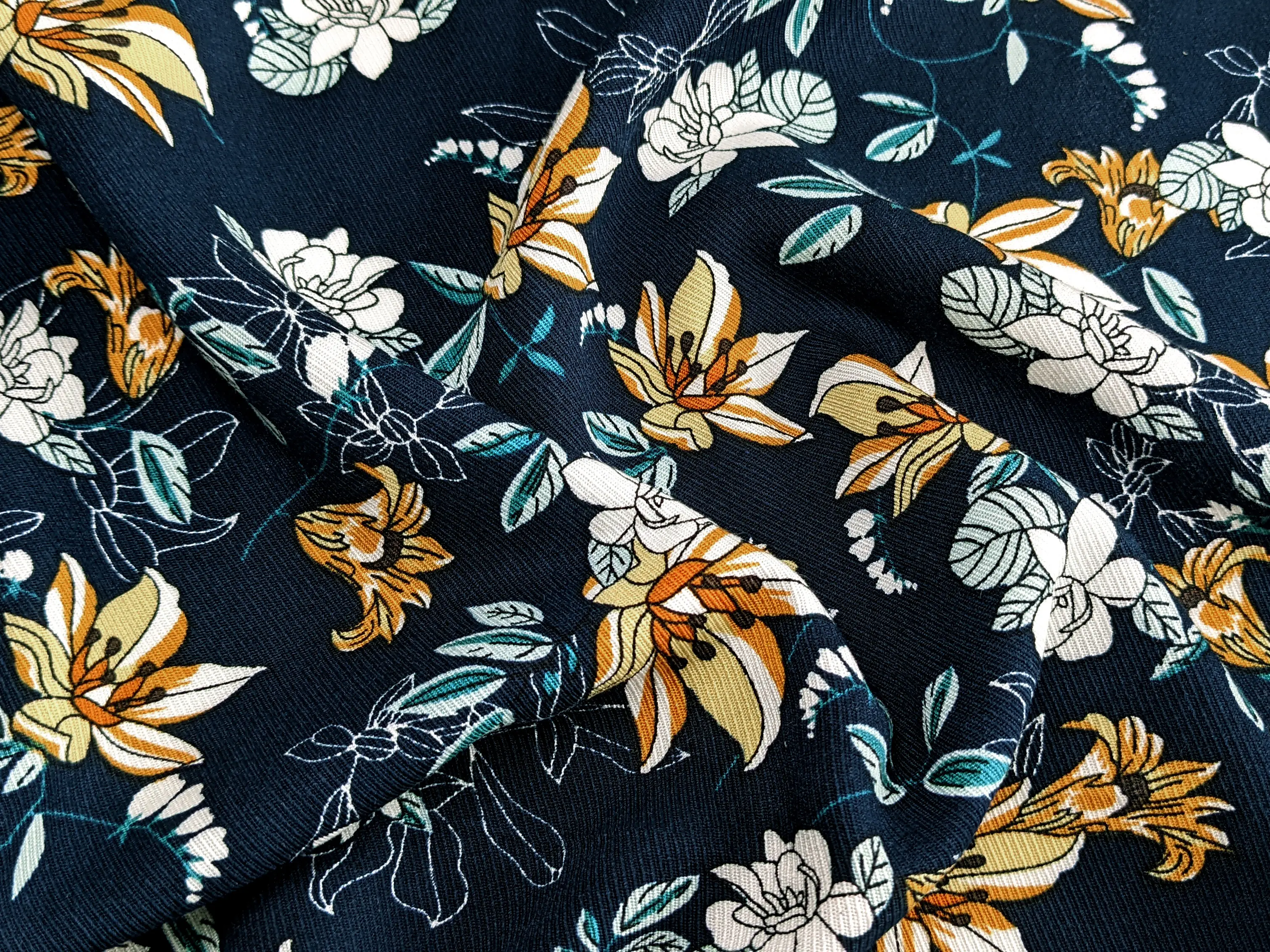 Штапель Бельмондо квітковий, темно-синій (відріз 1,7 м)