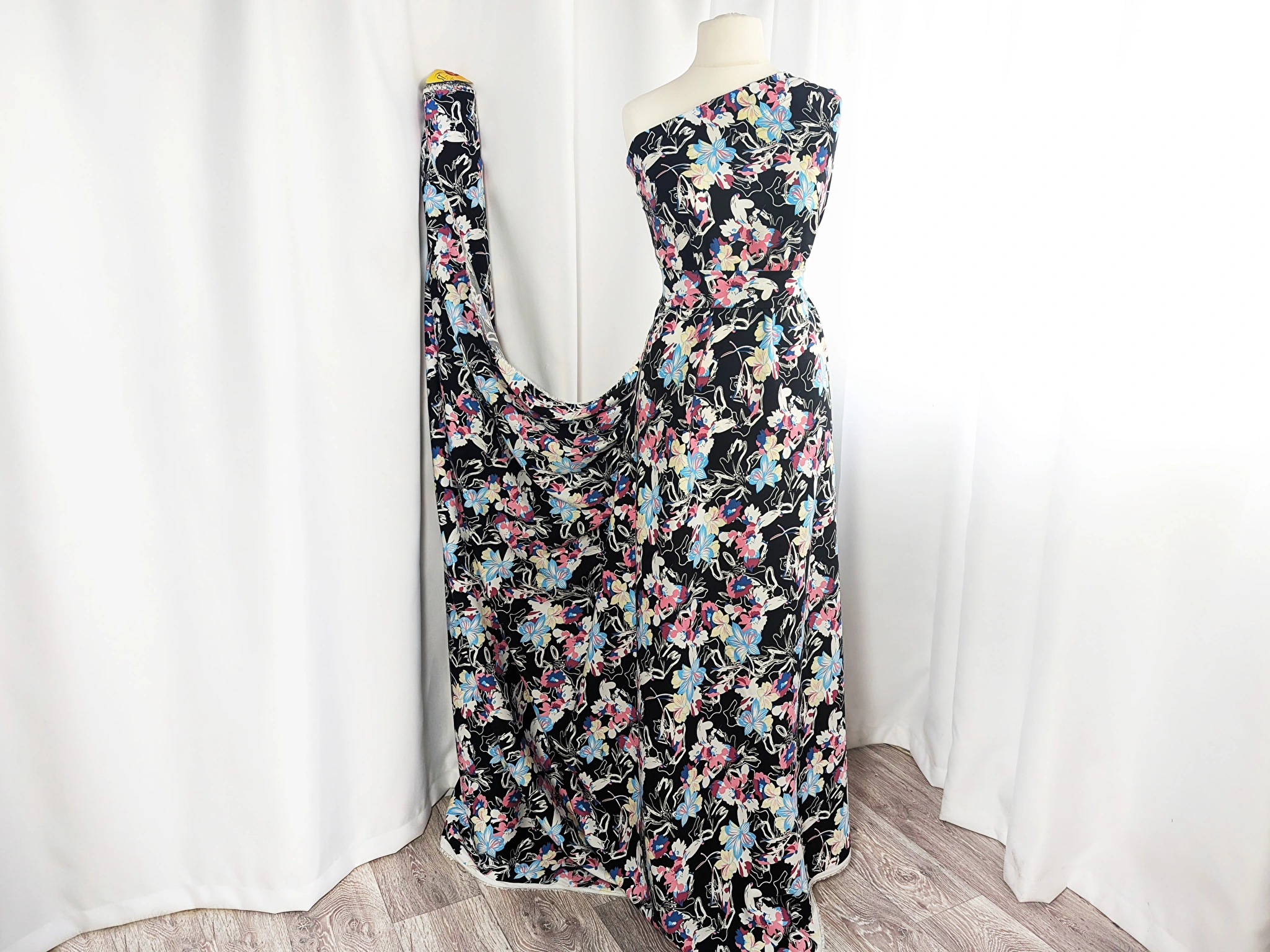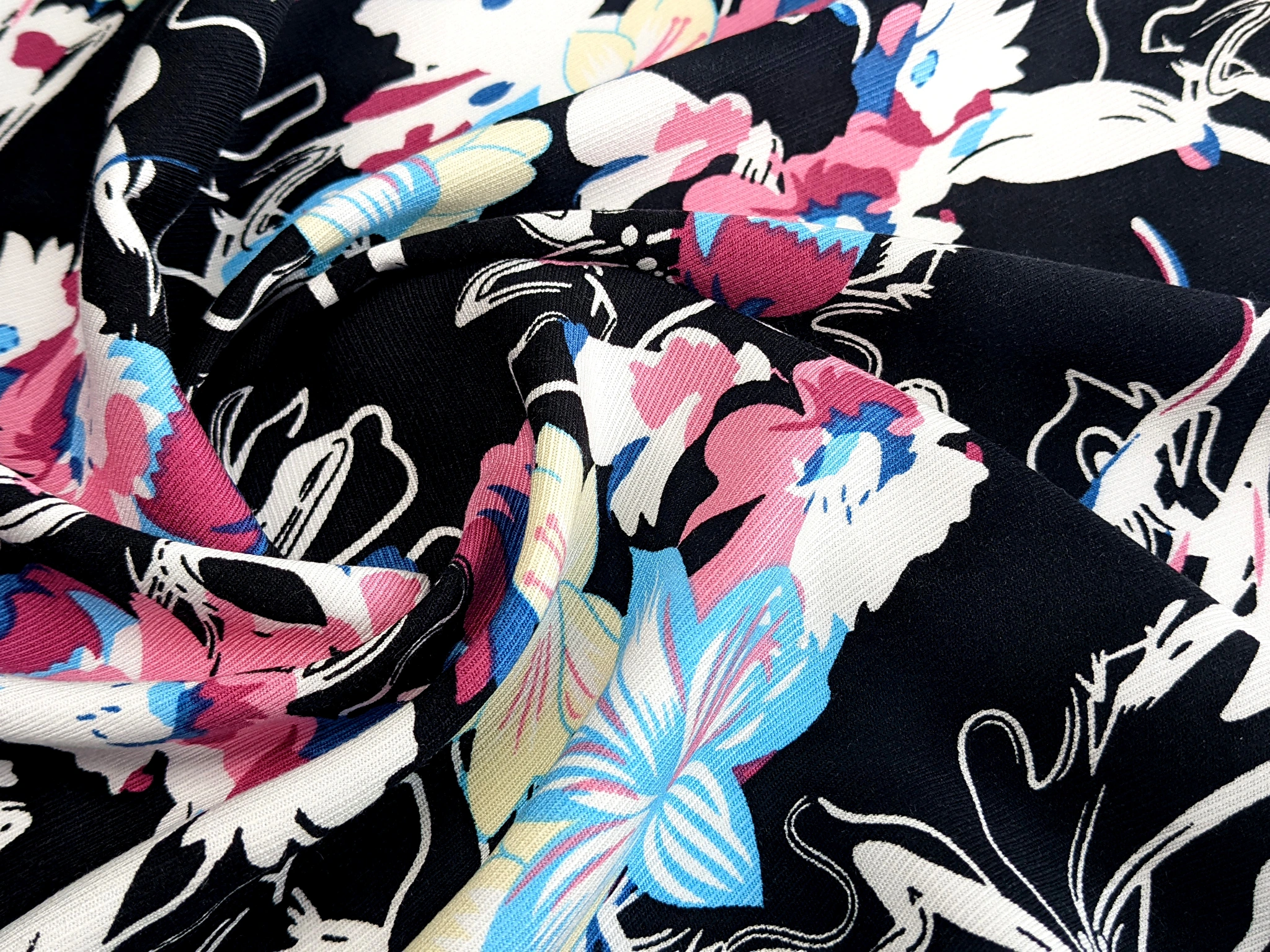 На відміну від штапеля класичного полотно має більш щільну структуру, завдяки якій відмінно підходить для пошиття комбінезонів, суконь і блуз.