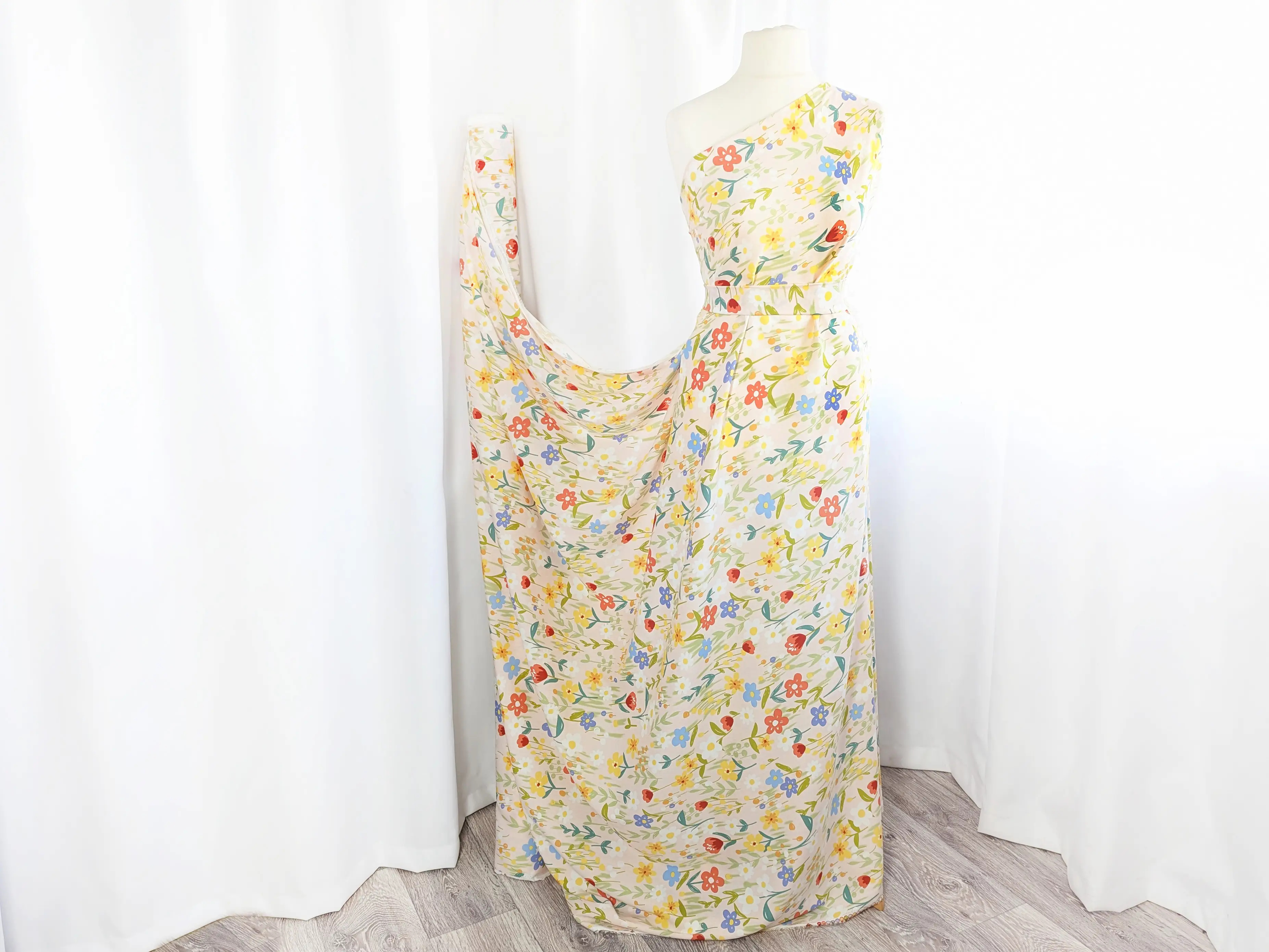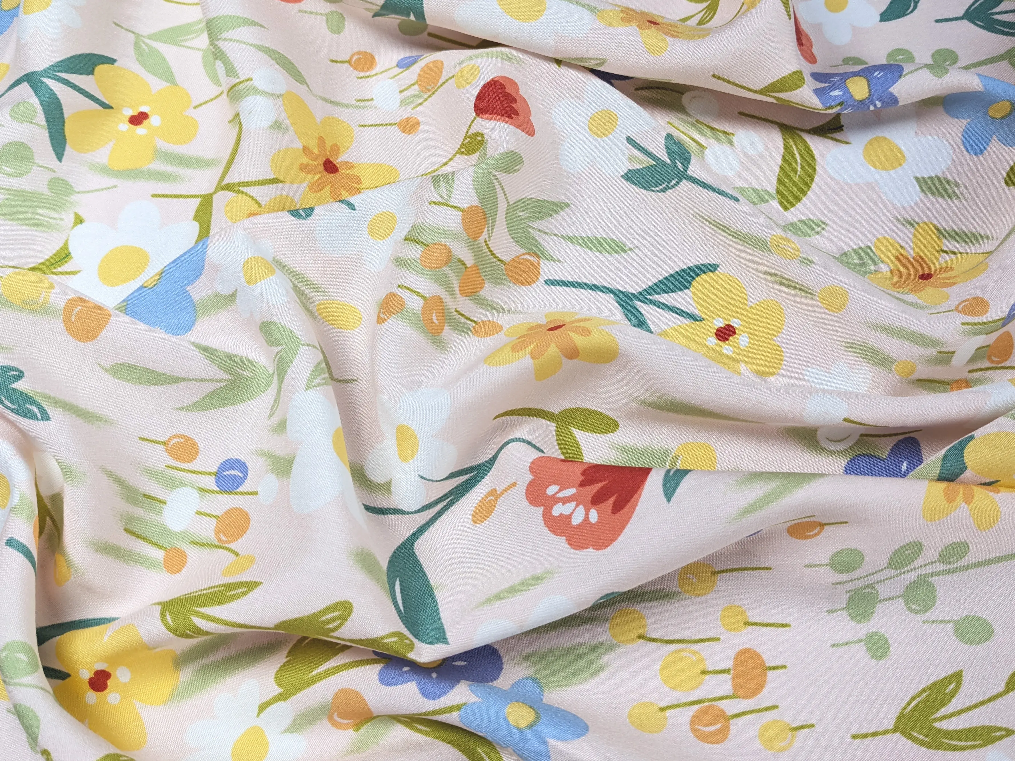 Штапель квіткова поляна, ніжна пудра (відріз 1,9 м)