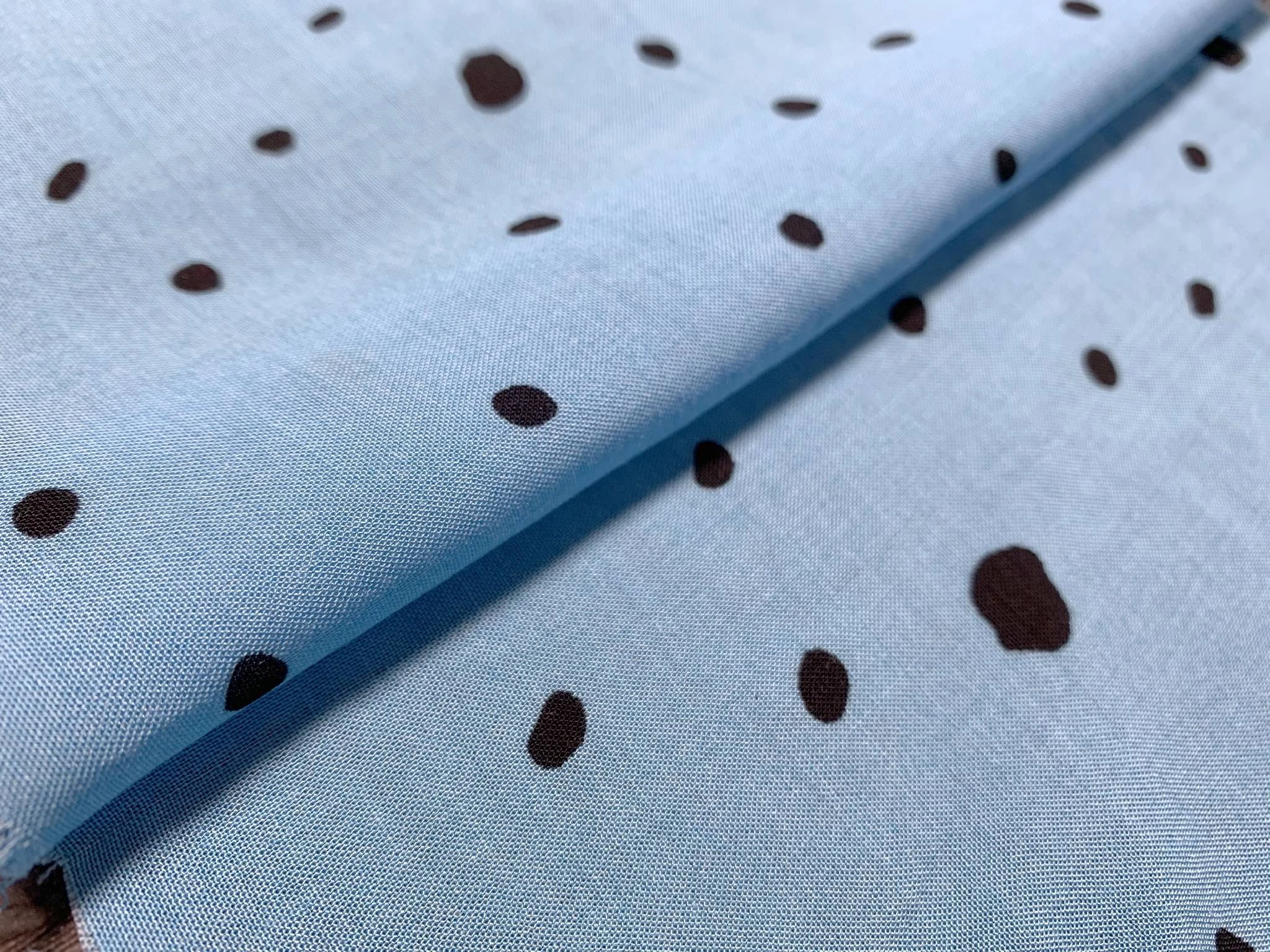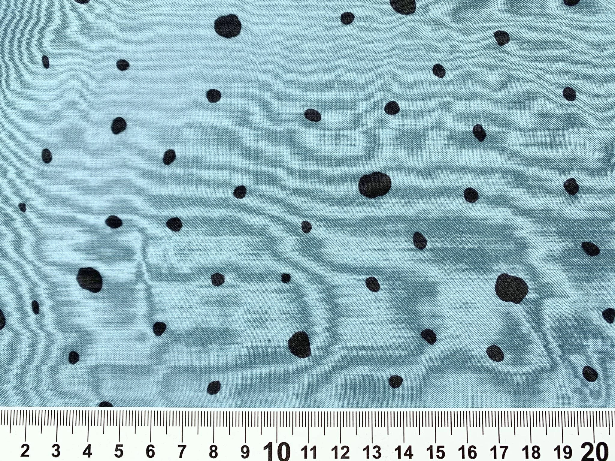 Штапель неравномерные горошки, черные на голубом (ш22, 1910108, 639 цв6)