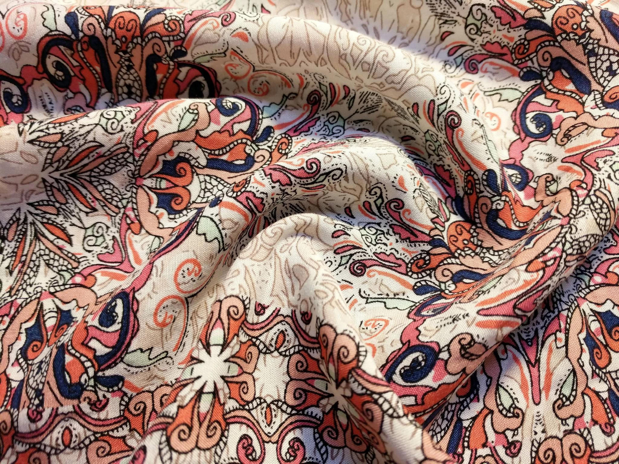 Штапель рисунок геометрия, оранжевый на бежевом (р04, 1511089A, д3 цв1)