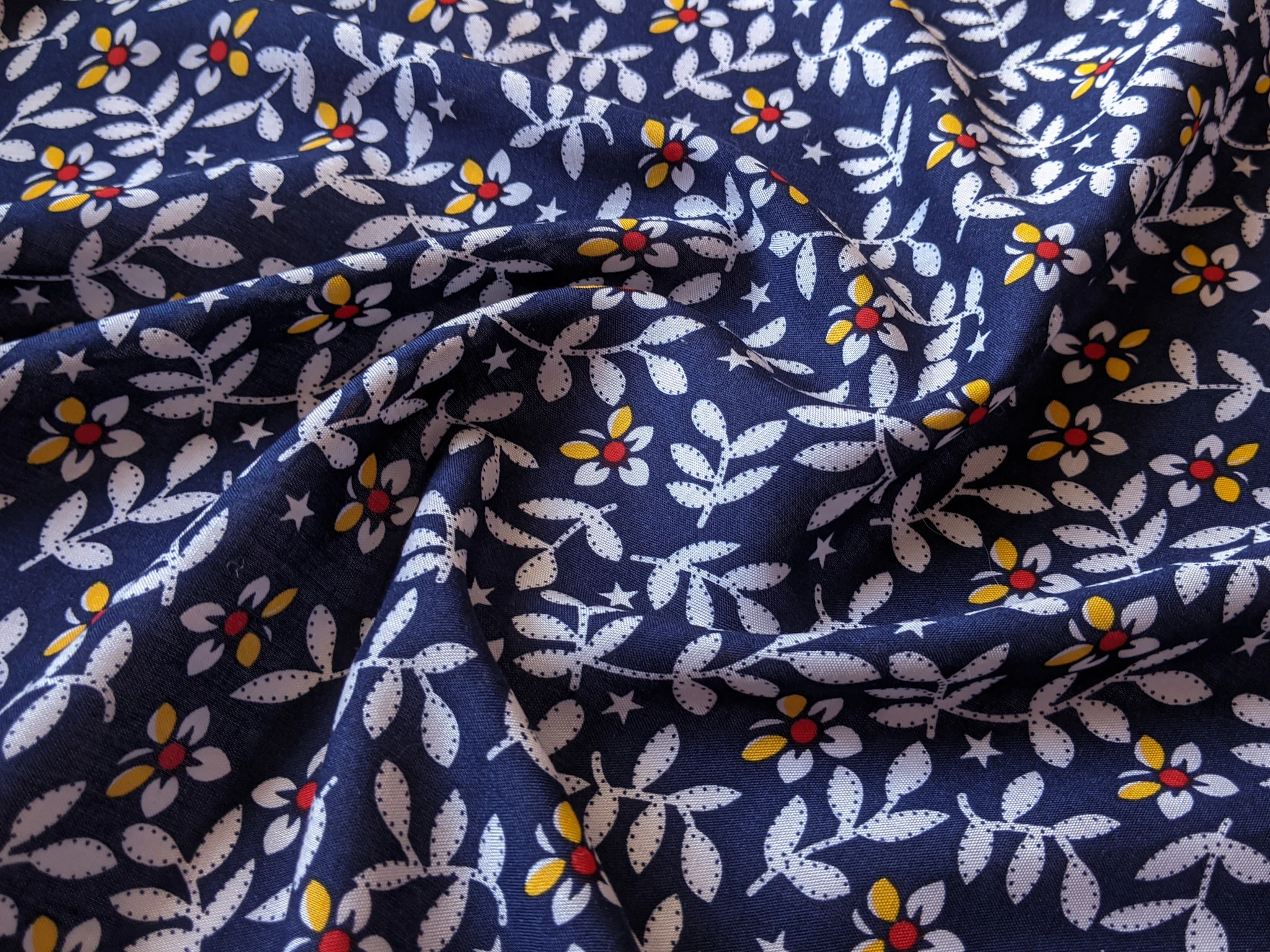 Штапель шовковистий дрібні квіточки, темно-синій (ш14, 48958, д1 тем.синий)
