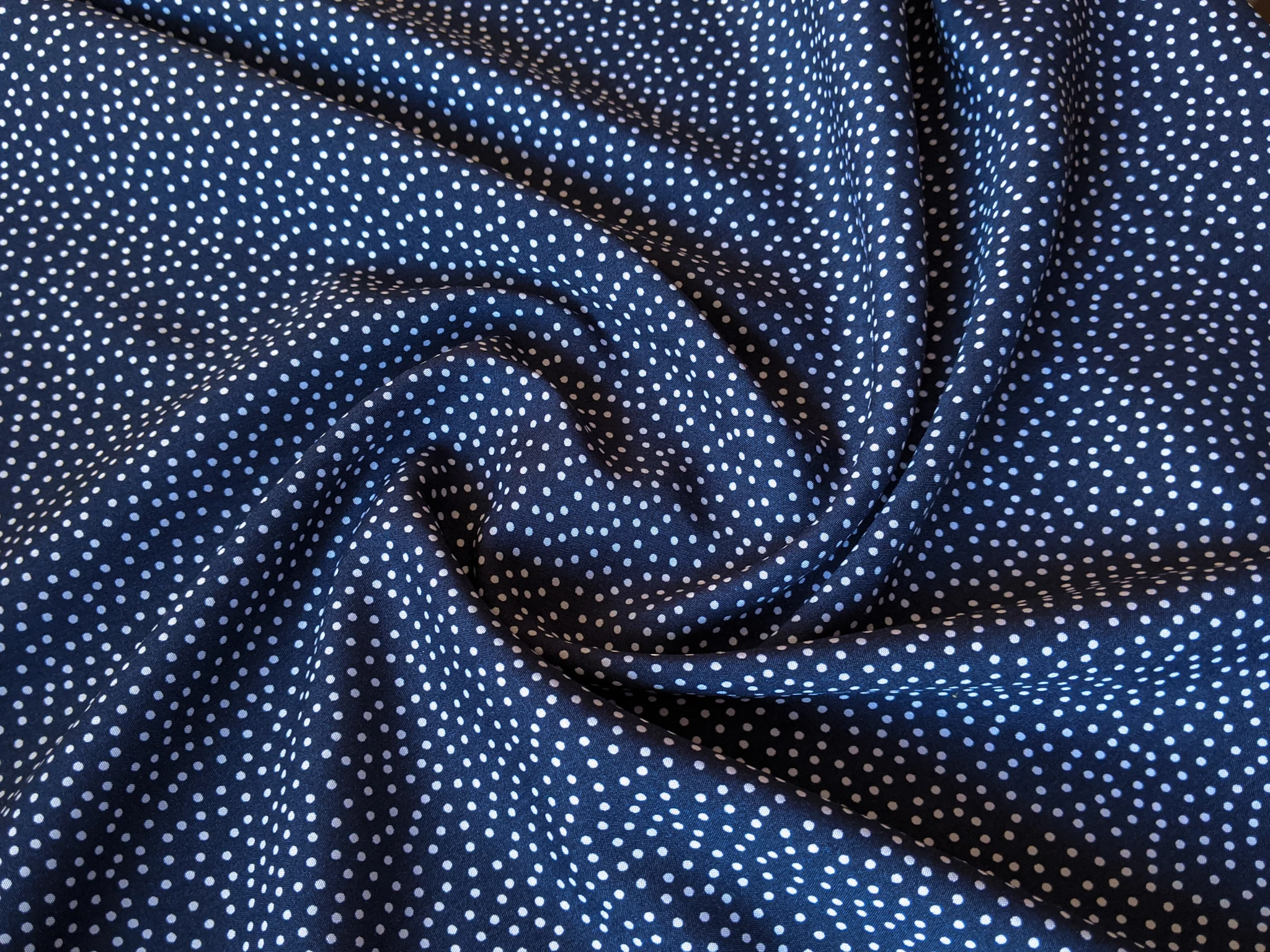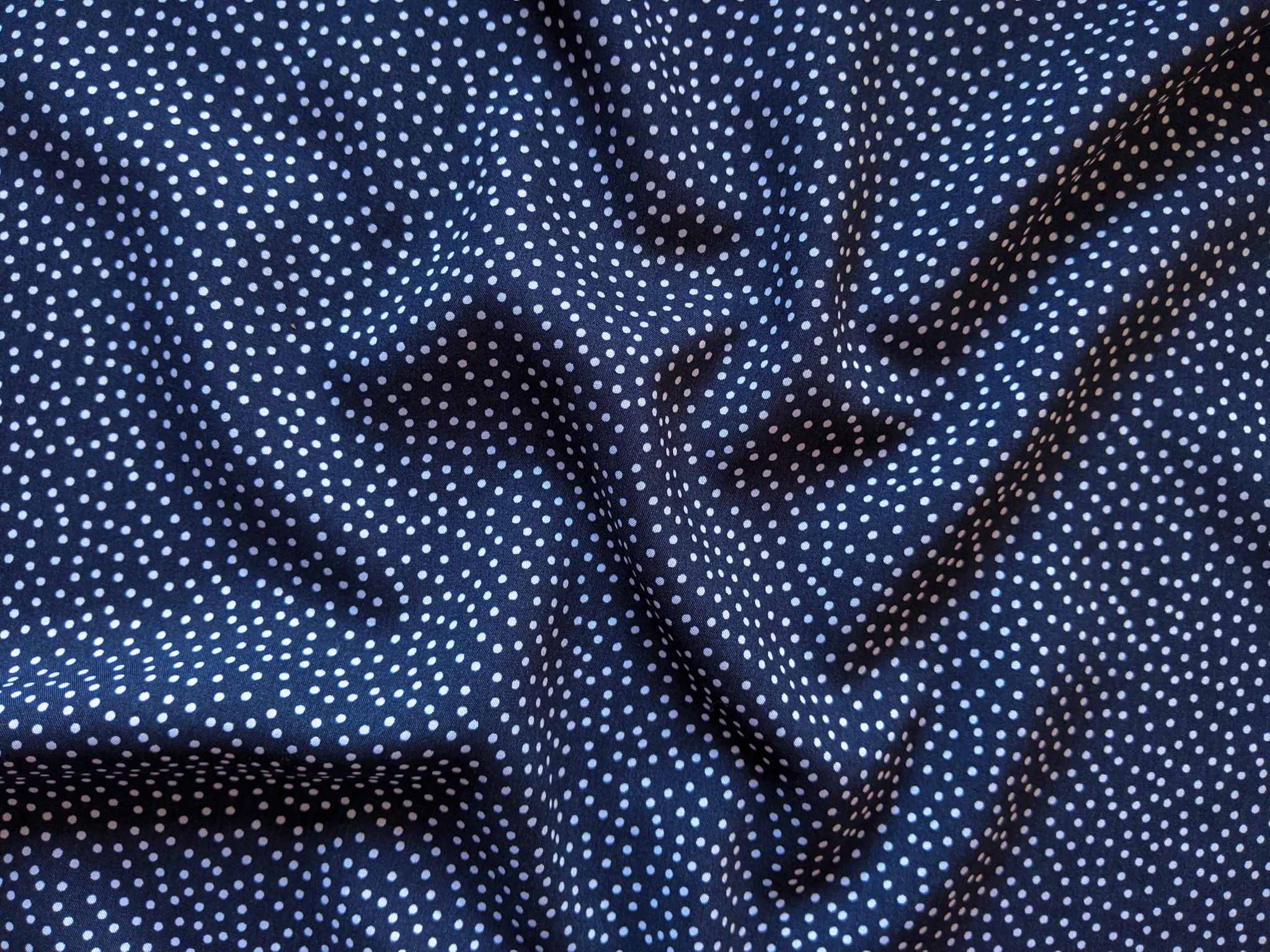 Штапель шелковистый мелкий горошек, темно-синий