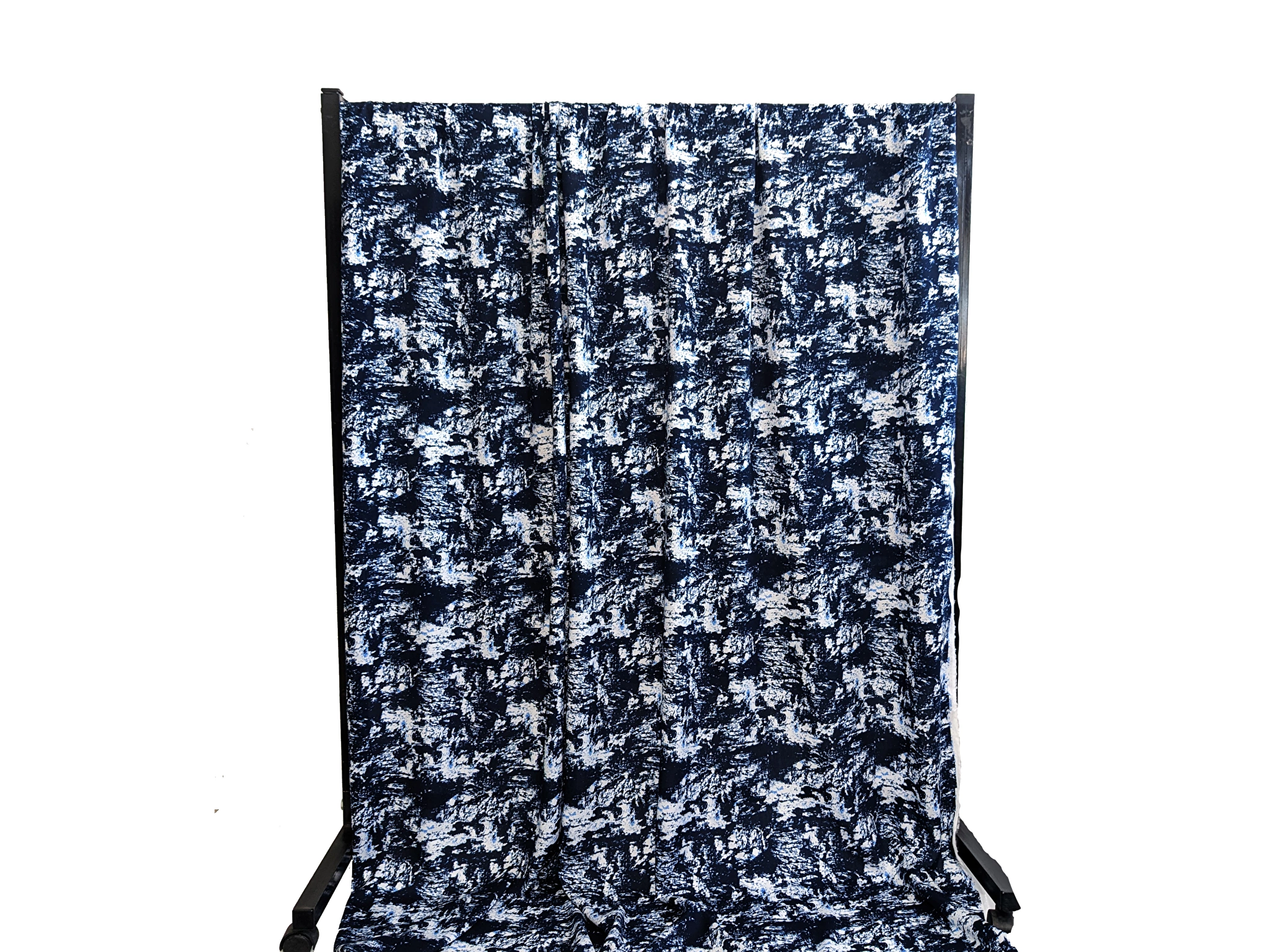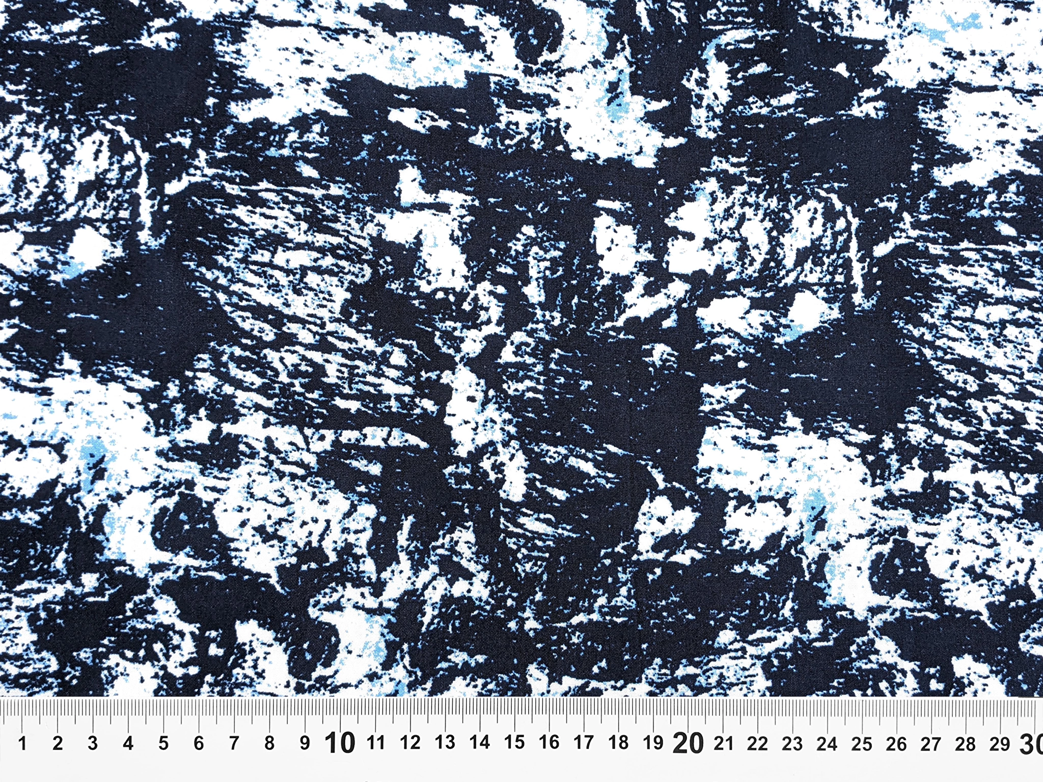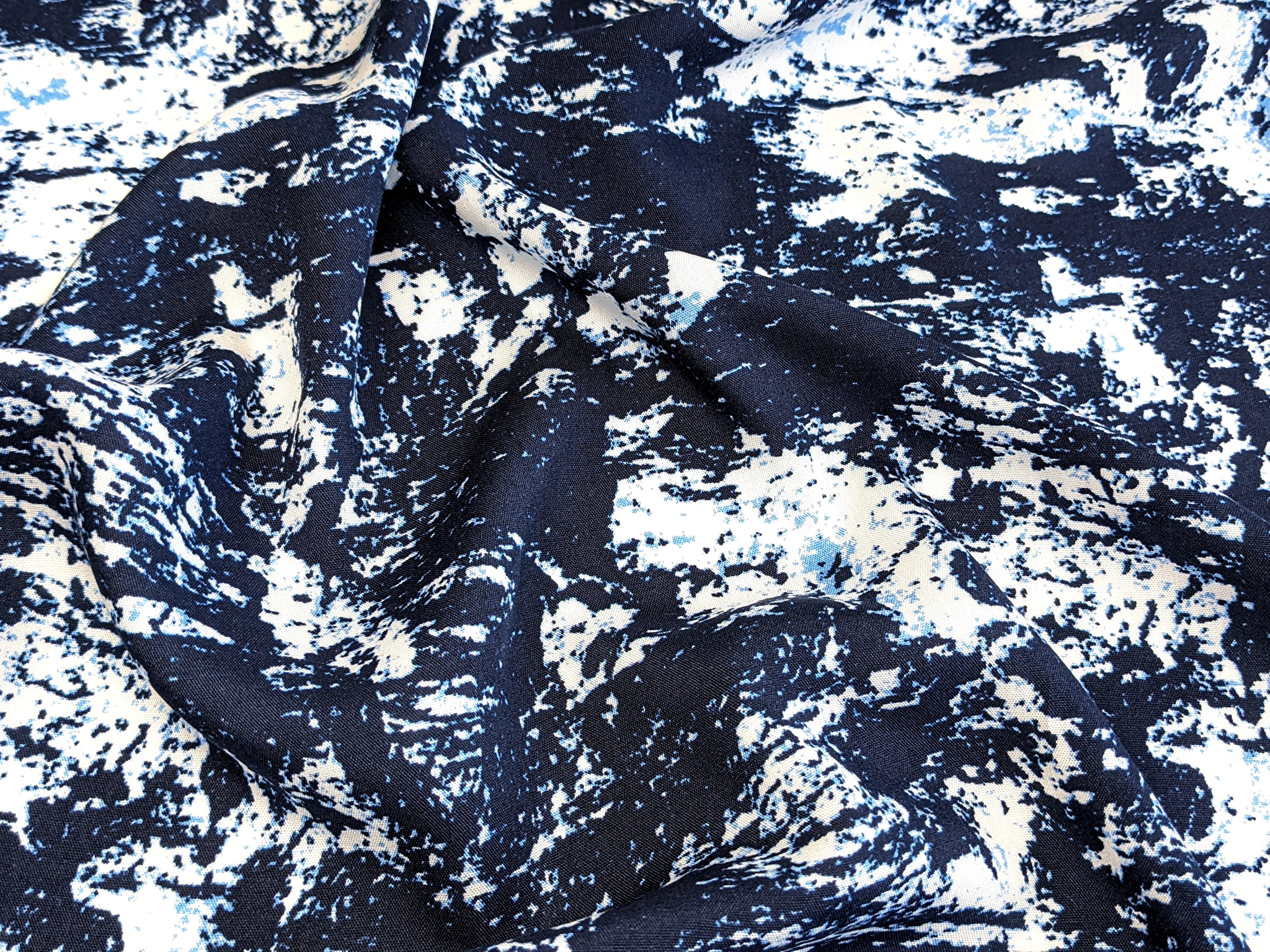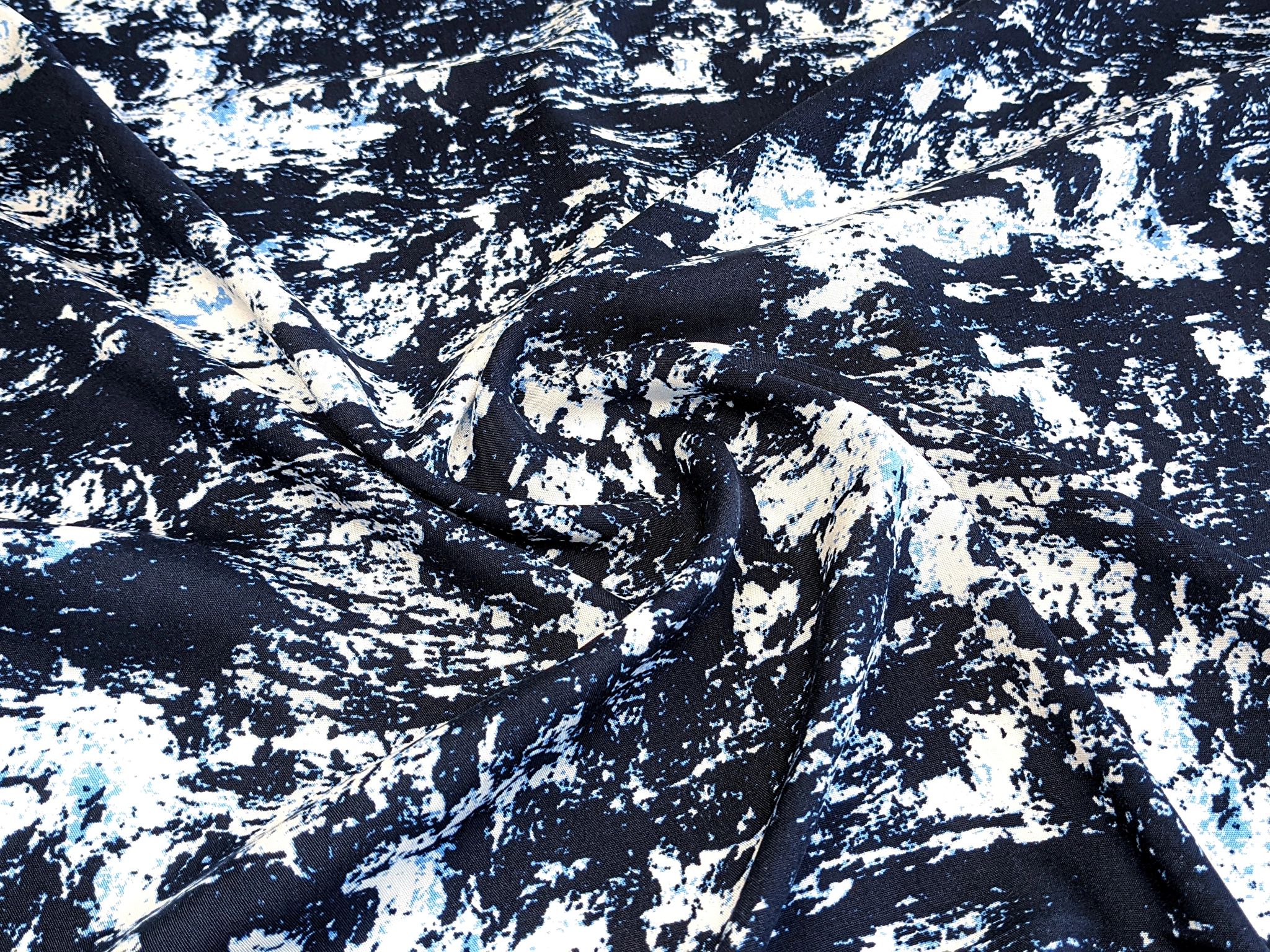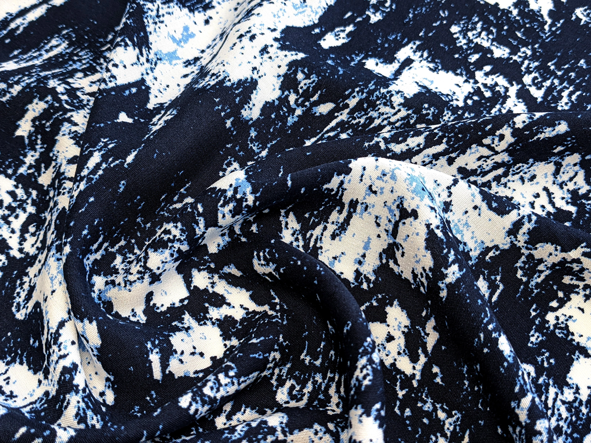 Штапель шовковистий акварель абстракції, темно-синій з білим