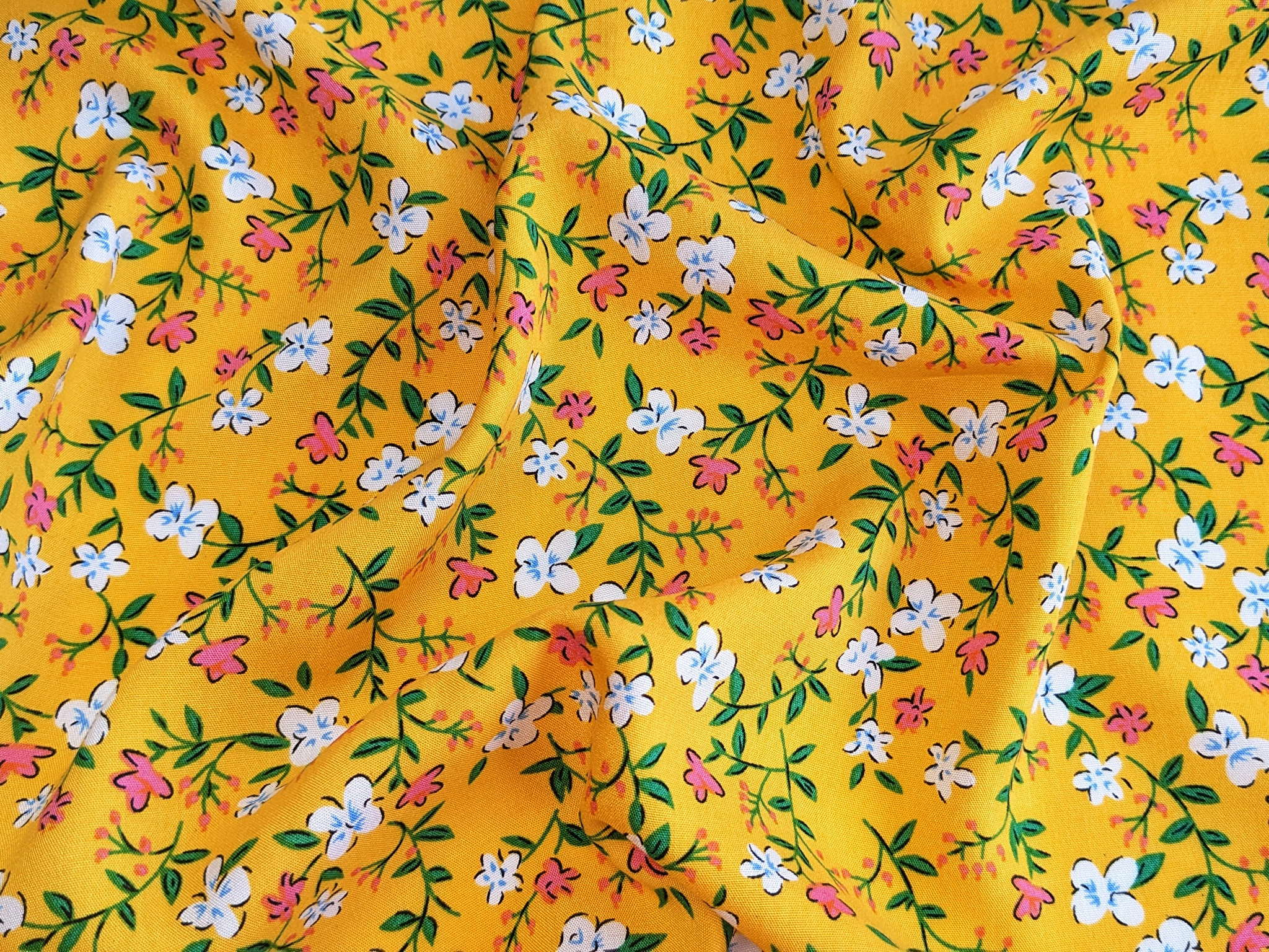 Віскозне полотно дуже легке, приємне до тіла, пропускає повітря і красиво драпірується. Добре підходить для пошиття літнього одягу. Тканина має вологопоглинаючі властивості. З штапелю можна зшити блузу, плаття, сарафан або легкий костюм на літо.
