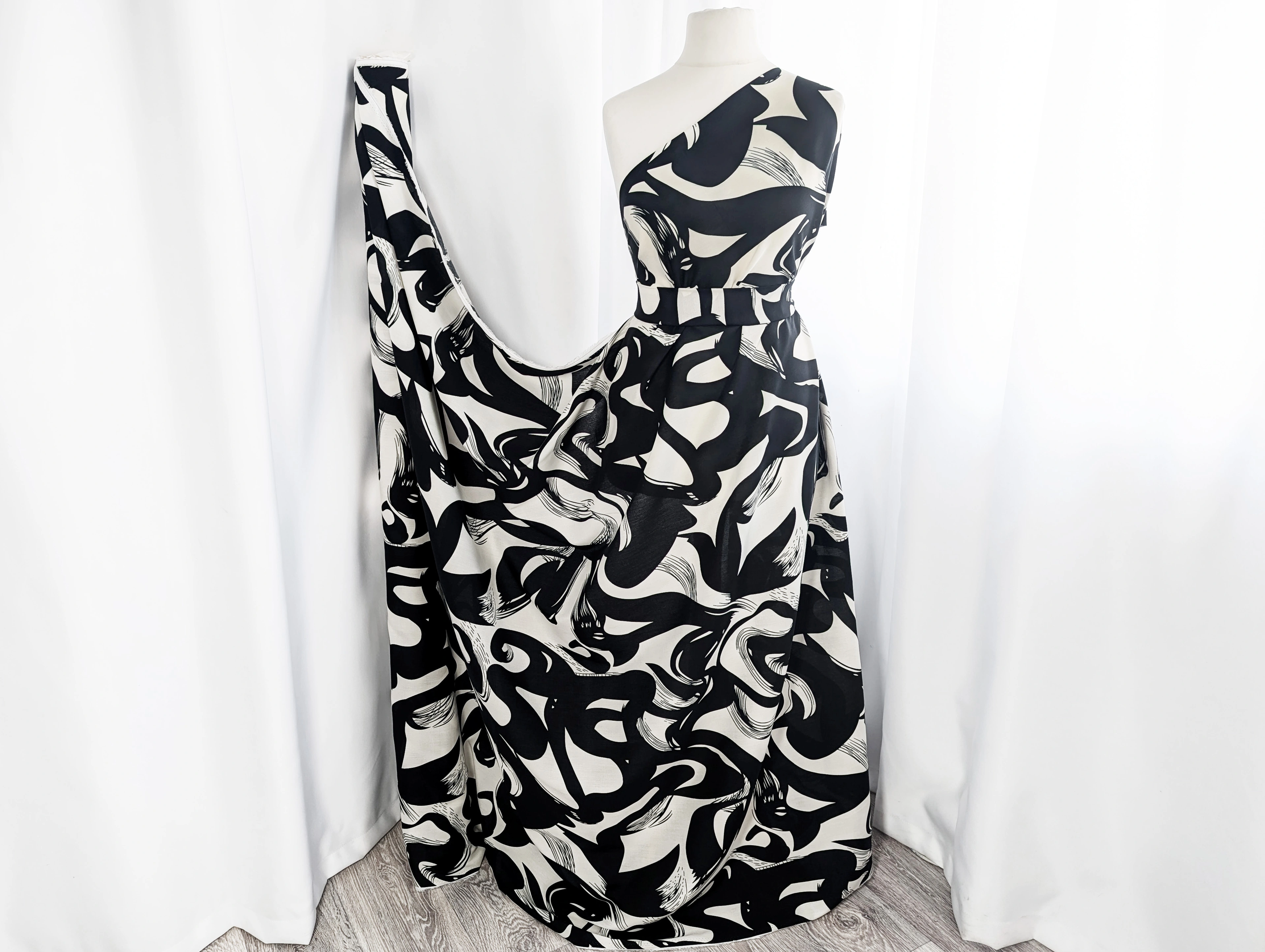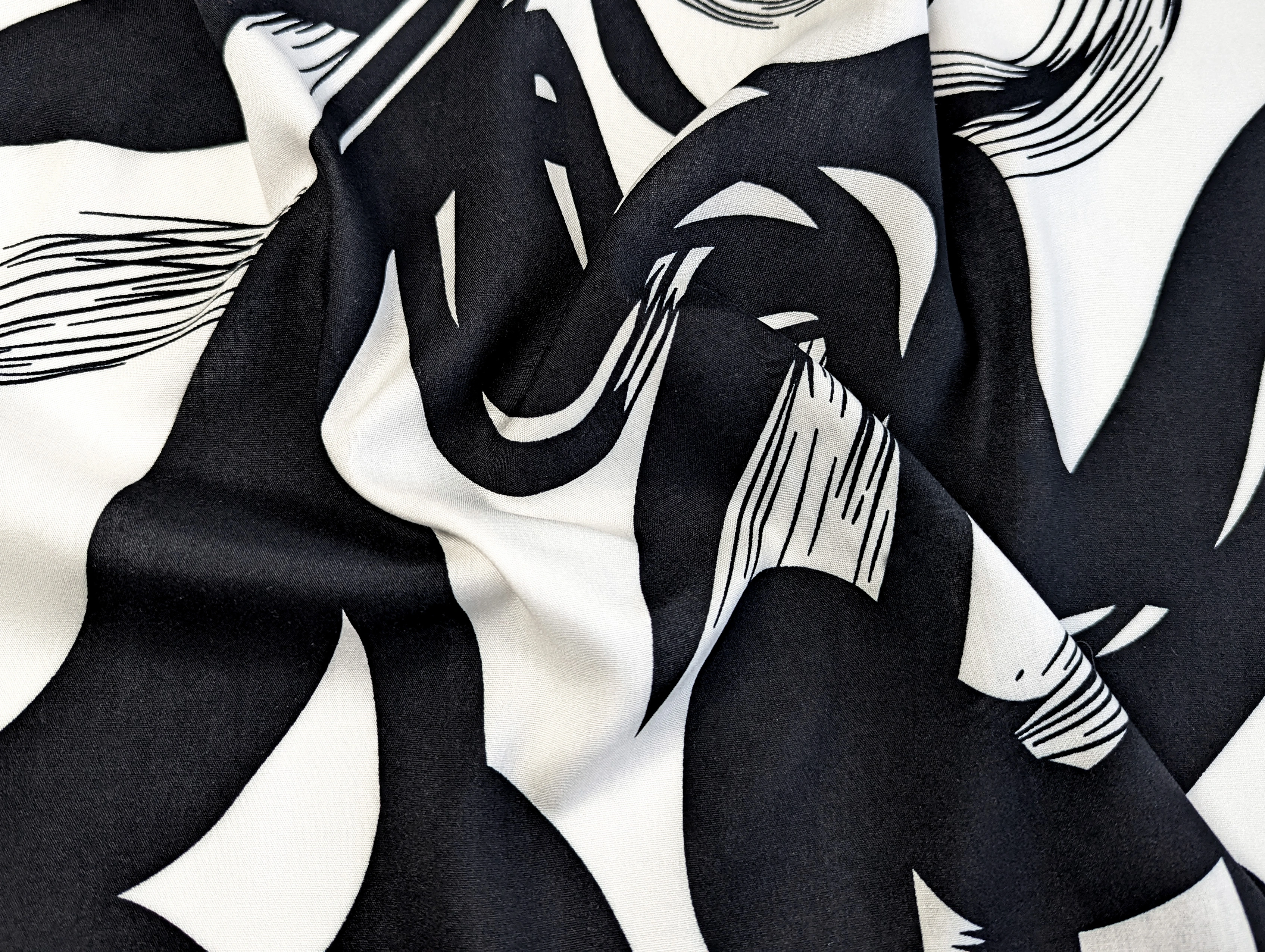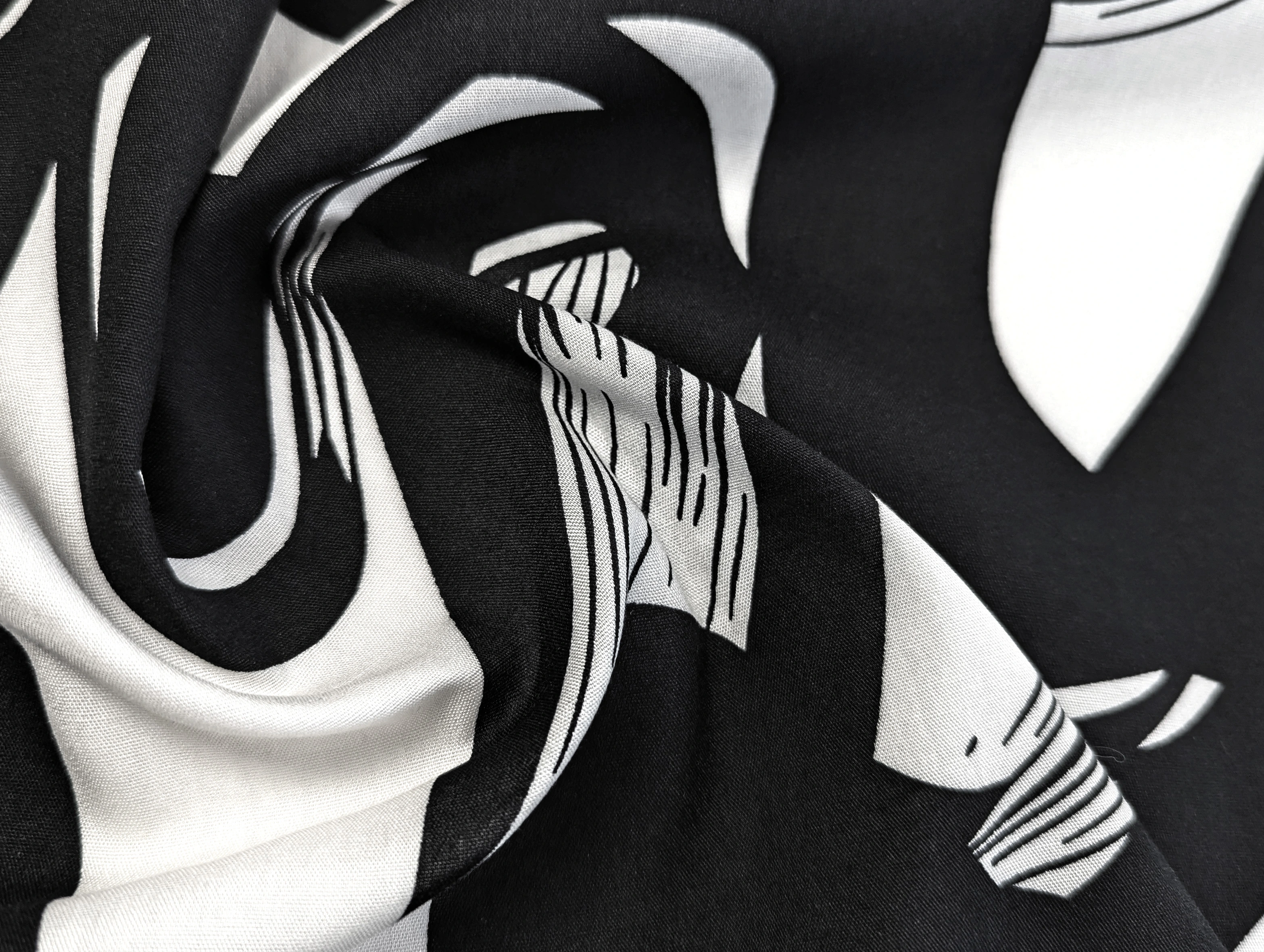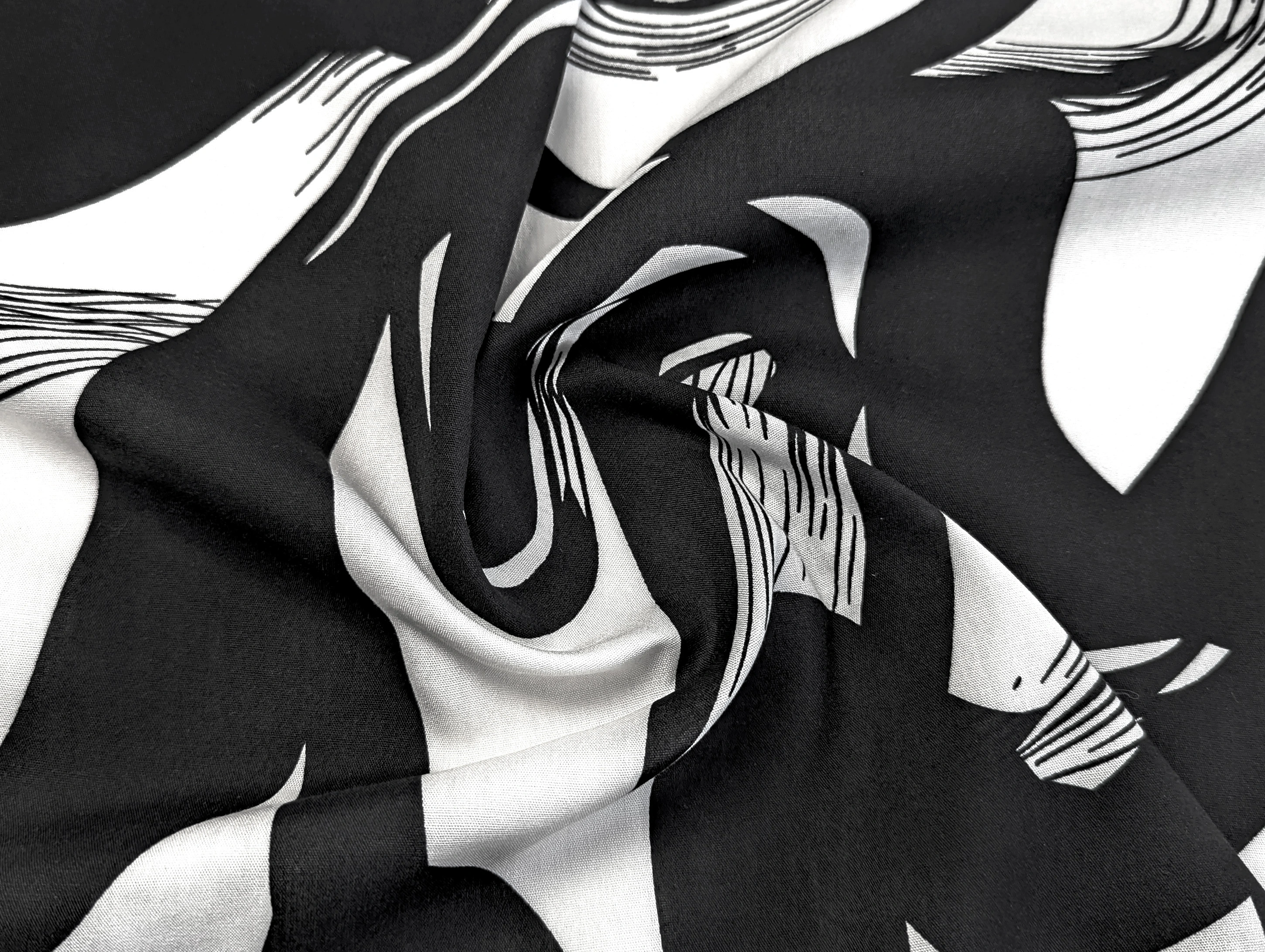 Штапель шовковистий абстракція, чорний з молочним