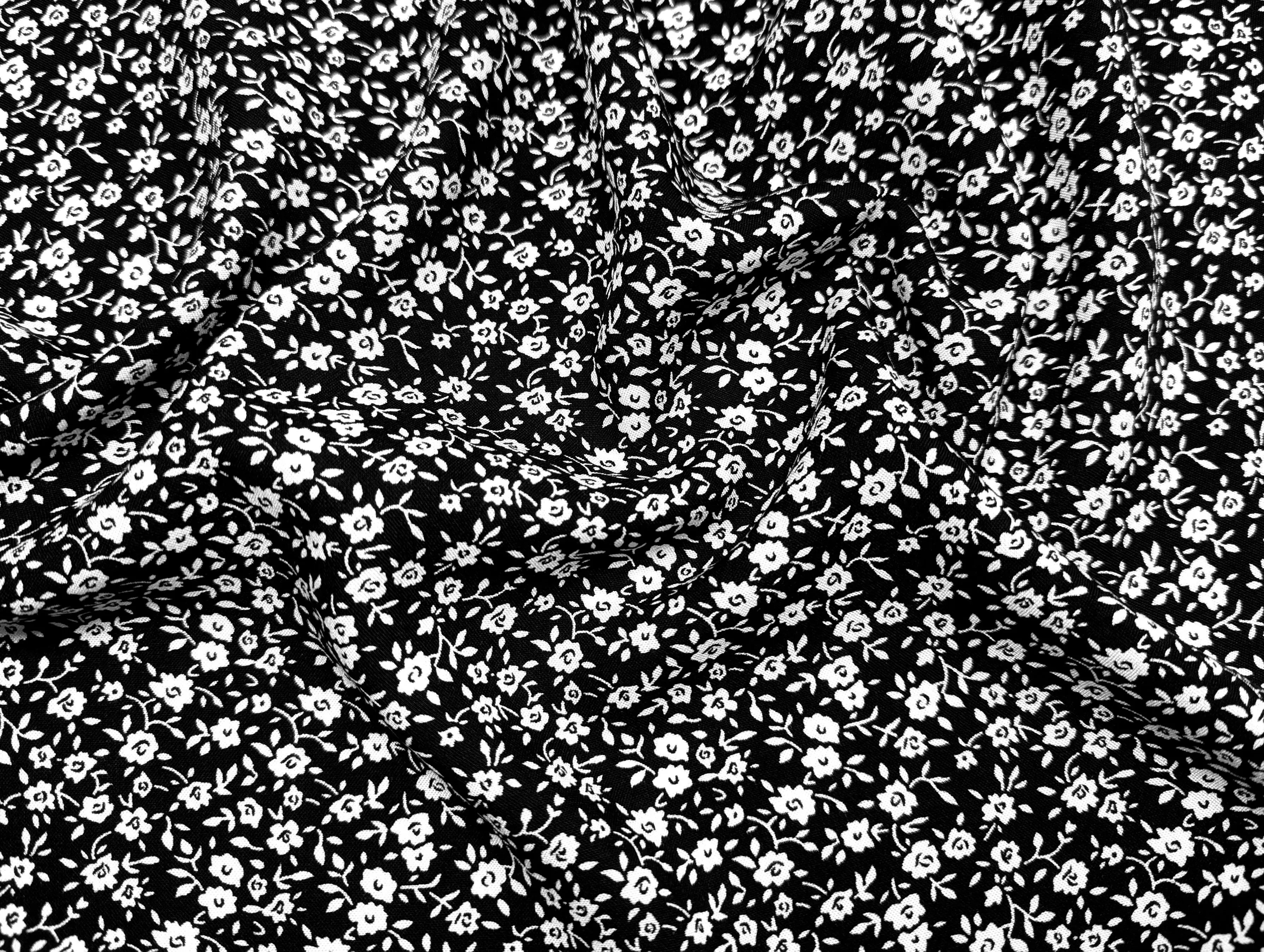 Штапель шовковистий дрібні квіточки, чорний з молочним (відріз 2,9 м)