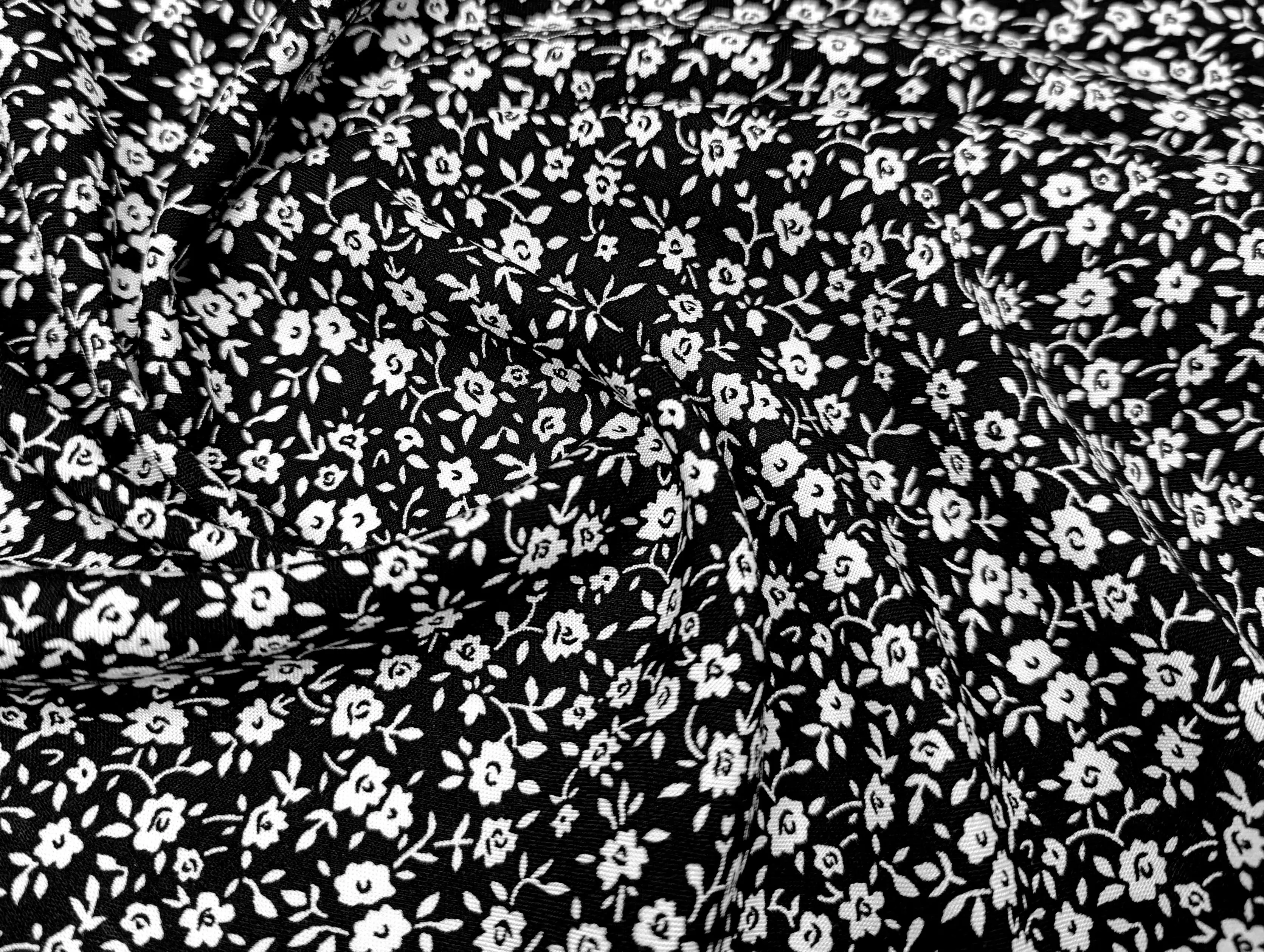 Штапель шовковистий дрібні квіточки, чорний з молочним (відріз 2,9 м) (ш14, 2409069B, д3 цв2)