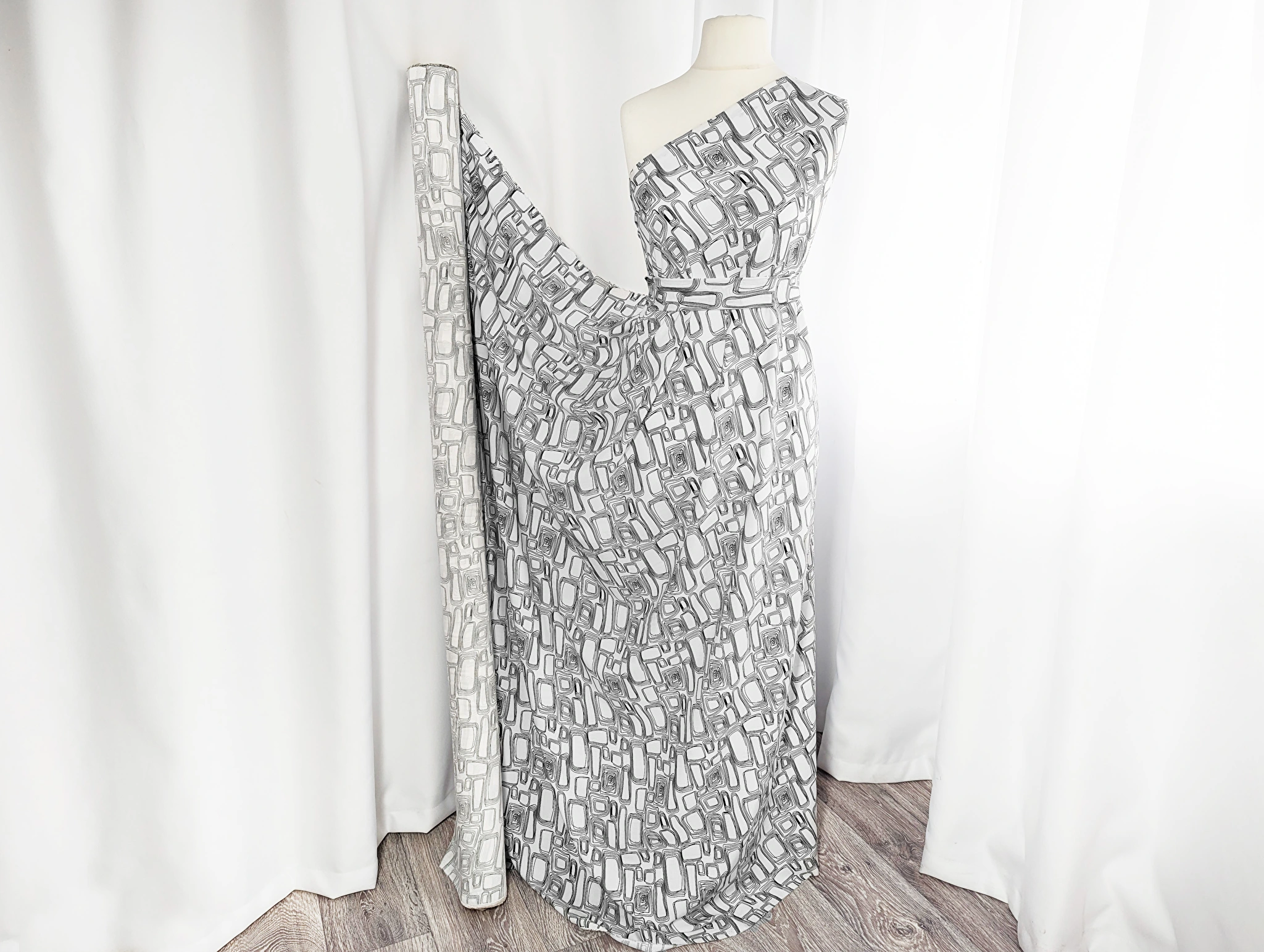 Штапель шовковистий геометрична сітка, білий