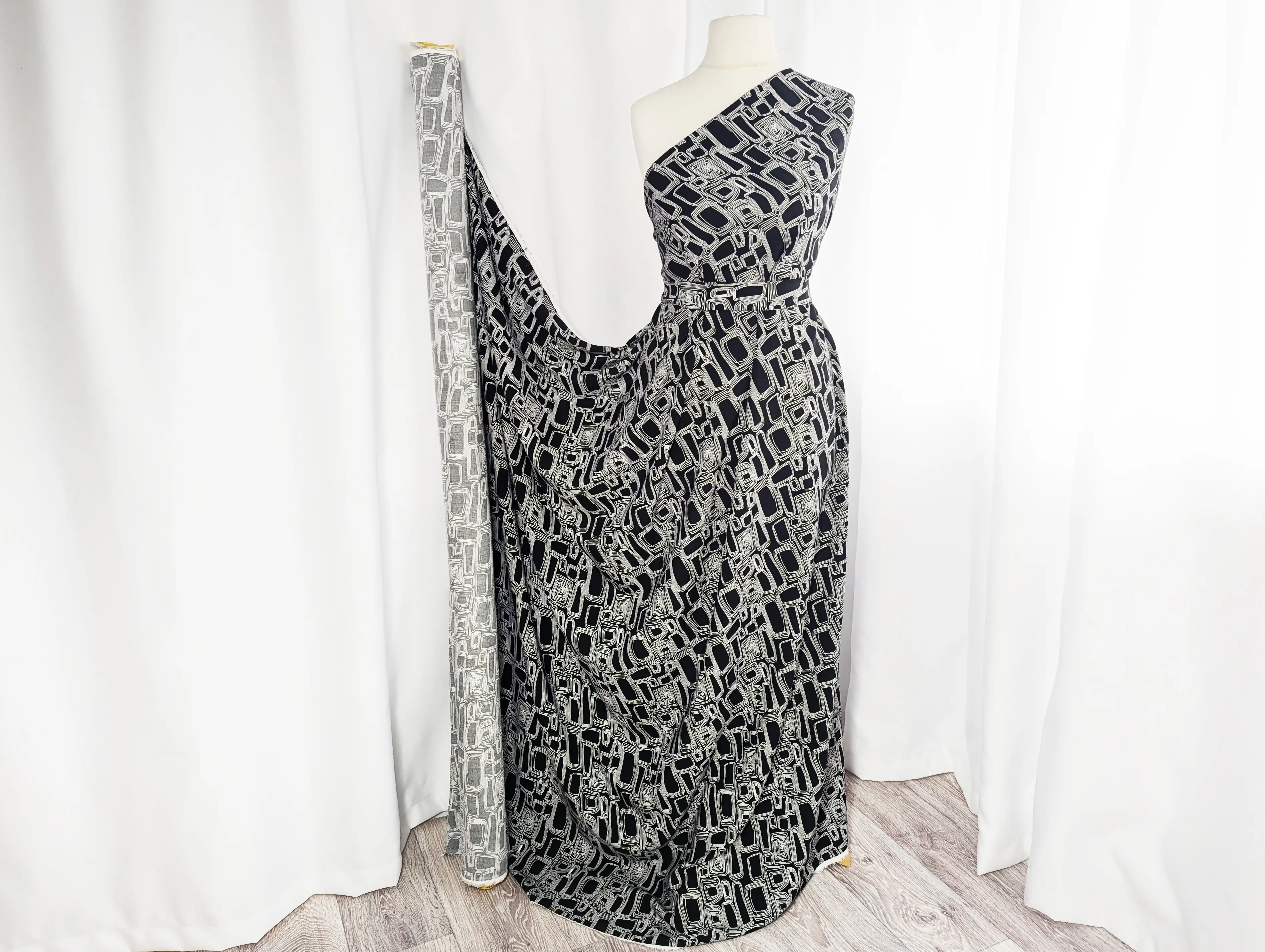Штапель шовковистий геометрична сітка, чорний (відріз 0,6 м)