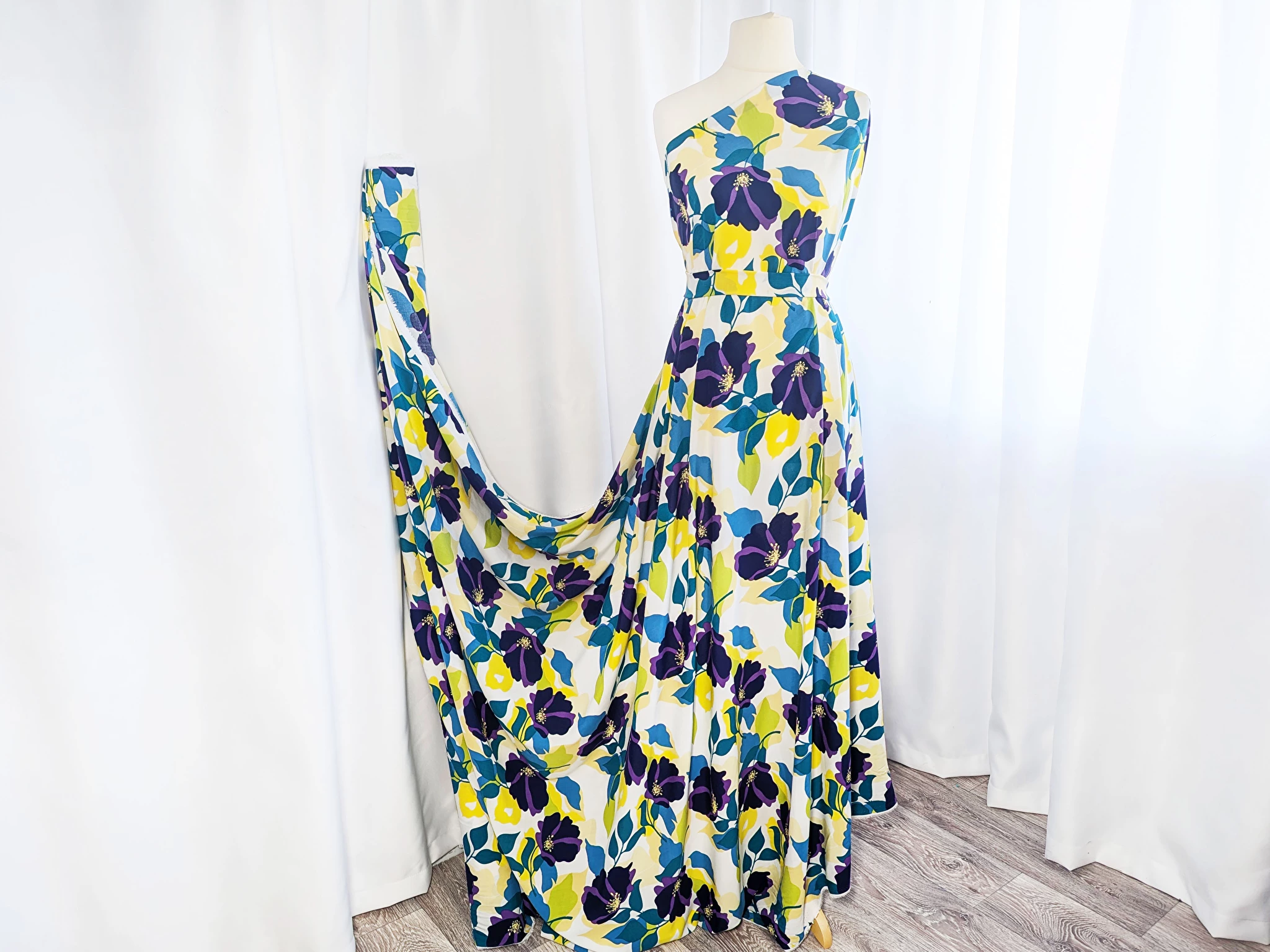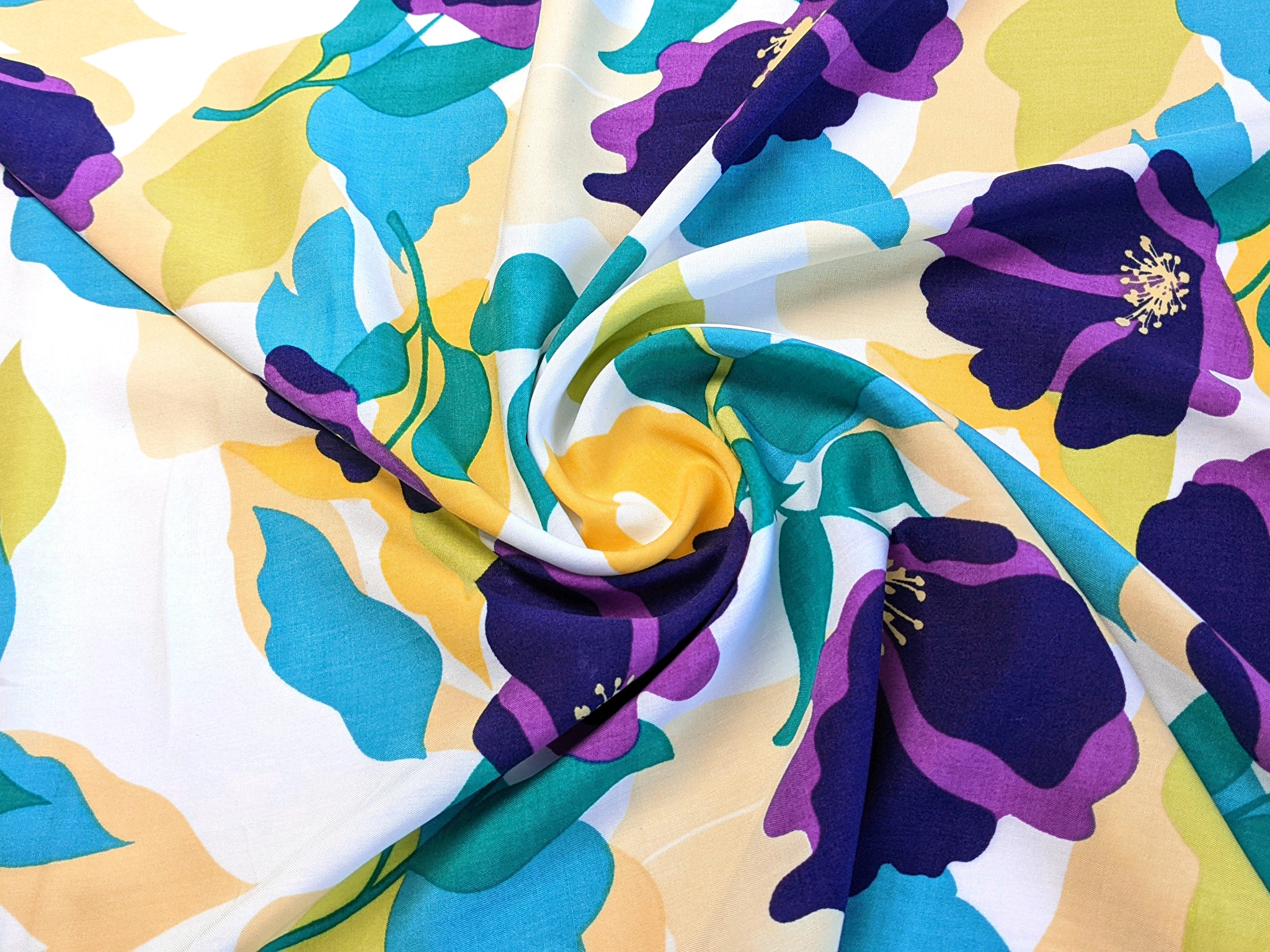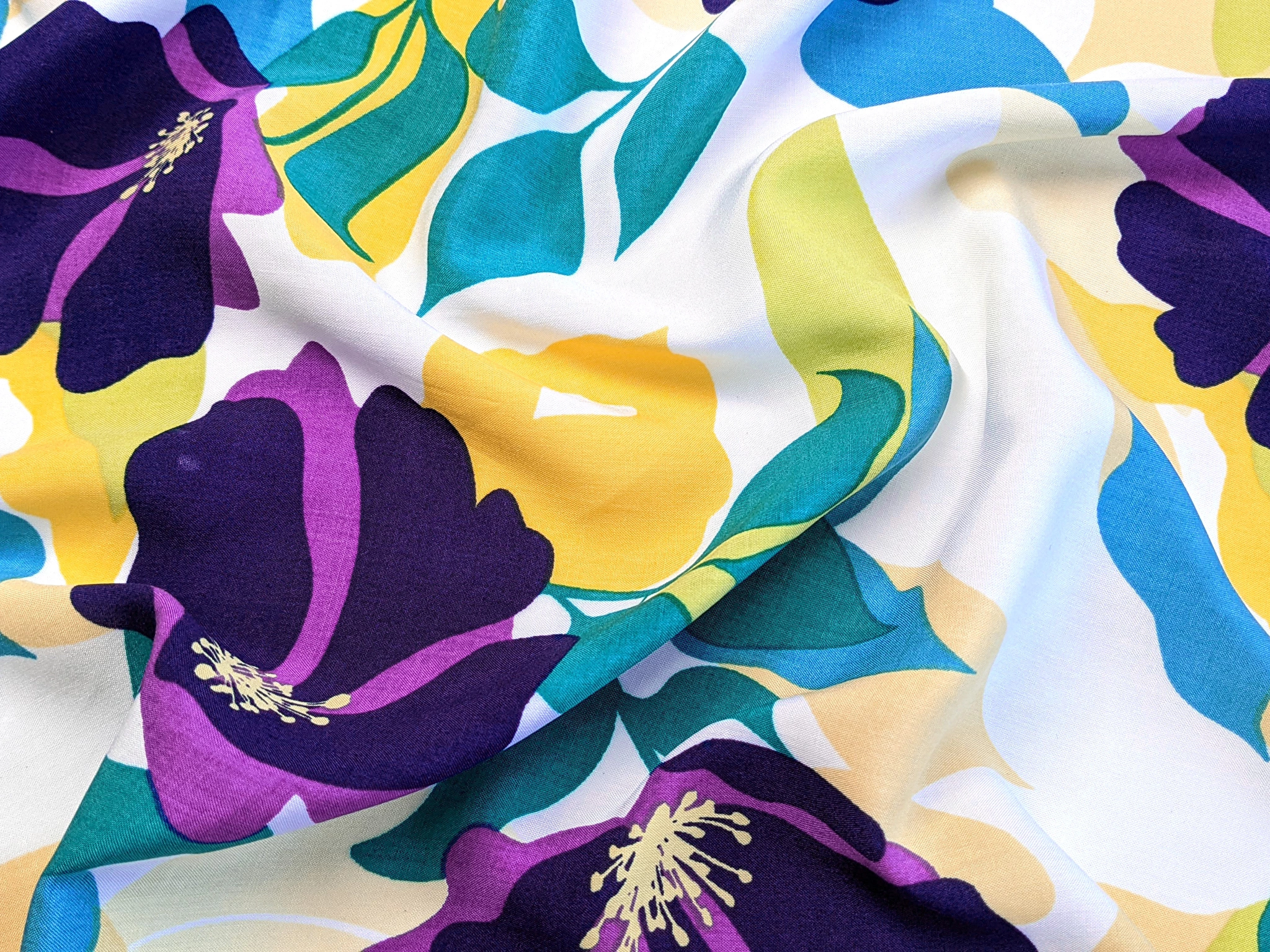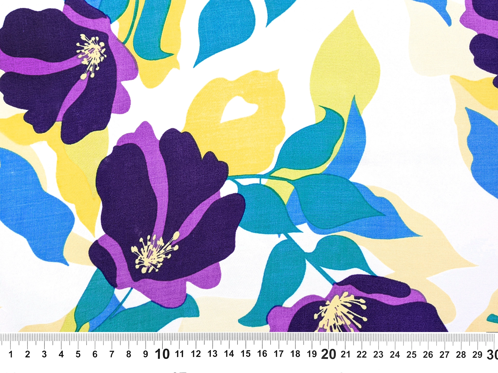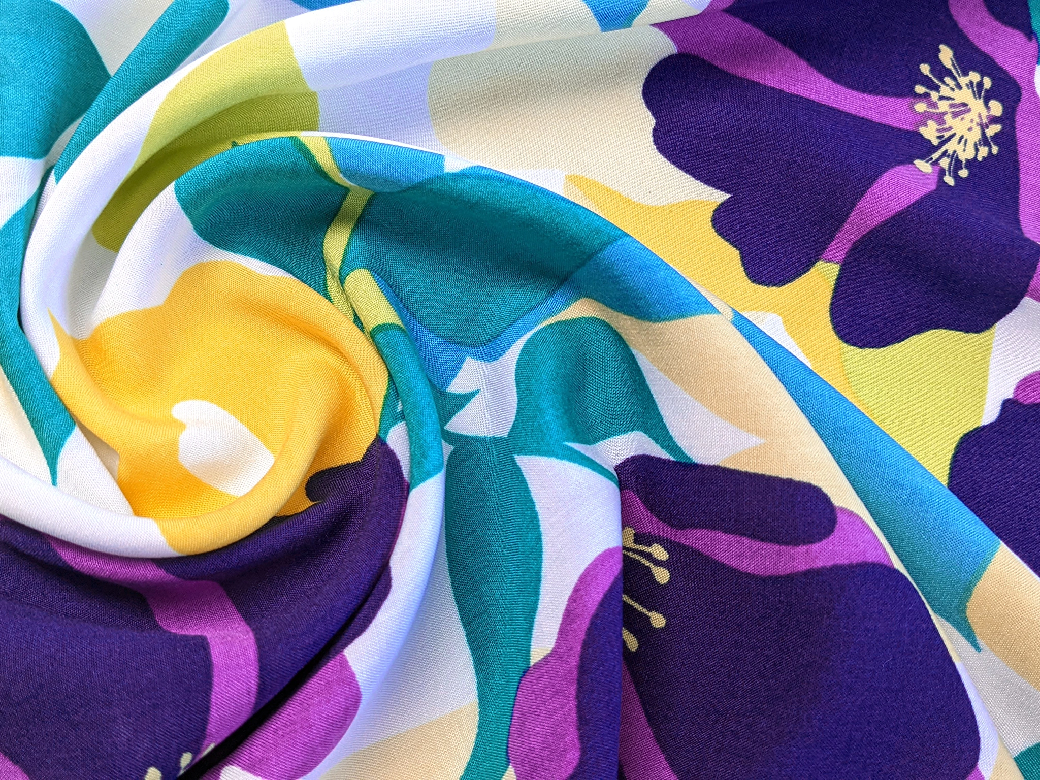 Штапель шовковистий квіткова фантазія, темно-бузковий з жовтим