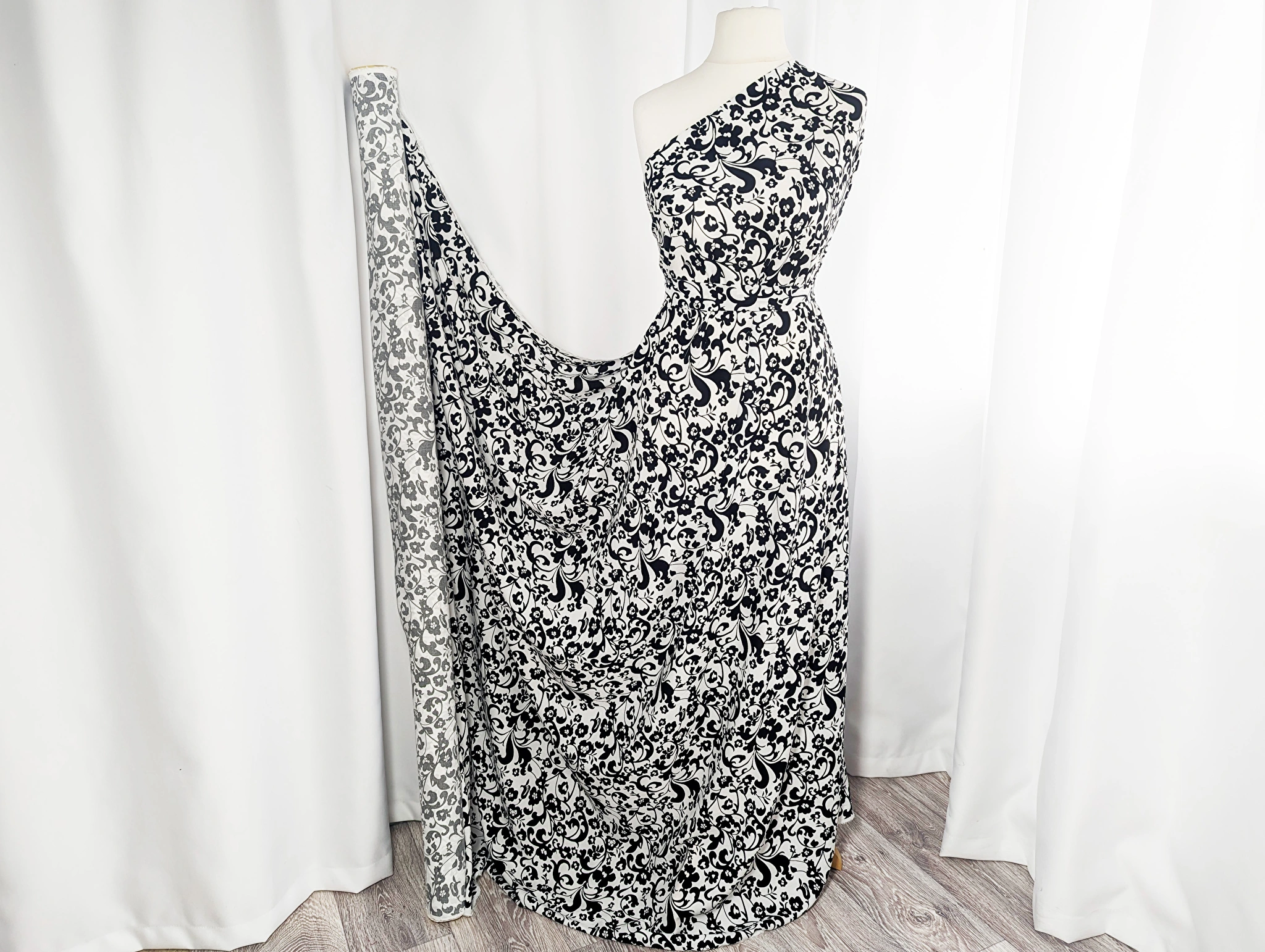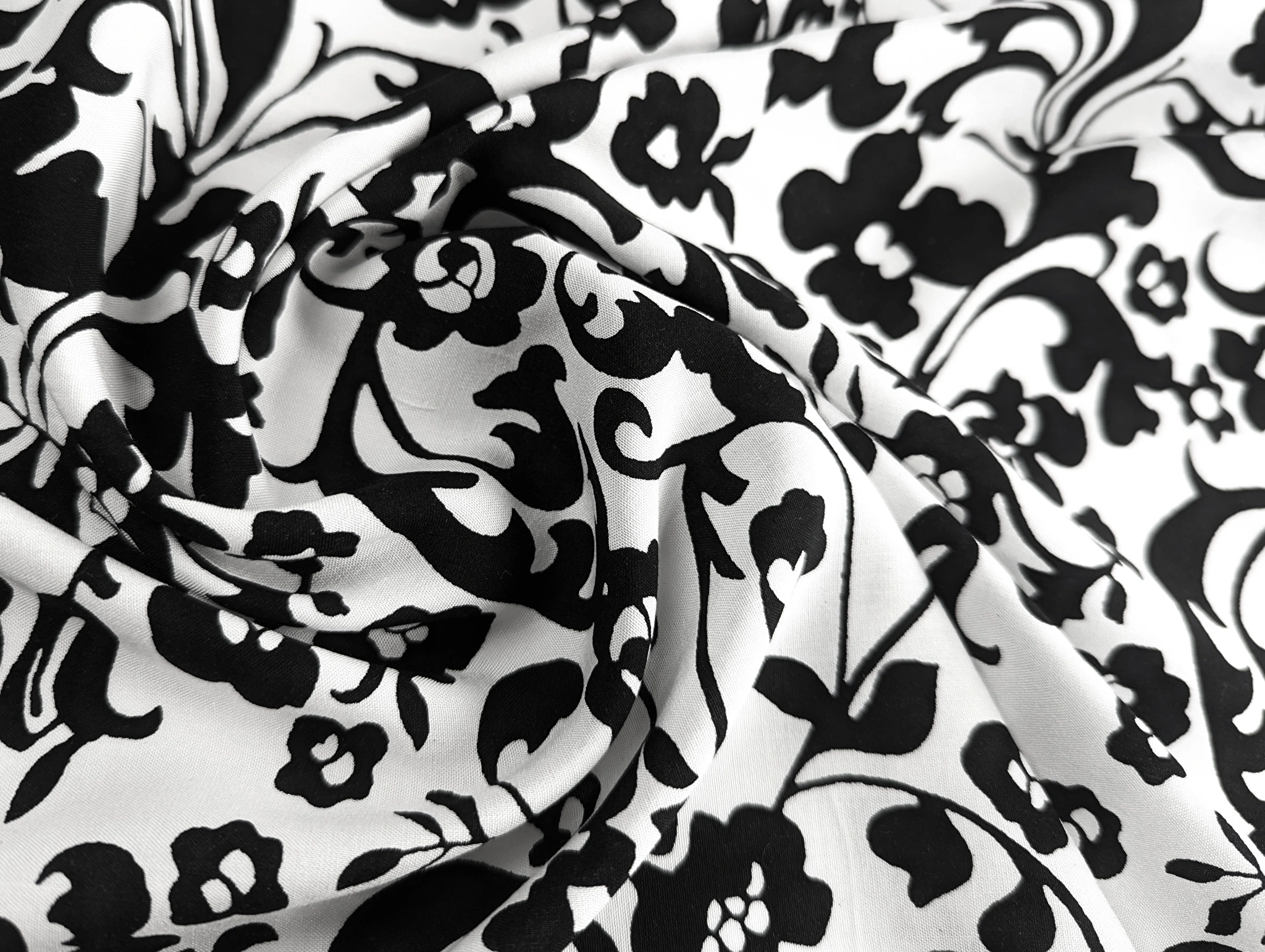 Штапель шовковистий квіткова композиція, чорний на білому