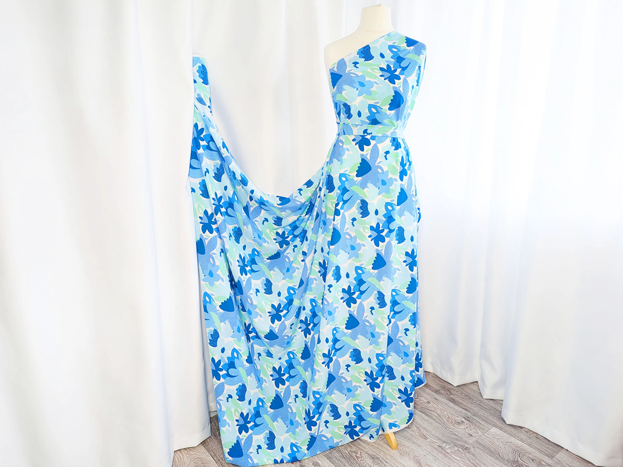 Віскозне полотно дуже легке, приємне до тіла, пропускає повітря і красиво драпірується. Добре підходить для пошиття літнього одягу. Тканина має вологопоглинаючі властивості. З штапелю можна зшити блузу, плаття, сарафан або легкий костюм на літо.