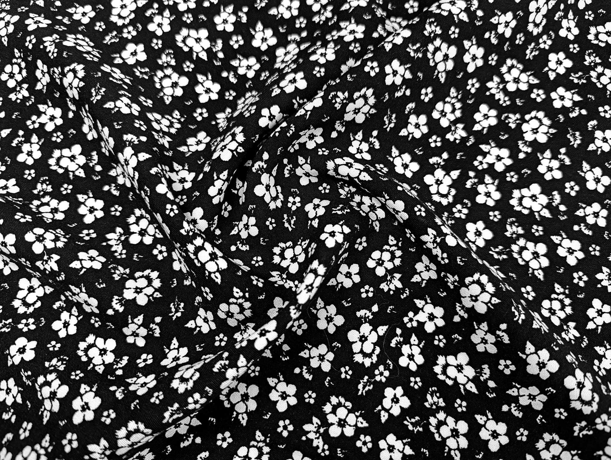 Штапель шовковистий квітковий настрій, чорний з молочним