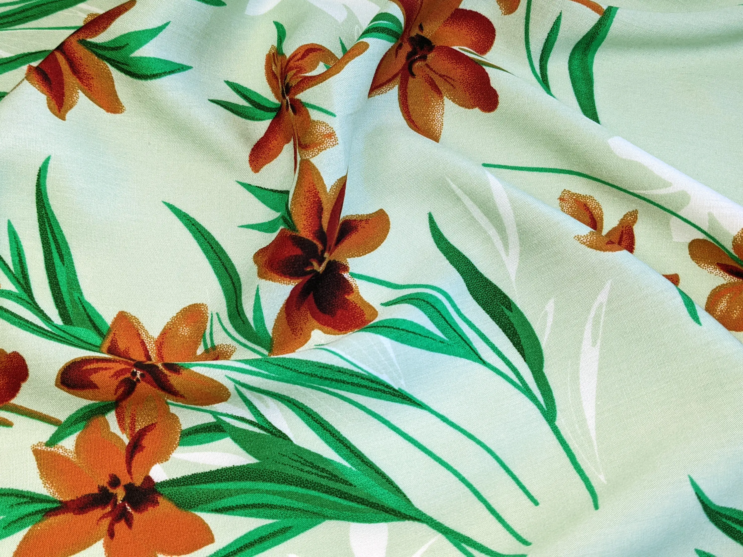 Штапель шовковистий квітковий вальс, блідо-оливковий (відріз 1,1 м)